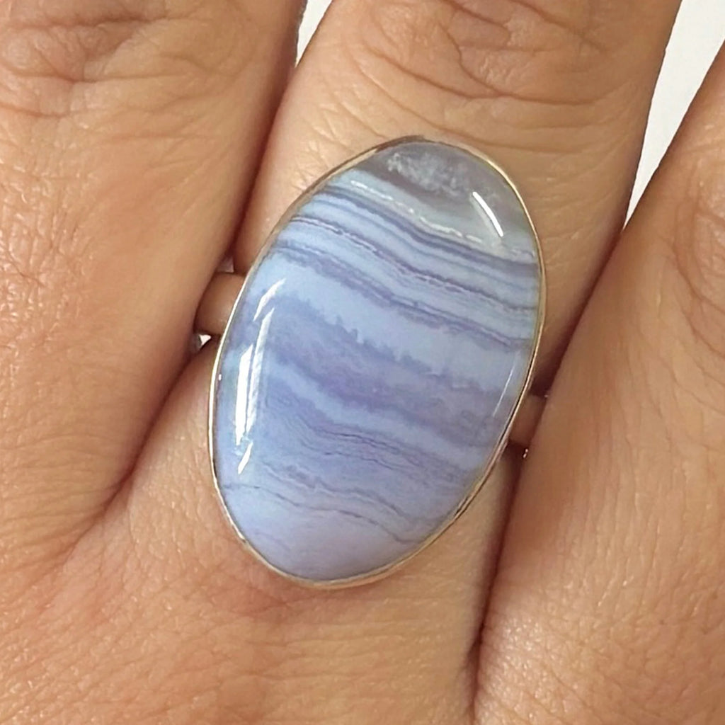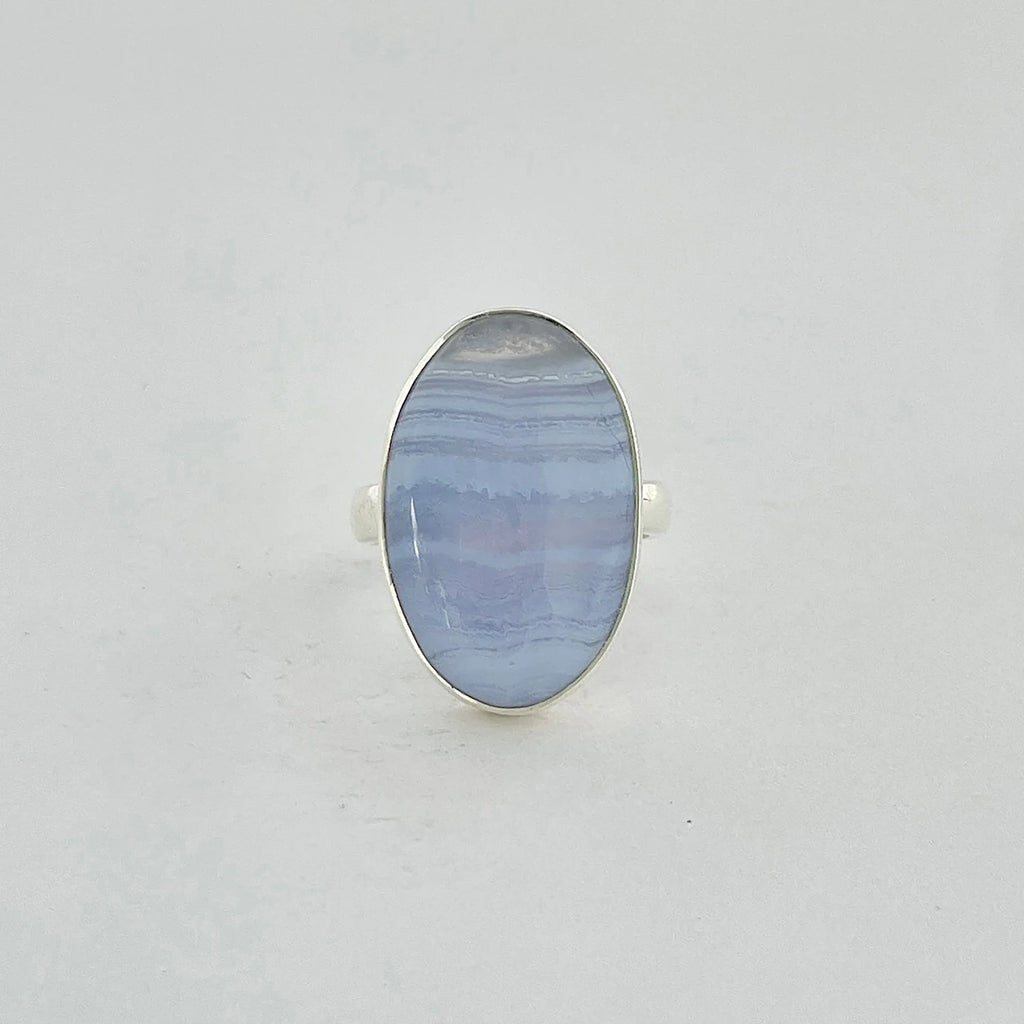 Descoperă colecția noastră de bijuterii cu calcedonie Blue Lace, unde fiecare piatră spune o poveste despre calm, claritate și frumusețea interioară care radiază tăcut.