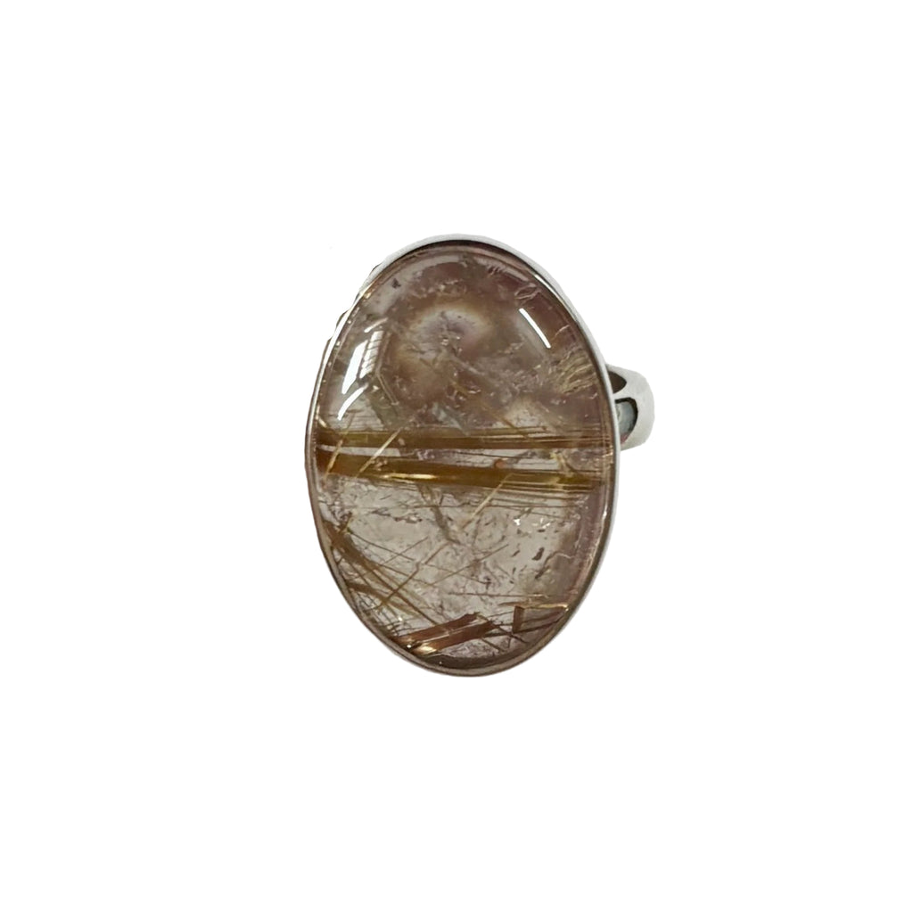 Poartă acest inel cu cuarț rutilat natural pentru a aduce lumină, claritate și energie solară în viața ta – o bijuterie unicat, creată de natură și desăvârșită în argint.