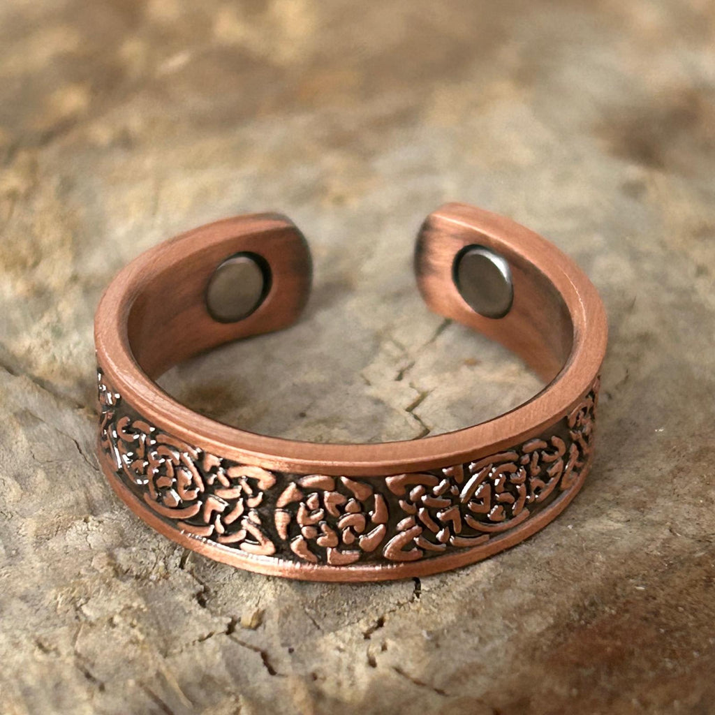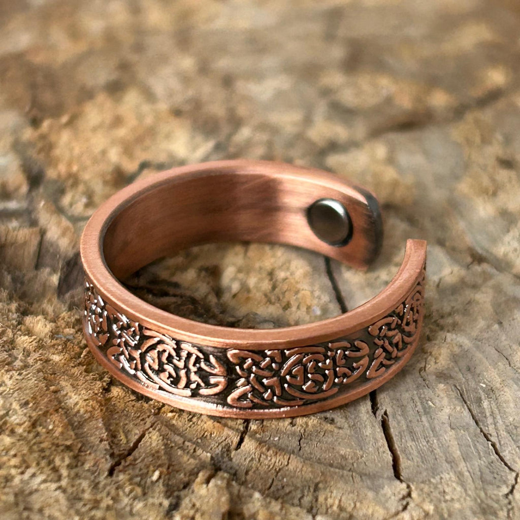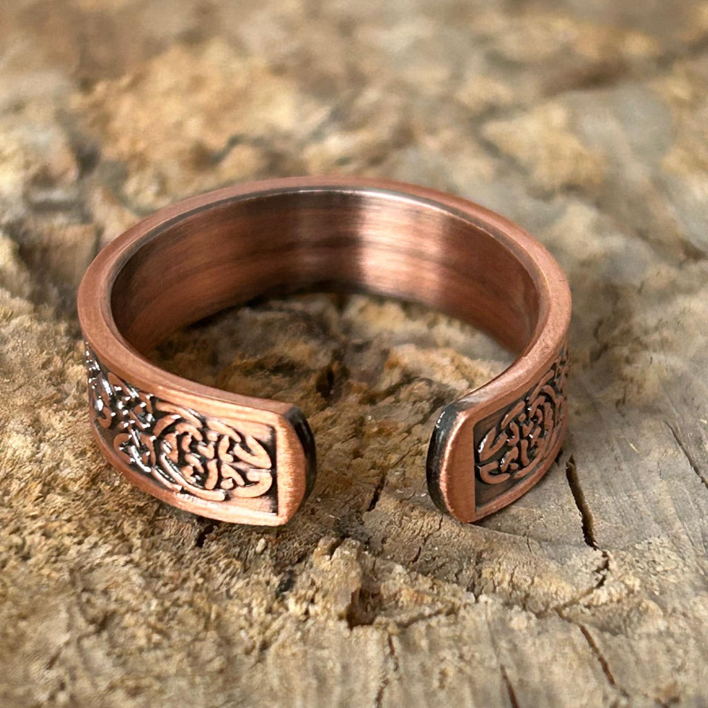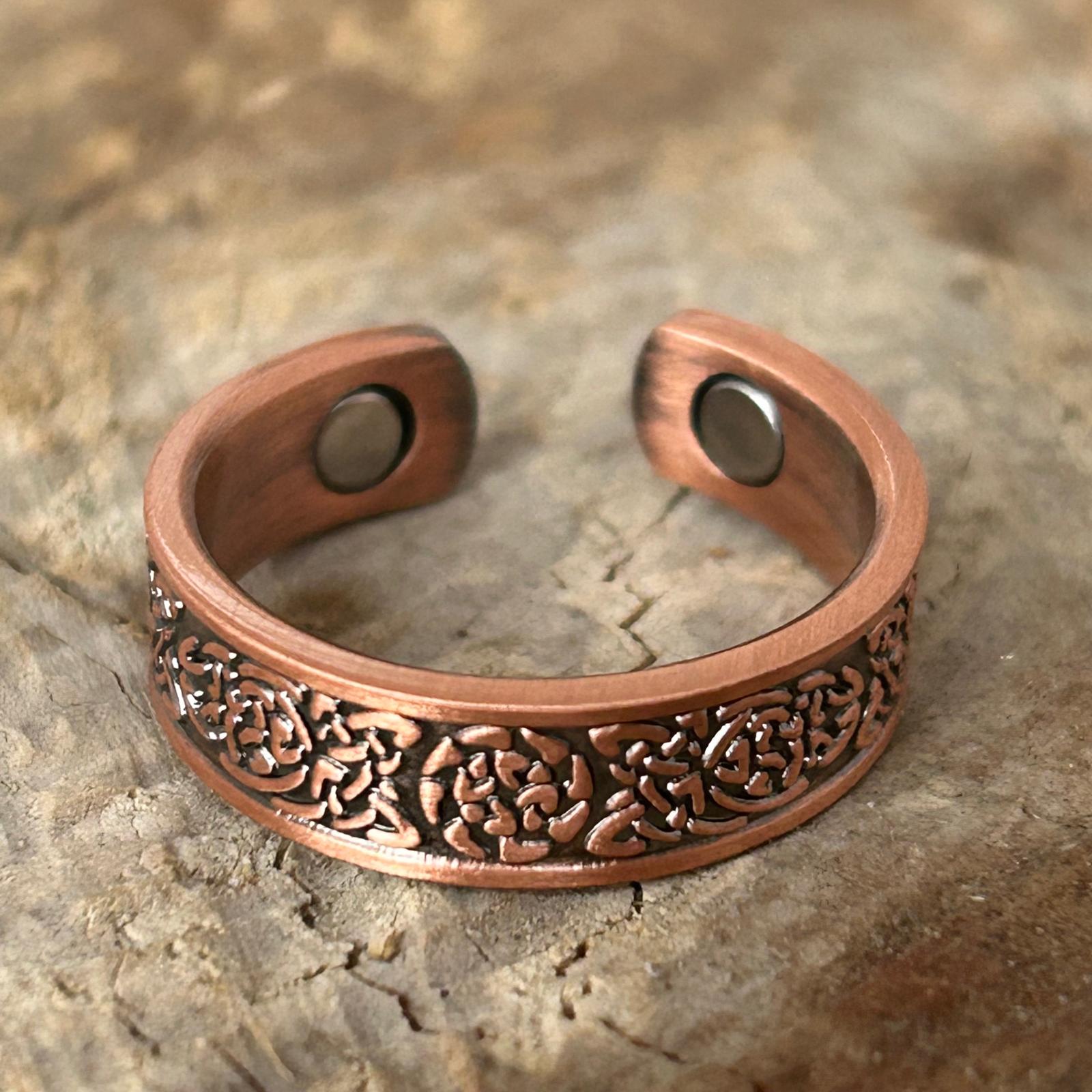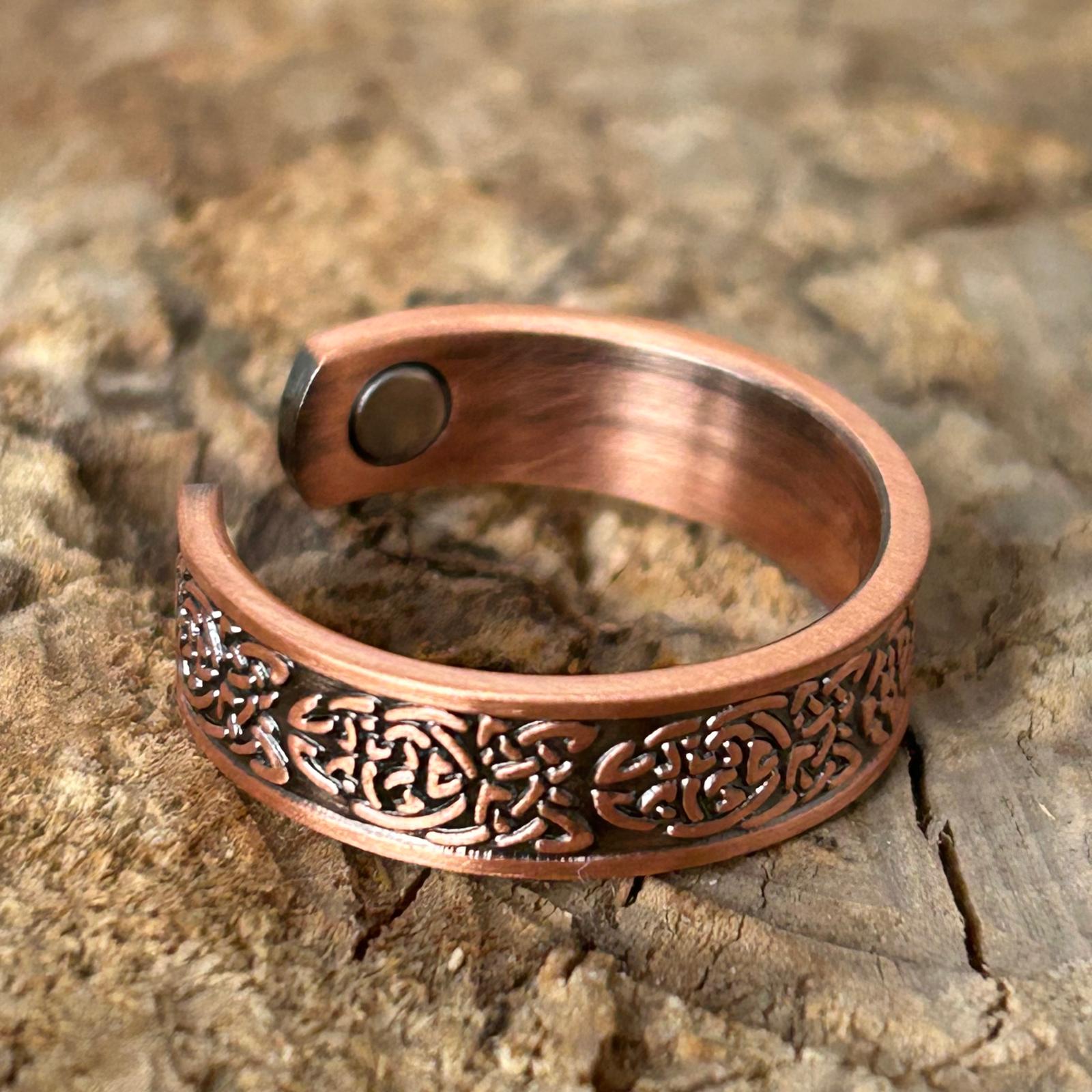 Cuprul, purtat din vechime ca metal protector și vindecător, este considerat un catalizator al energiei vitale și al echilibrului interior. În combinație cu forma ajustabilă, inelul devine nu doar o bijuterie, ci și un simbol al adaptabilității și al curgerii armonioase prin viață.