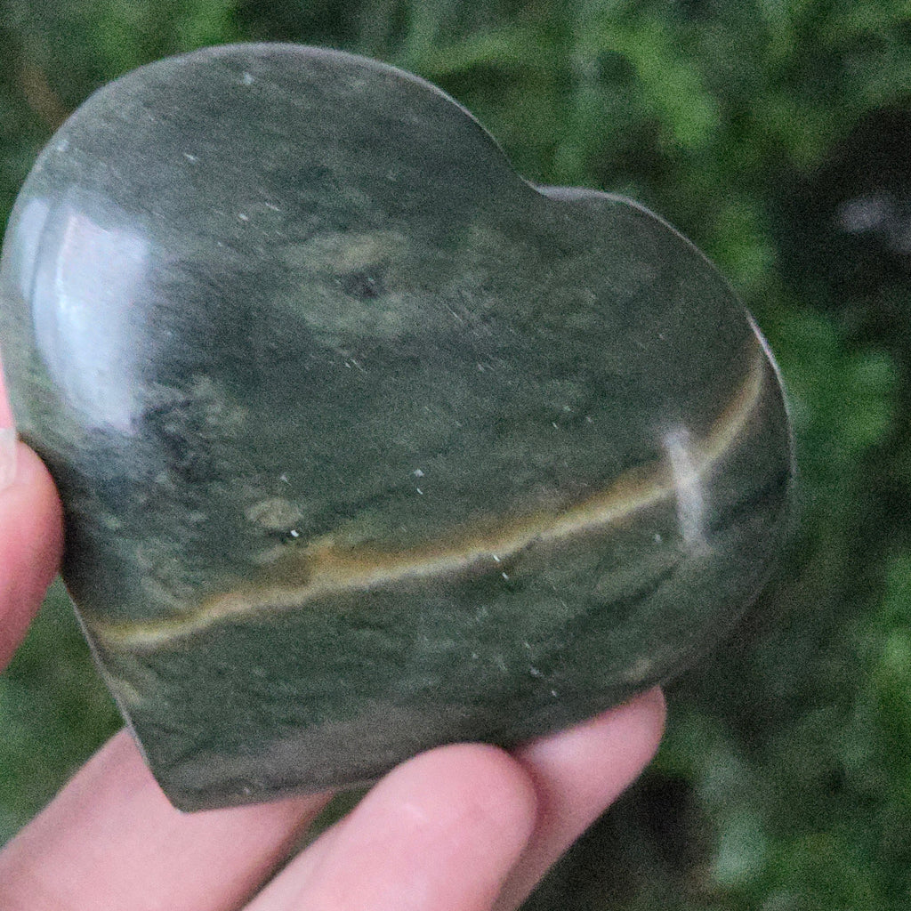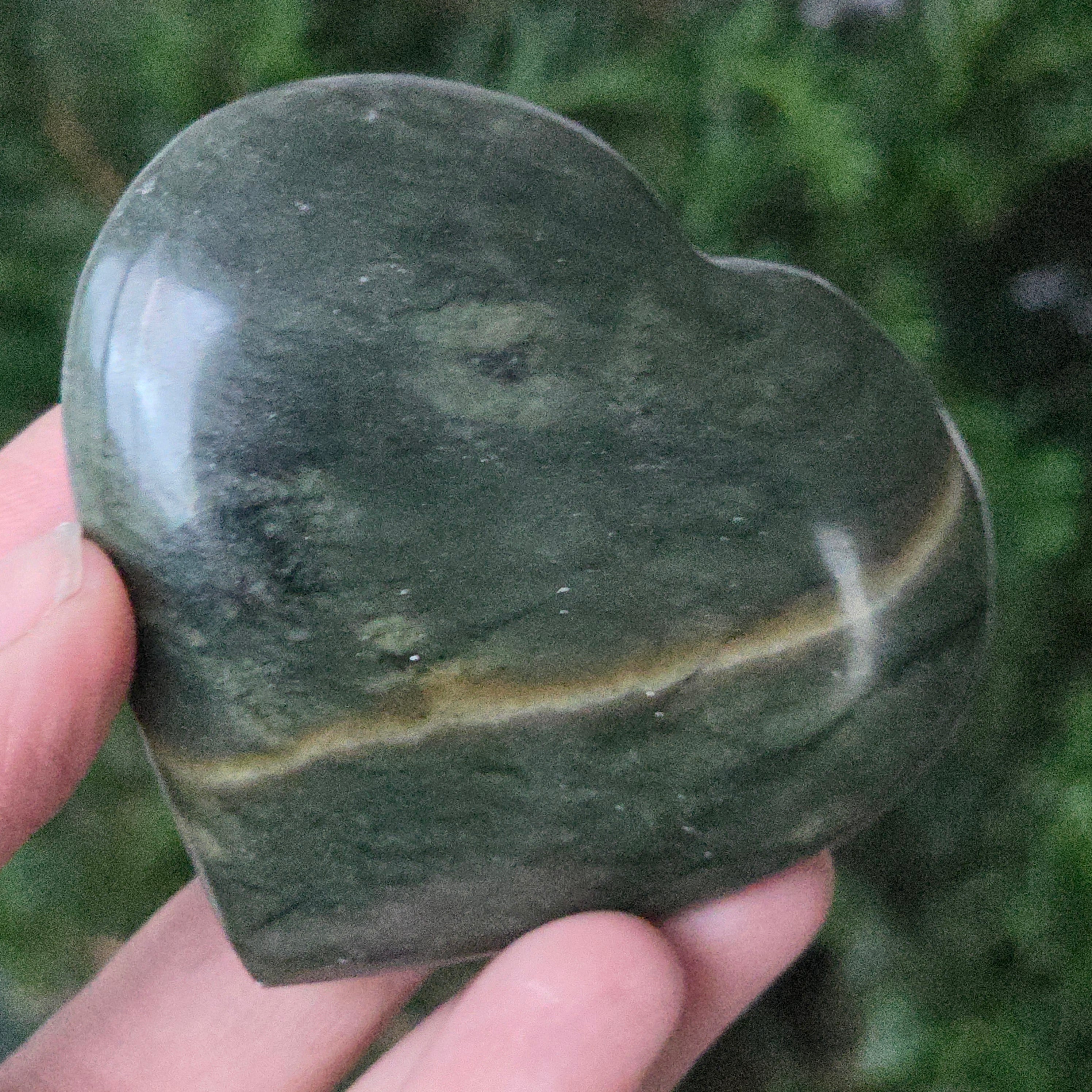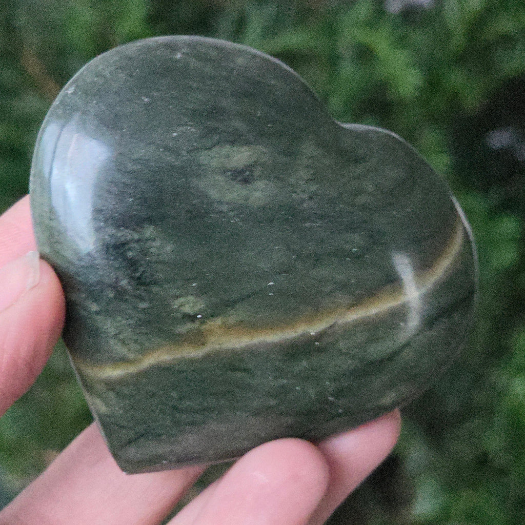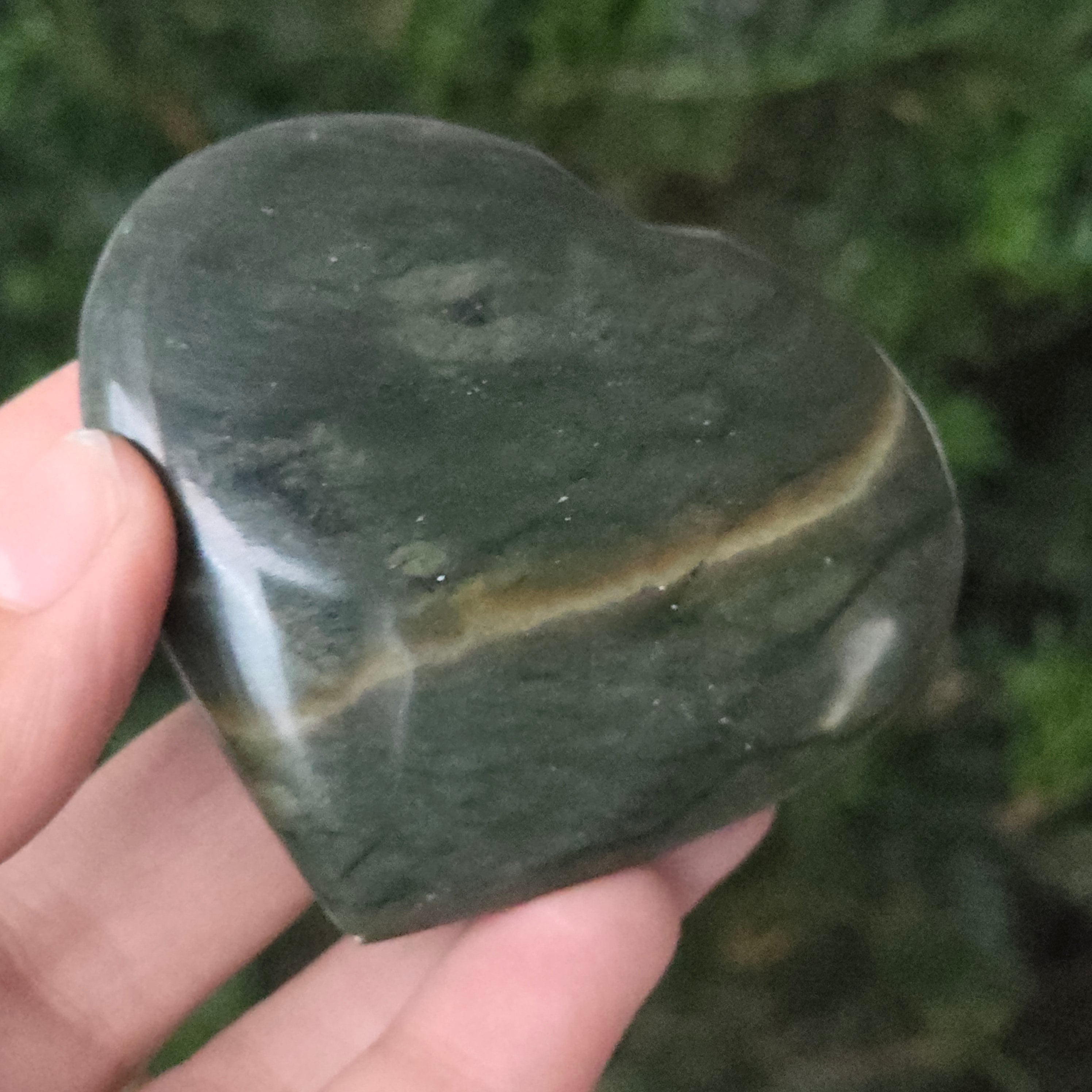 Această inimă sculptată din jad verde nefrit poartă în ea liniștea munților, răcoarea izvoarelor și puterea calmă a pietrei protectoare a Asiei. Fiecare nuanță de verde, fiecare unduire a suprafeței sale aduce aminte de armonie, echilibru și stabilitate interioară. O piesă mică, dar încărcată de sens, creată pentru cei care simt că transformarea începe mereu din spațiul inimii.