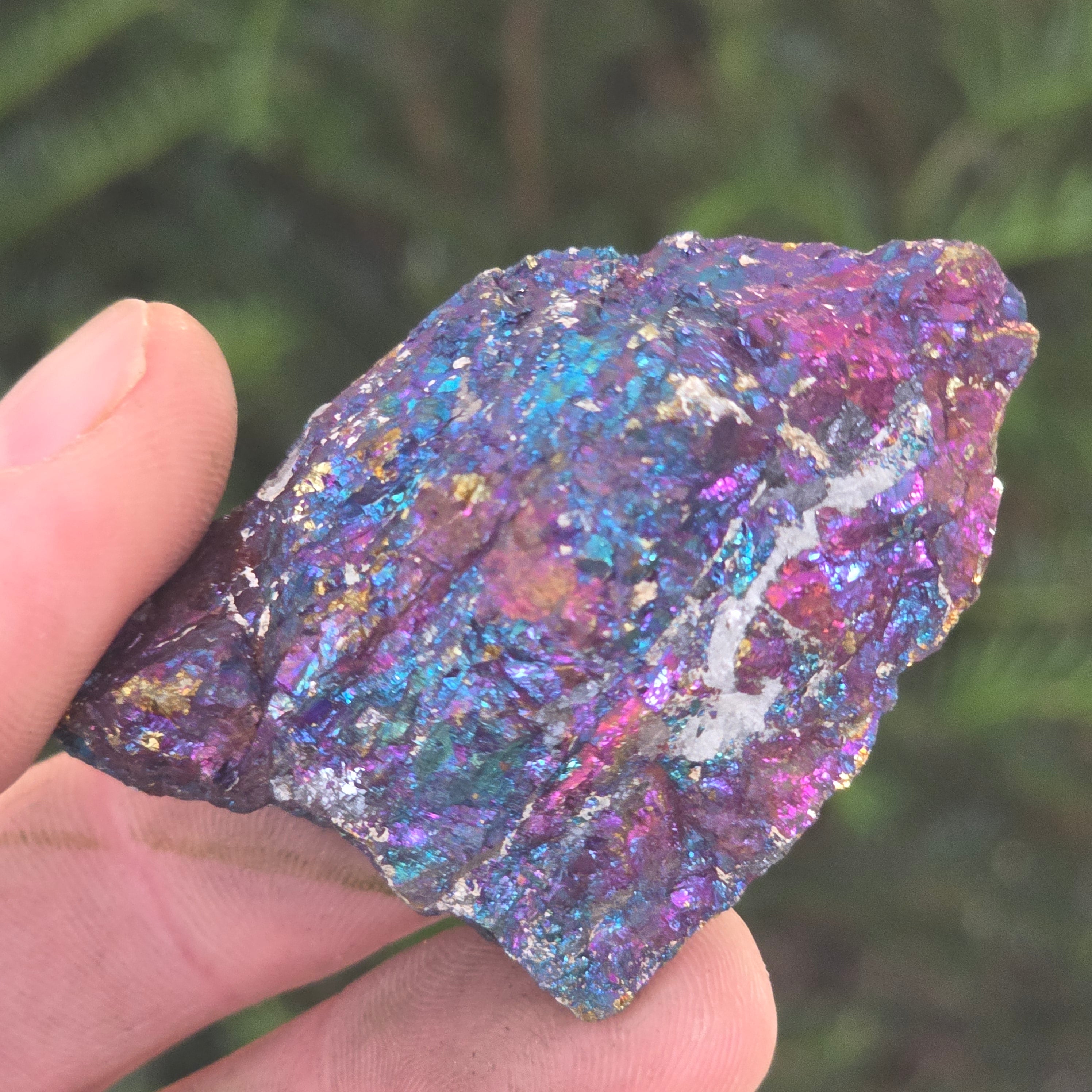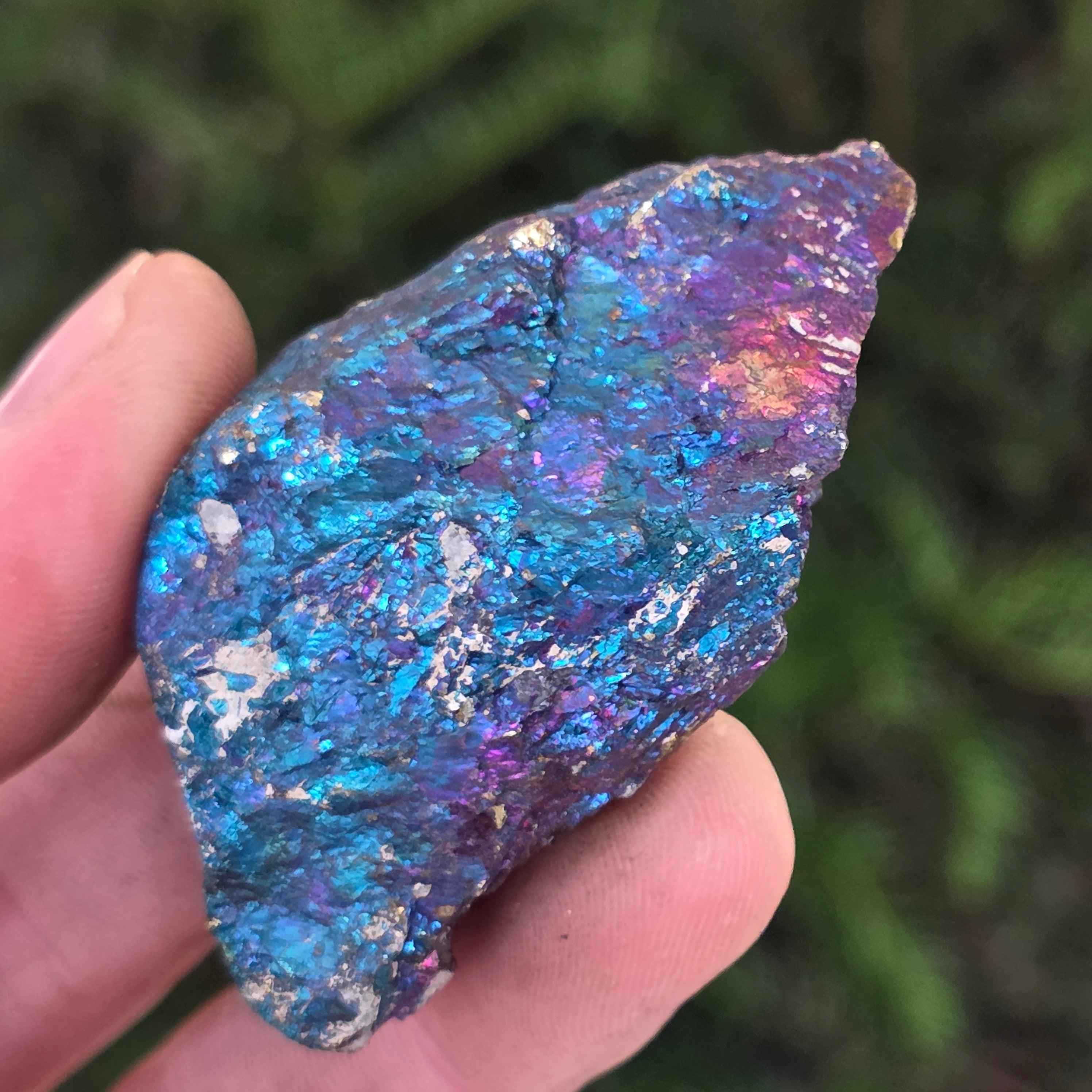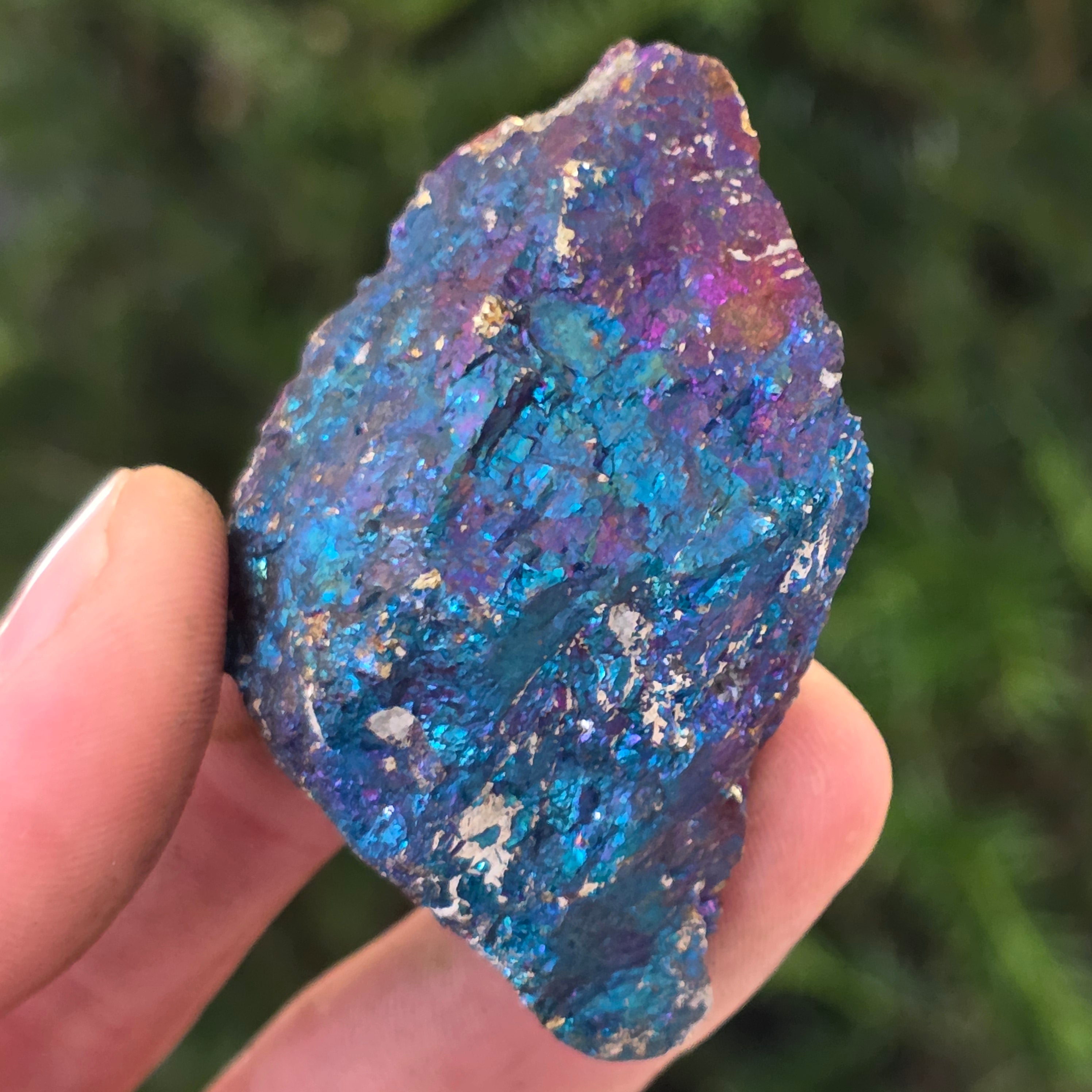 Blaue und violette Chalkopyrite werden mit spirituellem Wachstum, Intuition und Verbindung mit höheren Energien in Verbindung gebracht. Es wird angenommen, dass es hilft, den Geist zu beruhigen und die Kreativität zu stimulieren. Seine schillernden Farbtöne sind symbolisch mit Gleichgewicht und Harmonie verbunden.