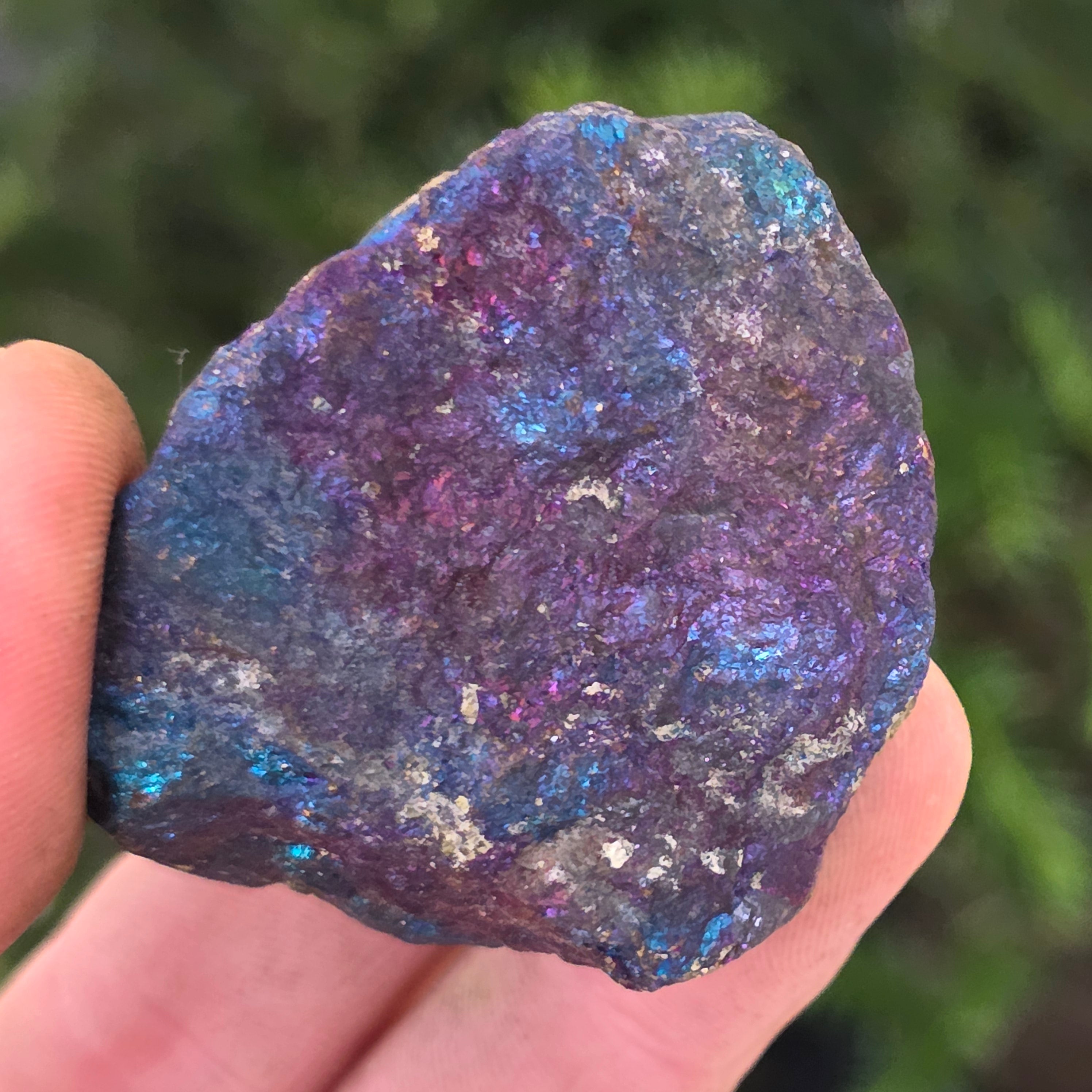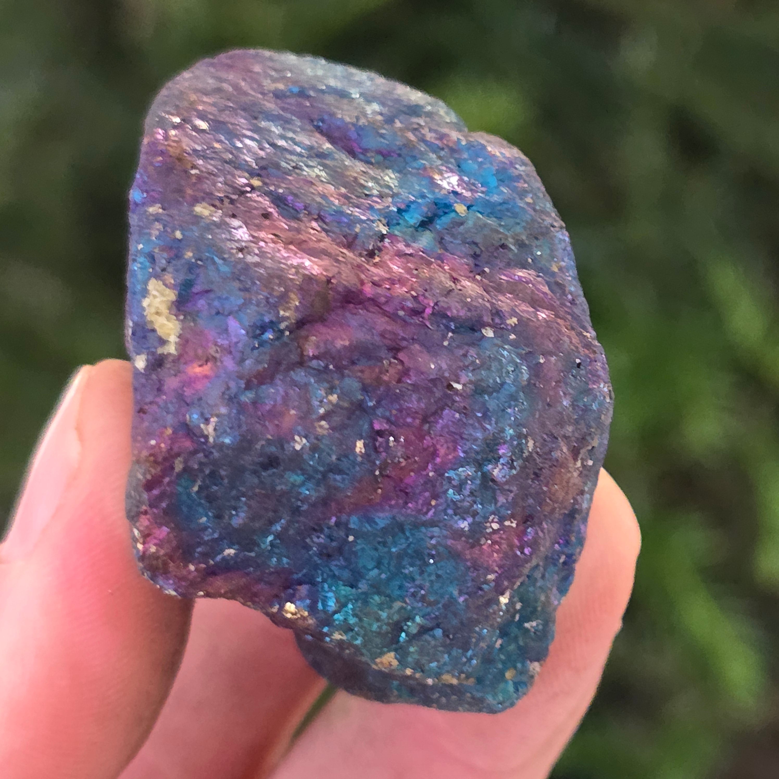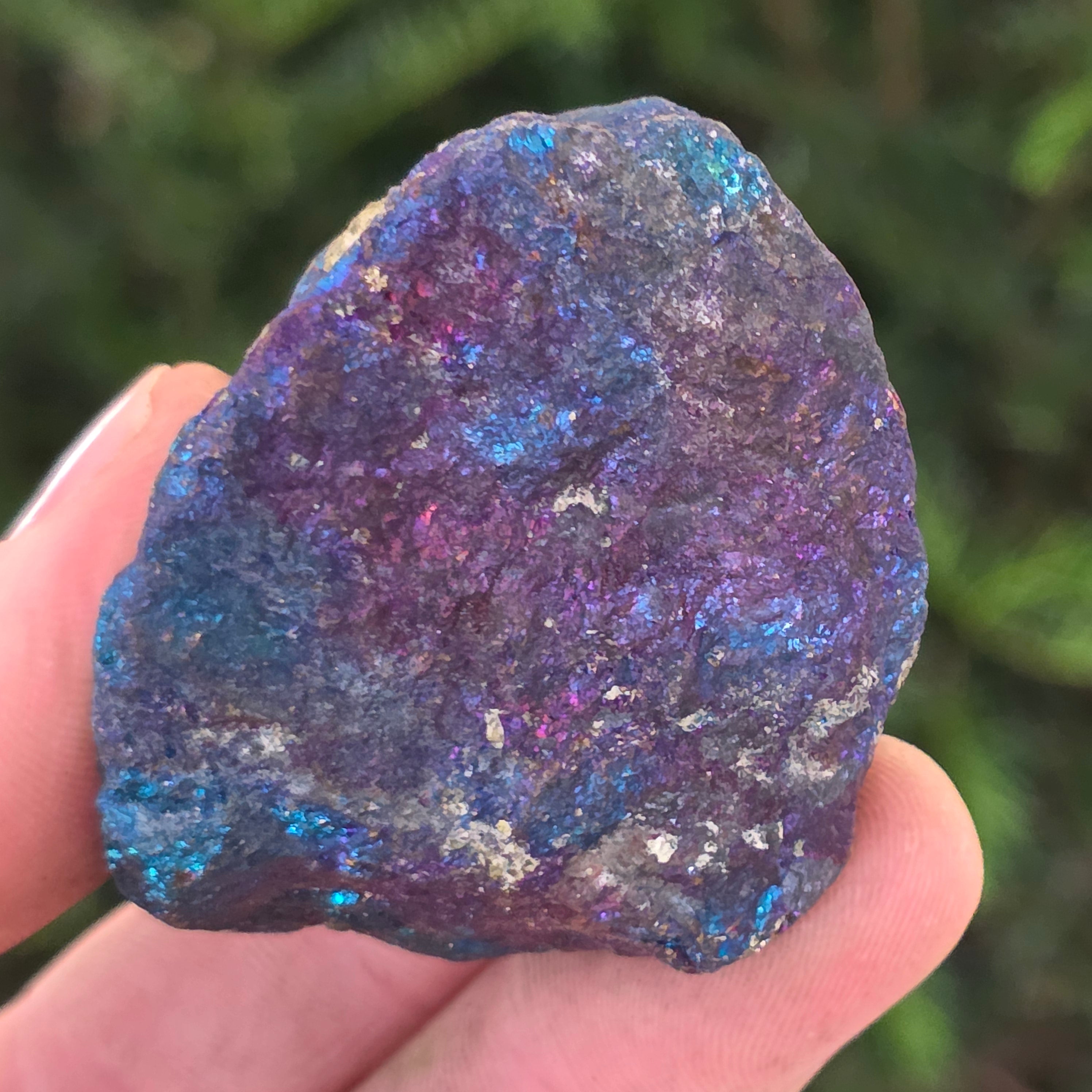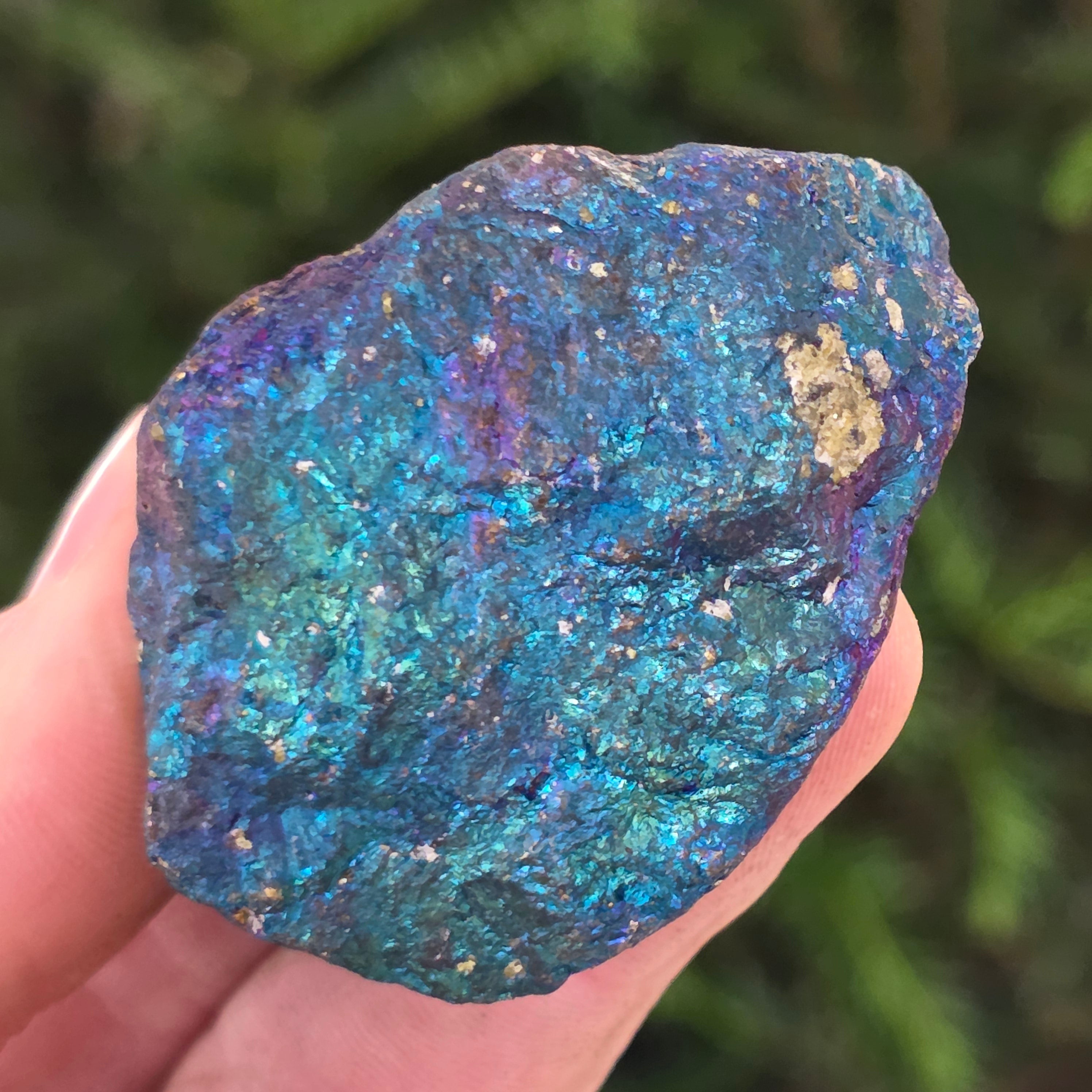 Blaue und violette Chalkopyrite werden mit spirituellem Wachstum, Intuition und der Verbindung zu höheren Energien in Verbindung gebracht. Es wird geglaubt, dass sie helfen, den Geist zu beruhigen und die Kreativität zu fördern. Seine irisierenden Nuancen stehen symbolisch für Gleichgewicht und Harmonie.