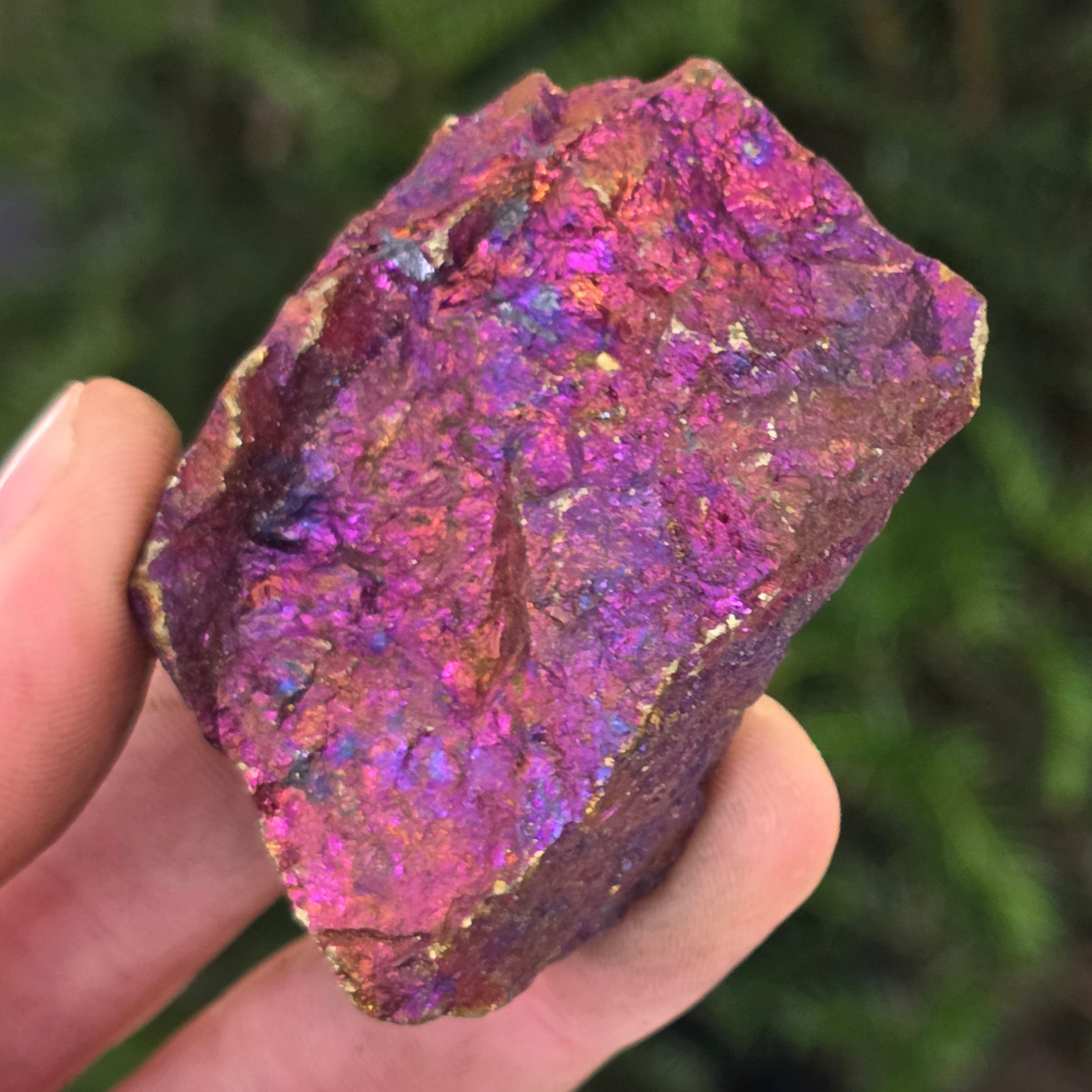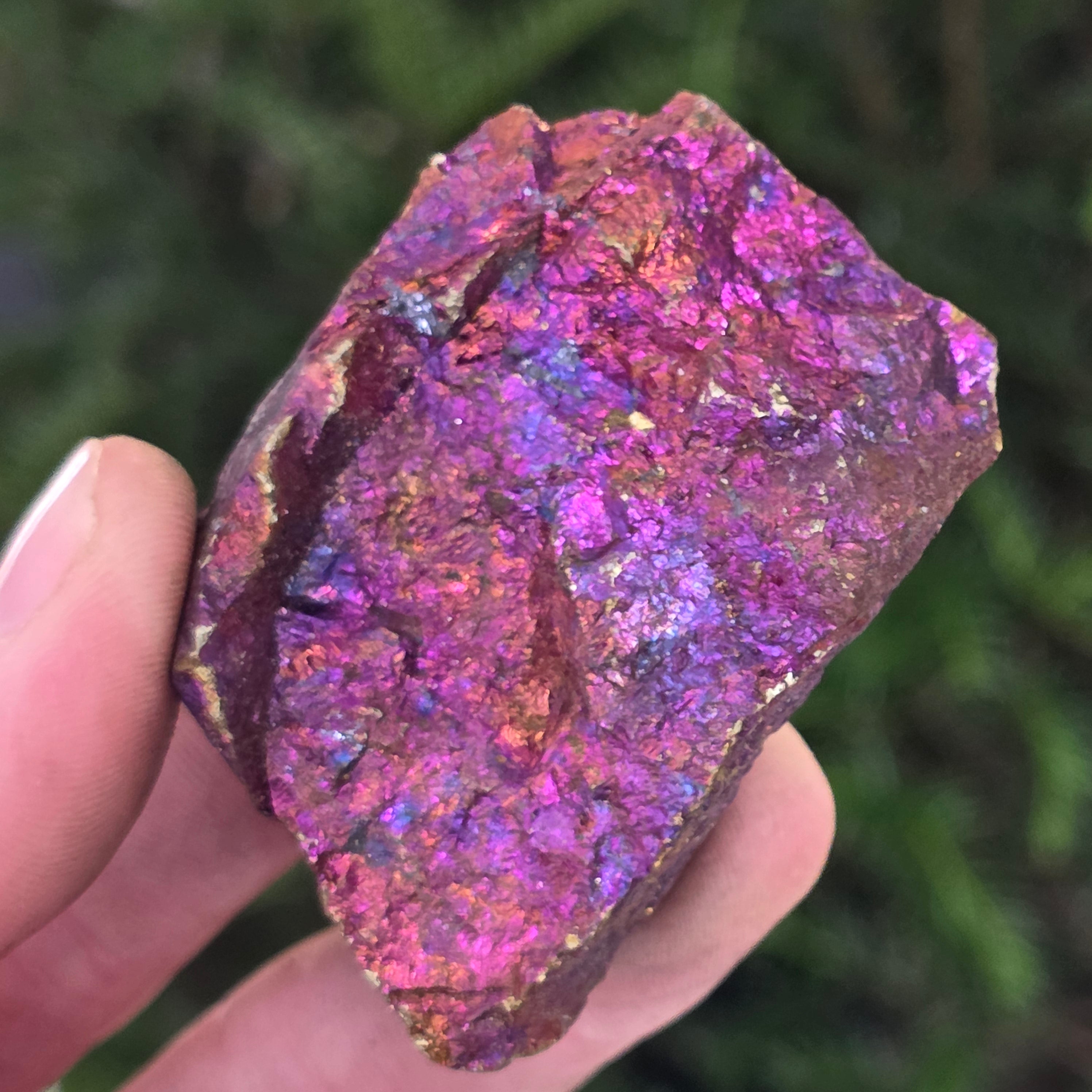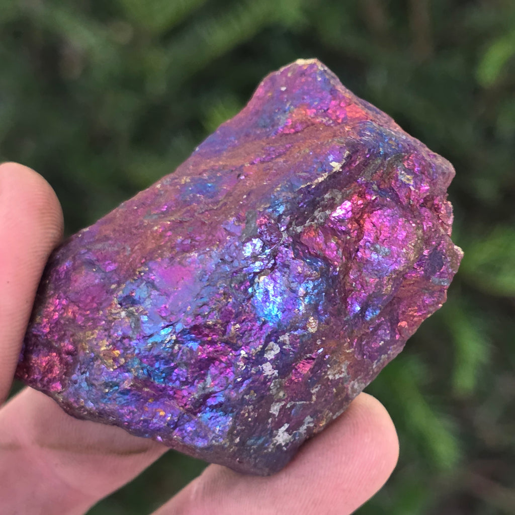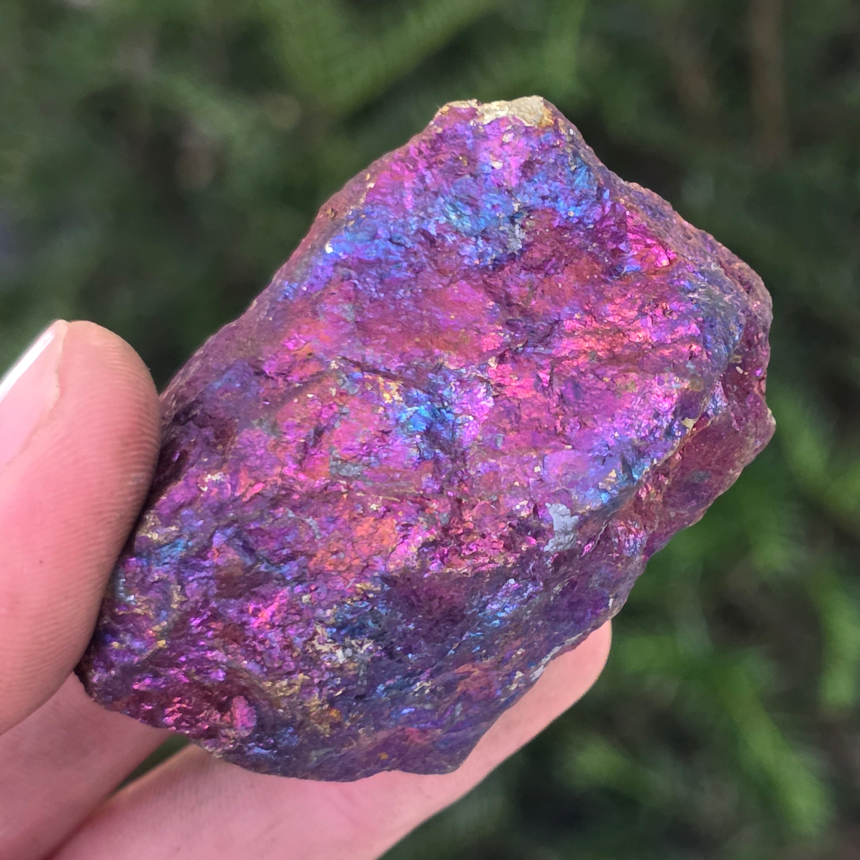 Blaue und violette Chalkopyrite werden mit spirituellem Wachstum, Intuition und Verbindung mit höheren Energien in Verbindung gebracht. Es wird angenommen, dass es hilft, den Geist zu beruhigen und die Kreativität zu stimulieren. Seine schillernden Farbtöne sind symbolisch mit Gleichgewicht und Harmonie verbunden.