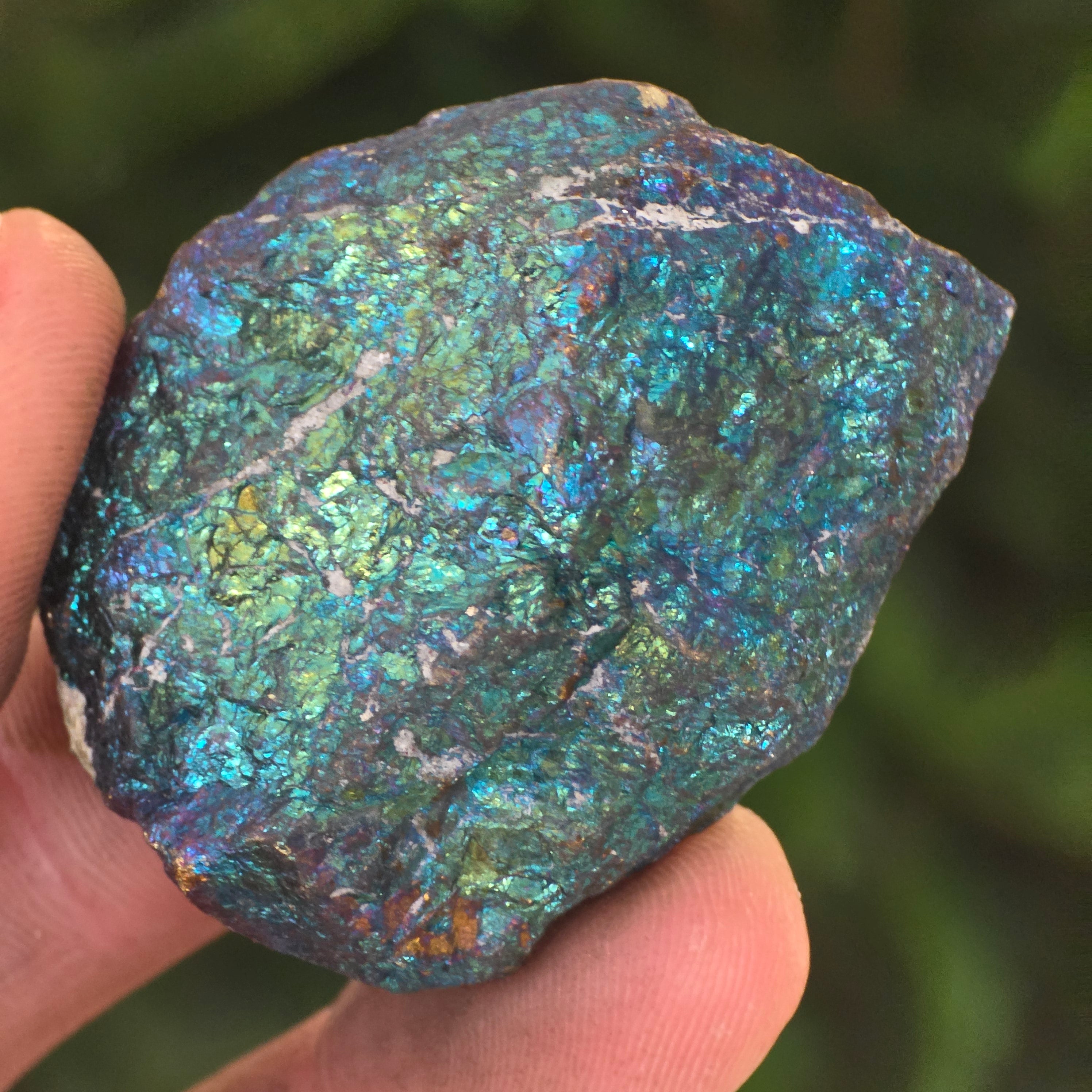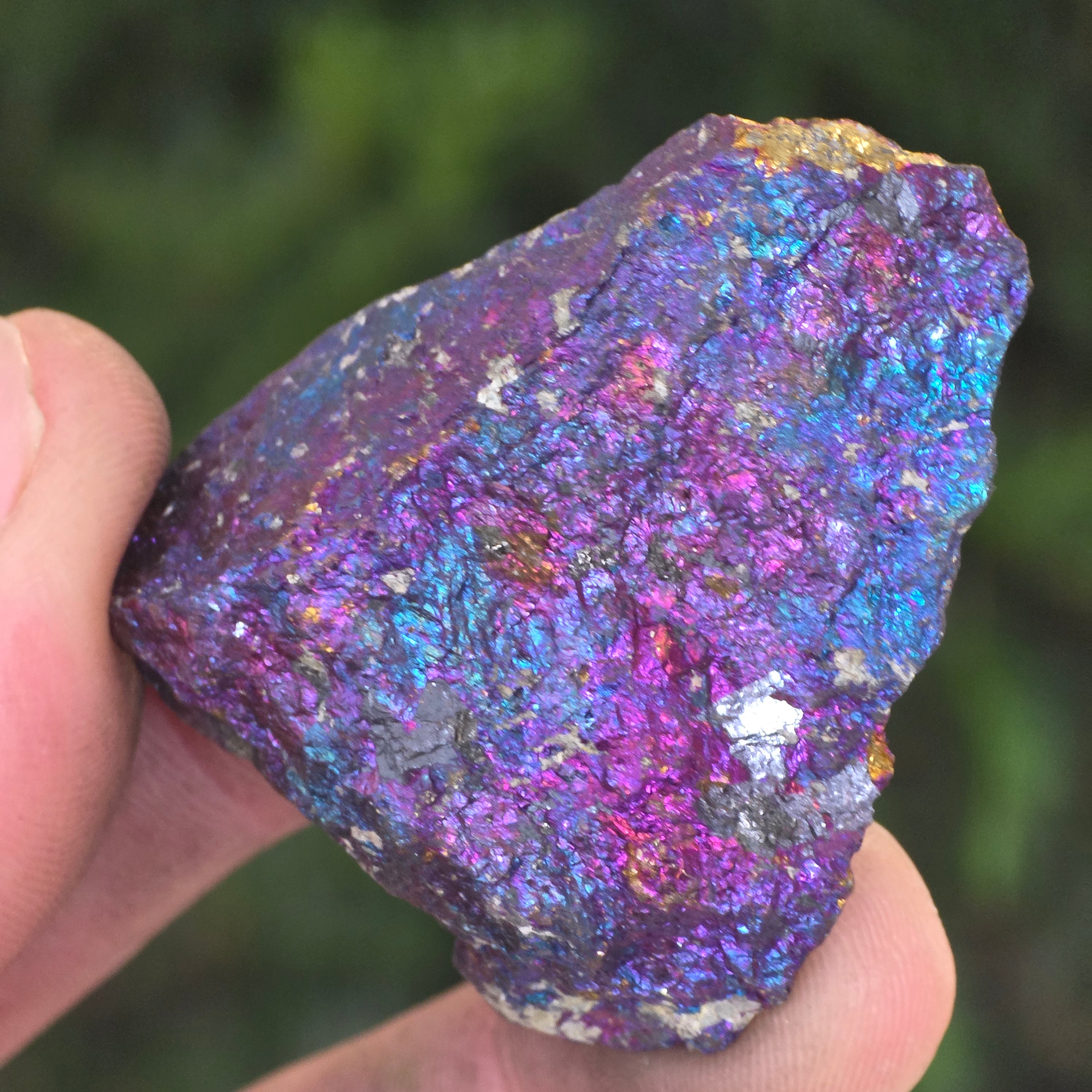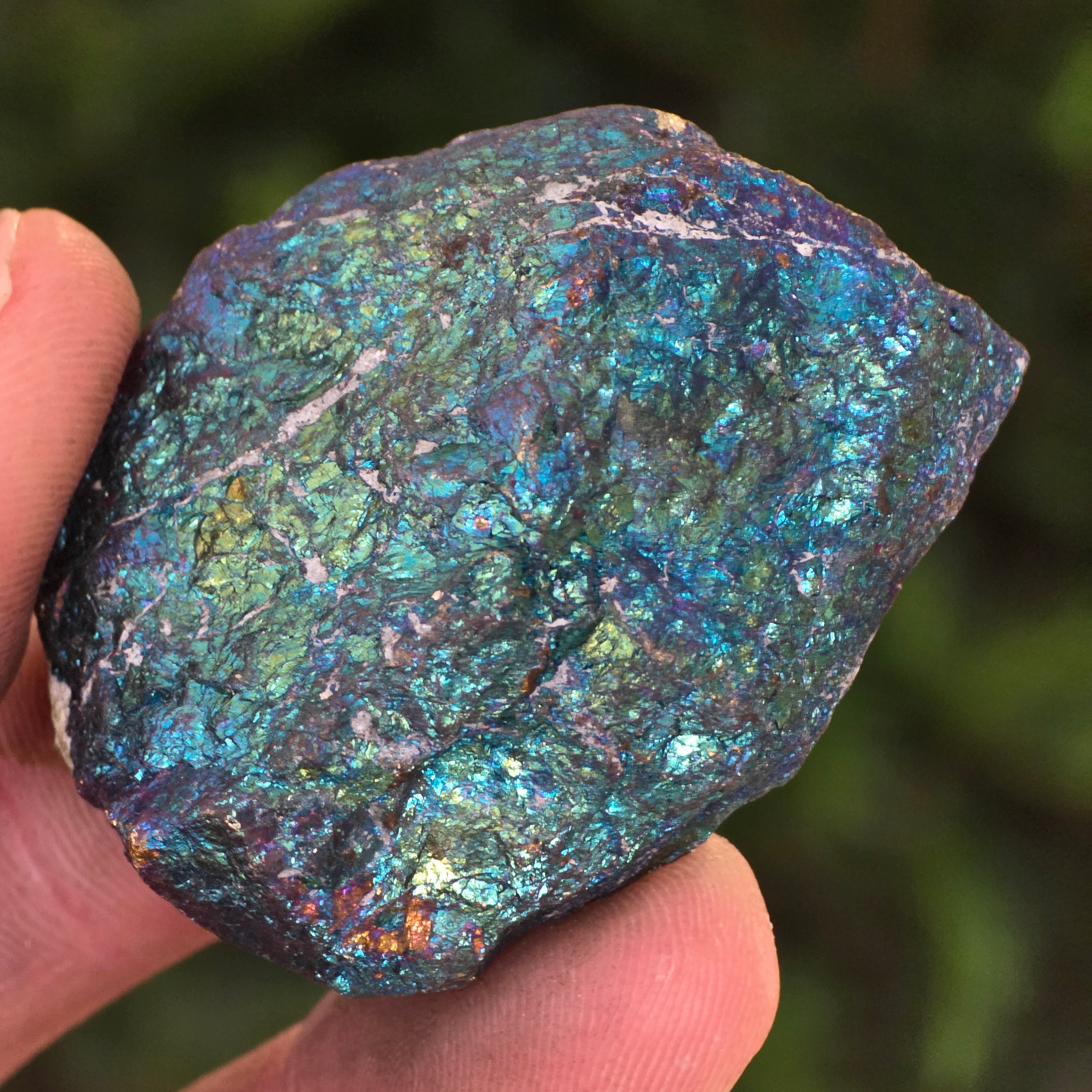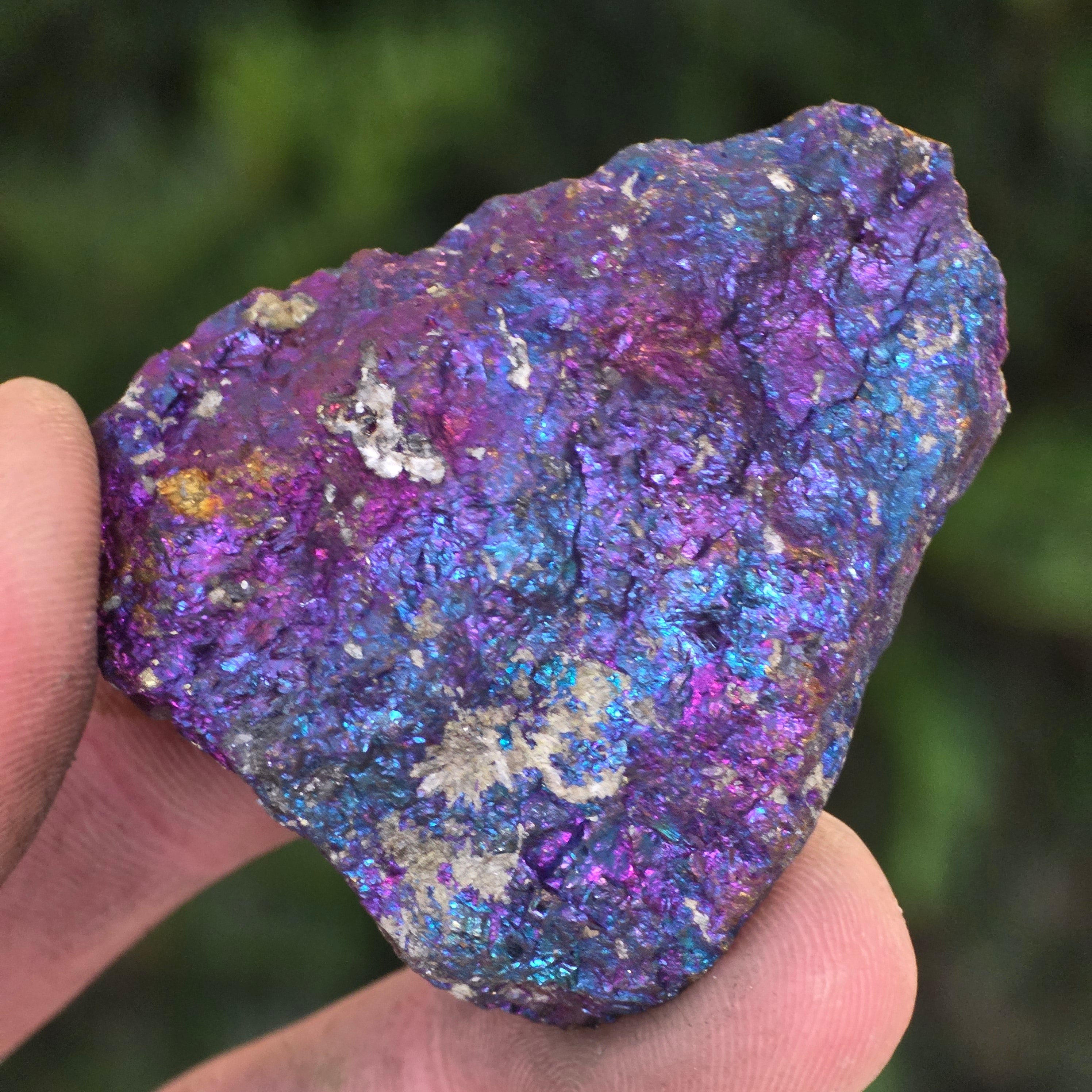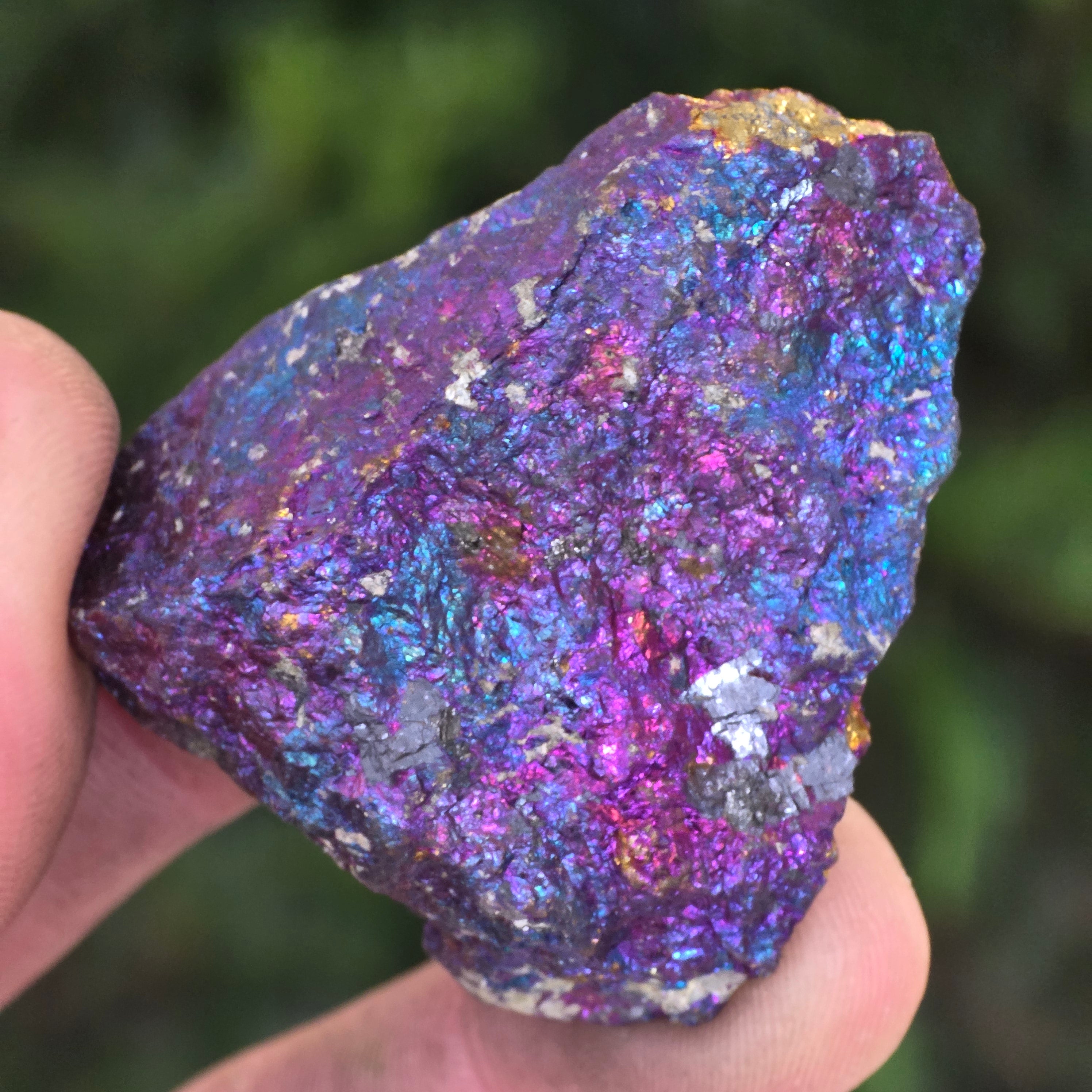 Blaue und violette Chalkopyrite werden mit spirituellem Wachstum, Intuition und der Verbindung zu höheren Energien in Verbindung gebracht. Es wird geglaubt, dass sie helfen, den Geist zu beruhigen und die Kreativität zu fördern. Seine irisierenden Nuancen stehen symbolisch für Gleichgewicht und Harmonie.