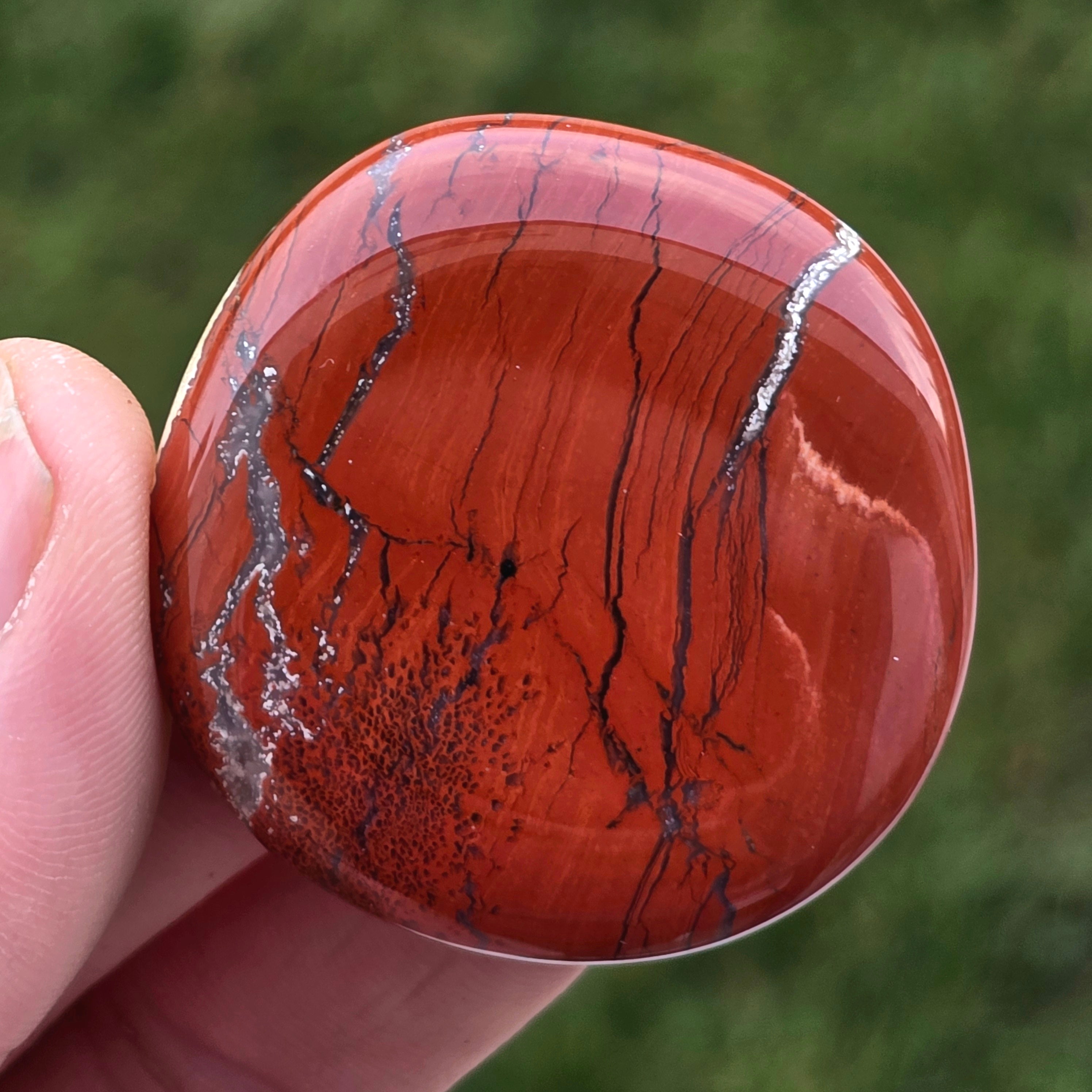 Roter Jaspis wird auch Stein des Mutes und der Kraft genannt. Dieser Stein erhöht das Energieniveau, stimuliert die Durchblutung und die Lebensfreude.