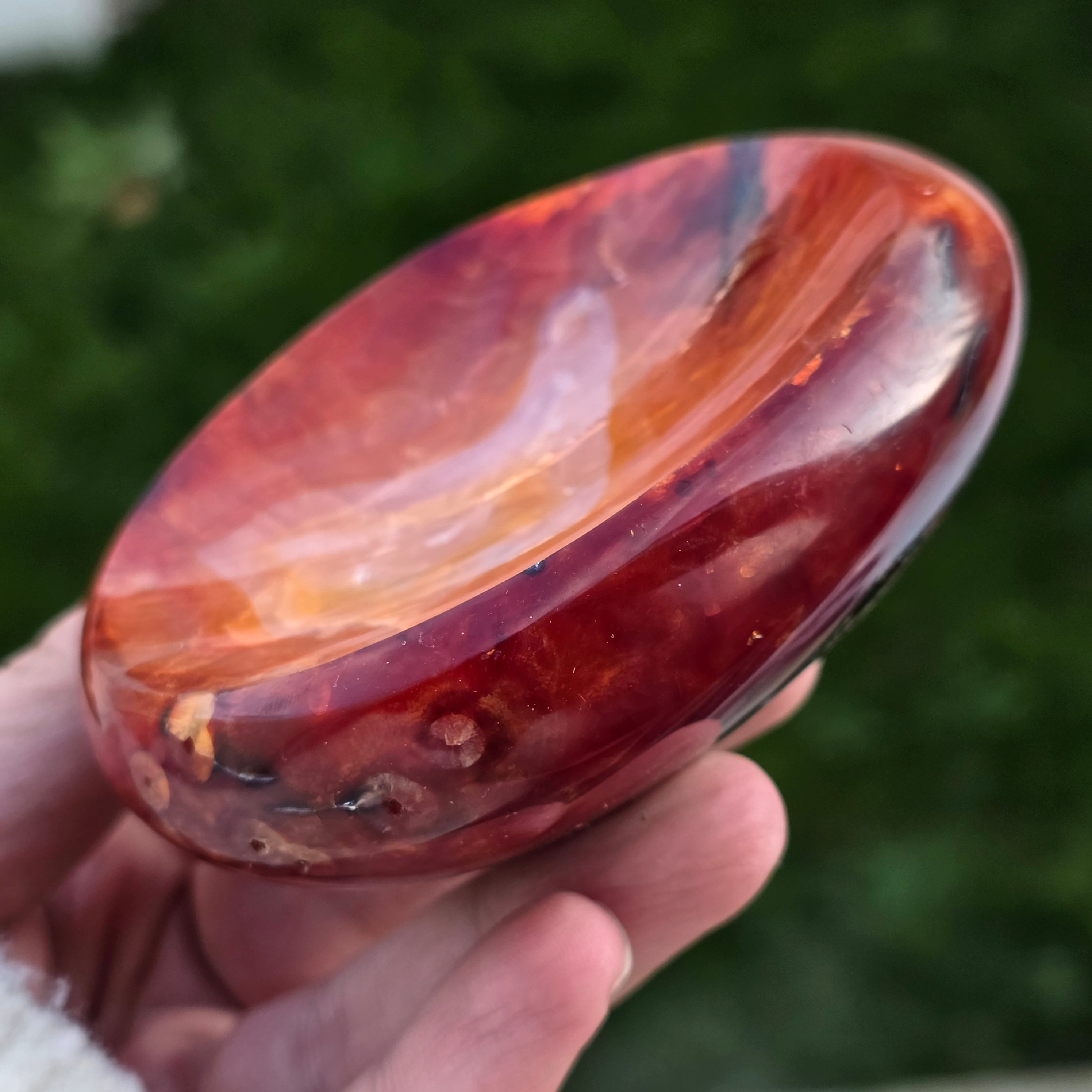 Schale aus natürlichem, einzigartigem Karneolaus Madagaskar, sorgfältig geschnitzt, um die natürliche Schönheit des Steins hervorzuheben.