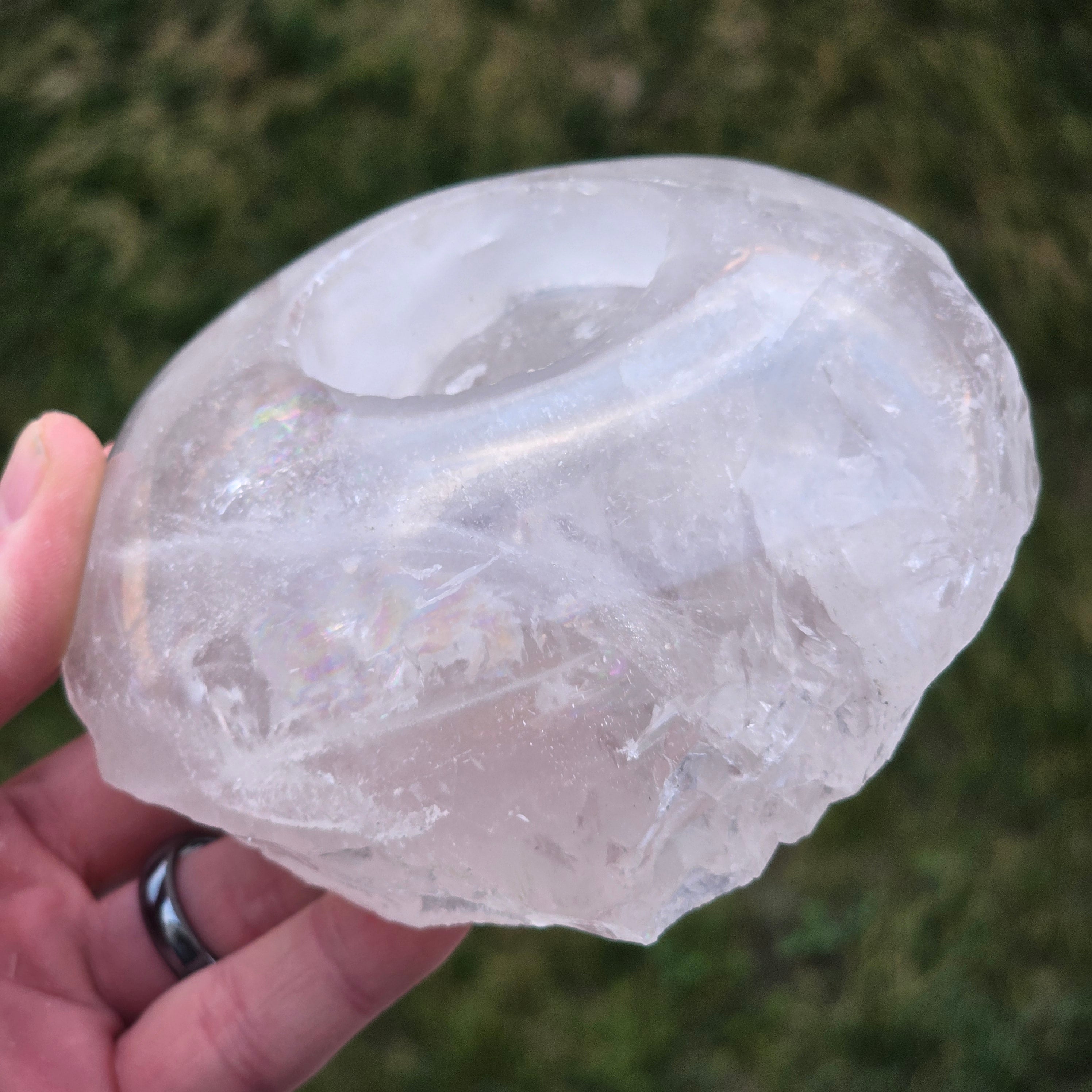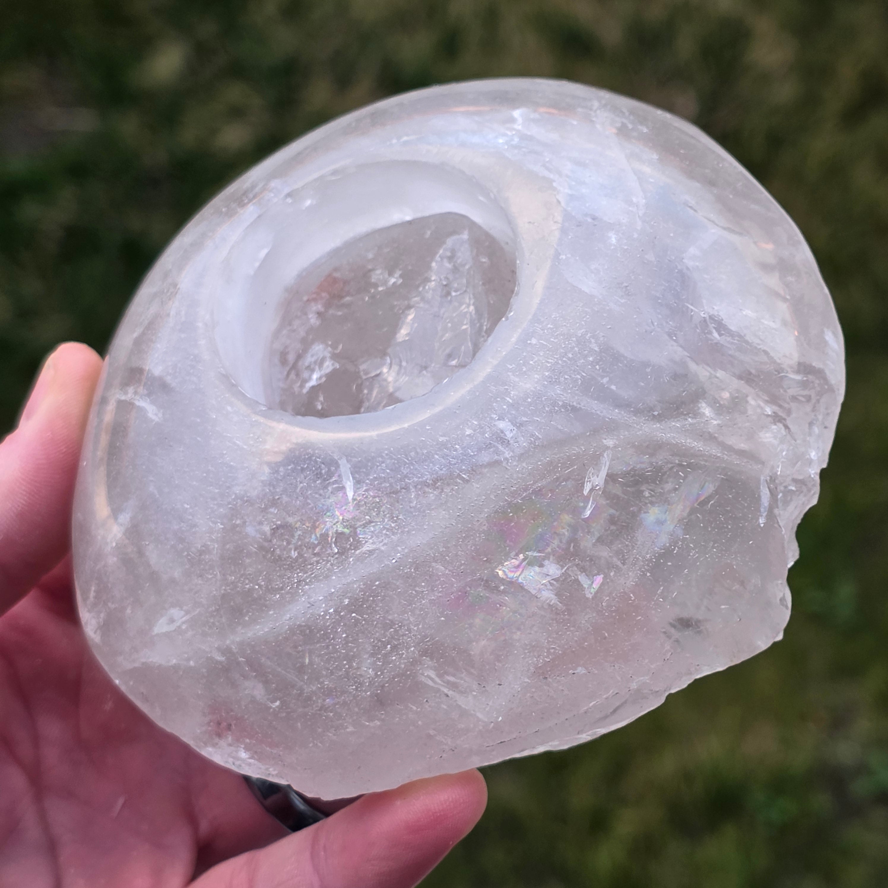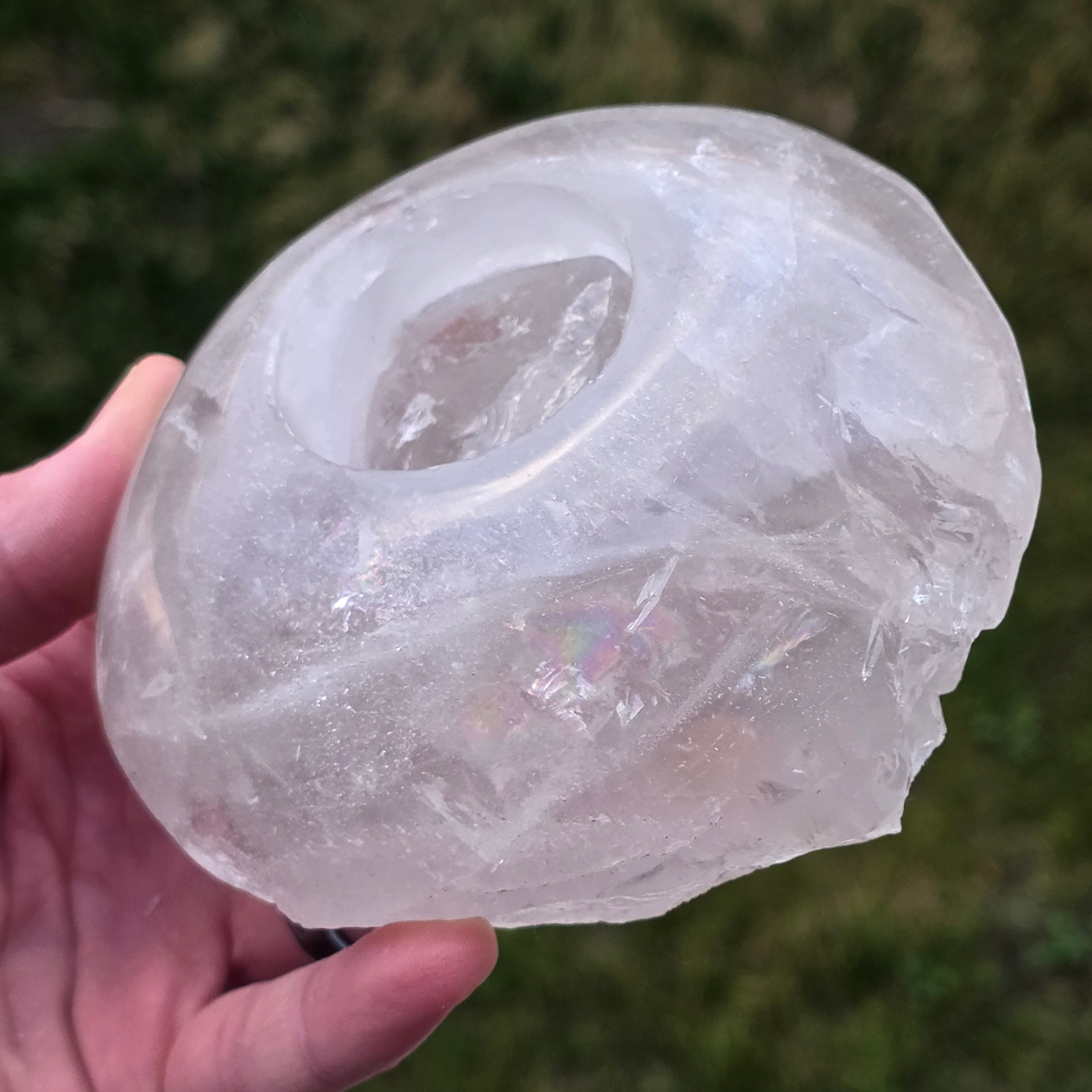 Kerzenhalter aus farblosem, einseitig poliertem Quarz | Modell 3