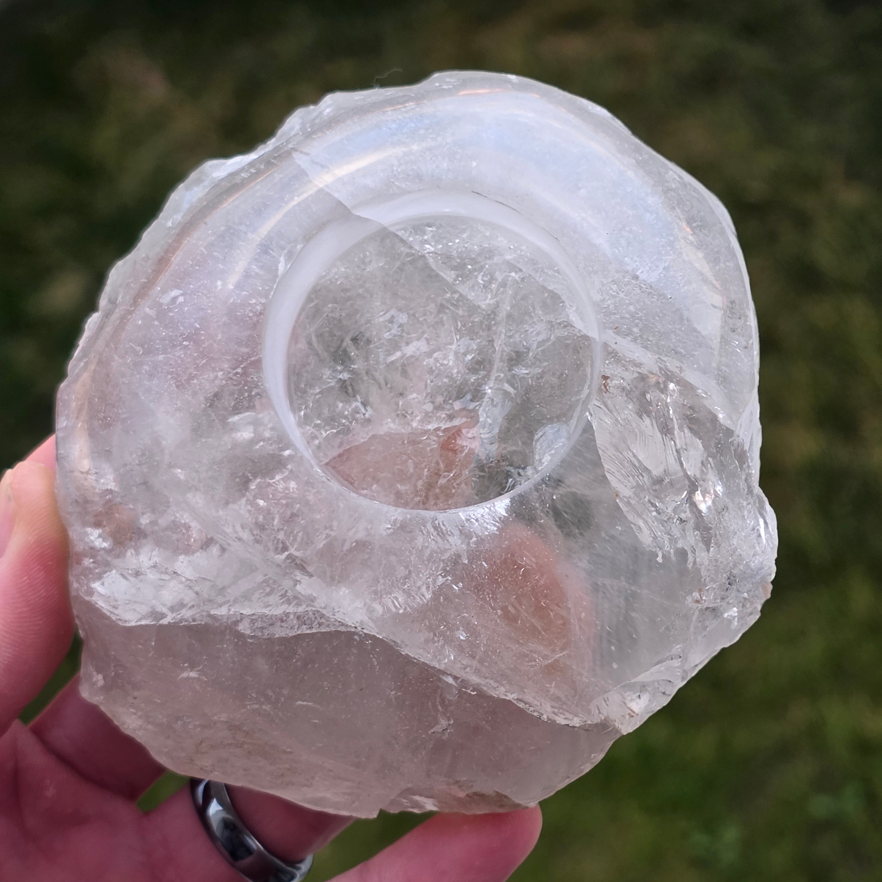 Beschreibung - Kerzenhalter aus farblosem, einseitig poliertem Quarz | Modell 4
