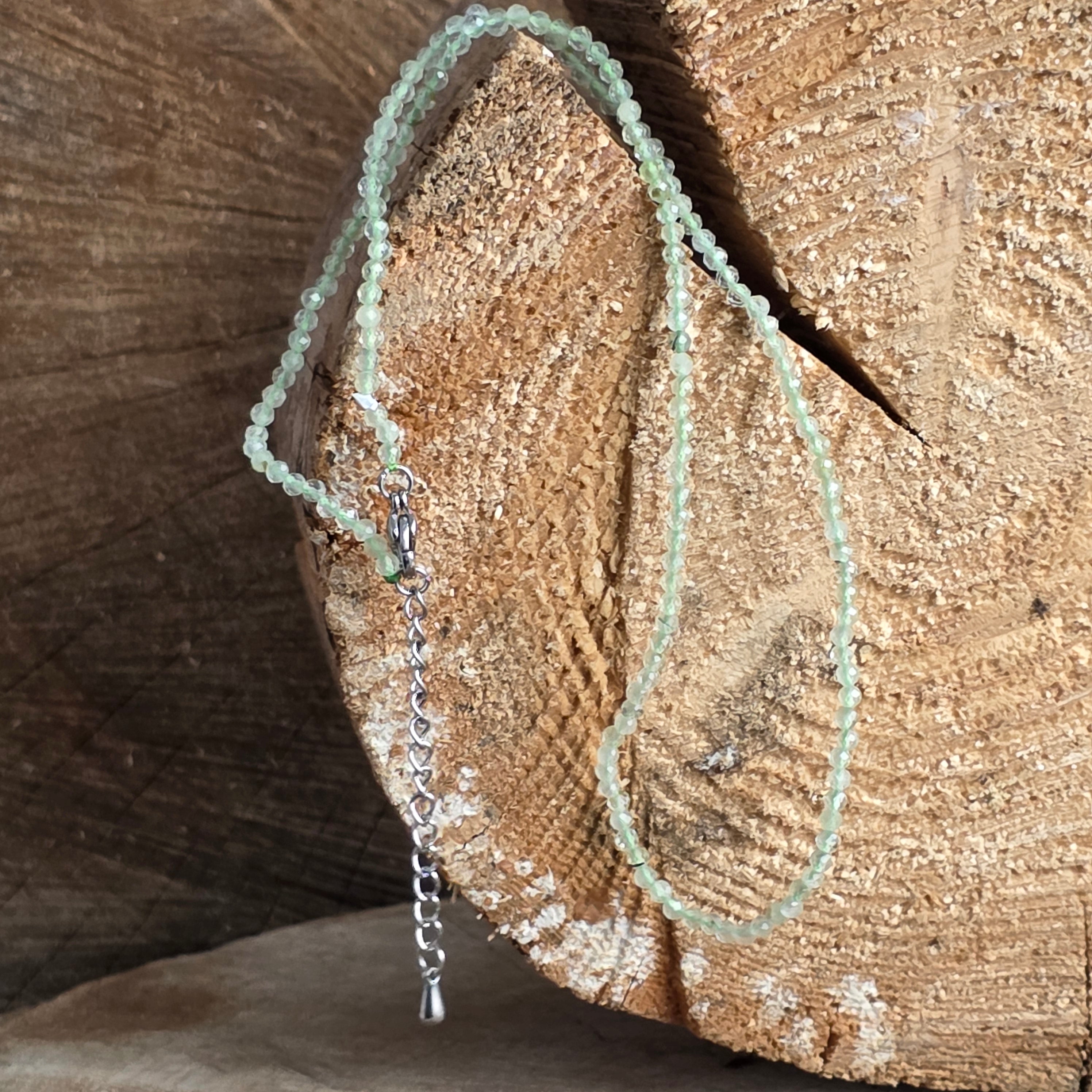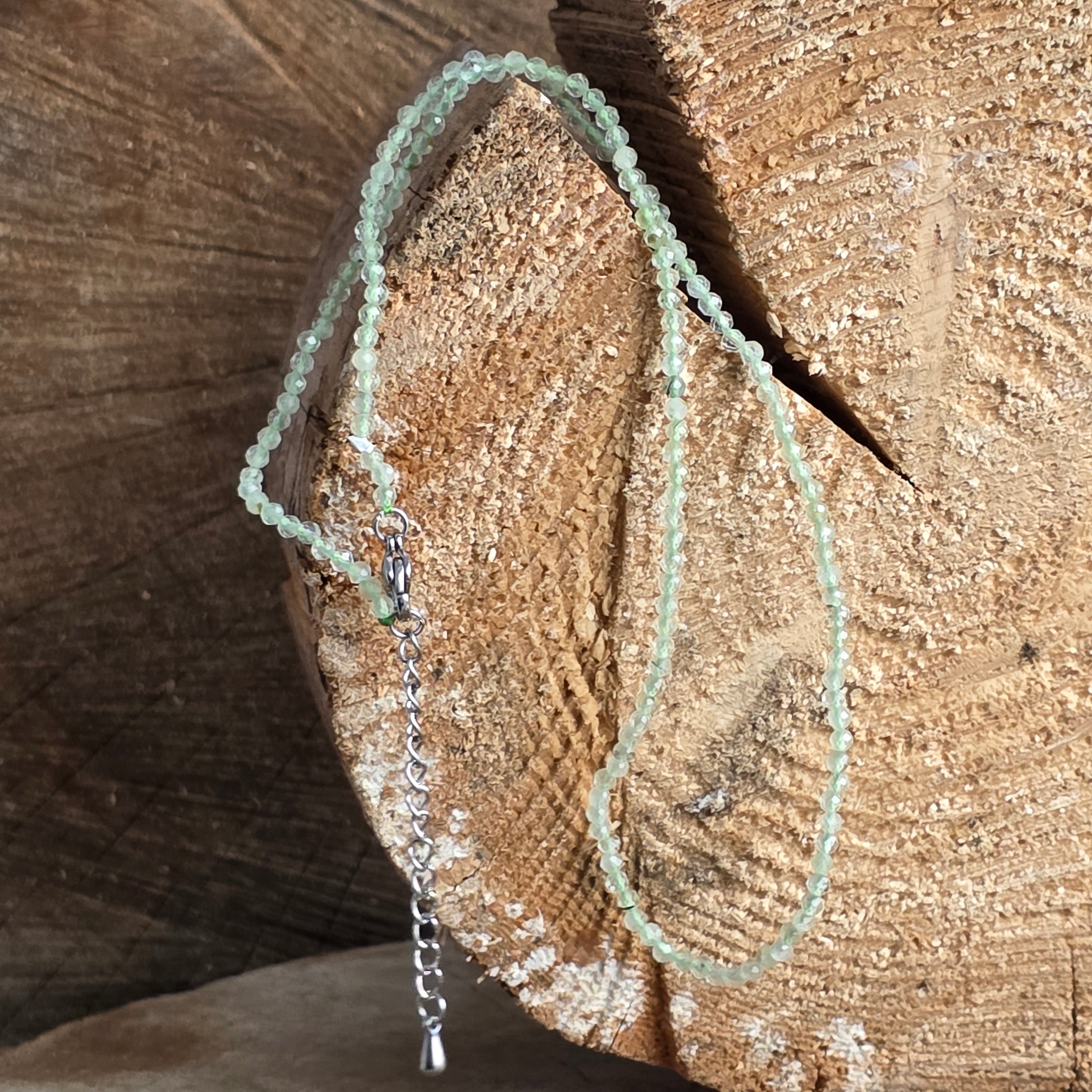Halskette mit 2 mm Perlen aus Prehnit, Größe: 38 + 5 cm (Verlängerungskette)