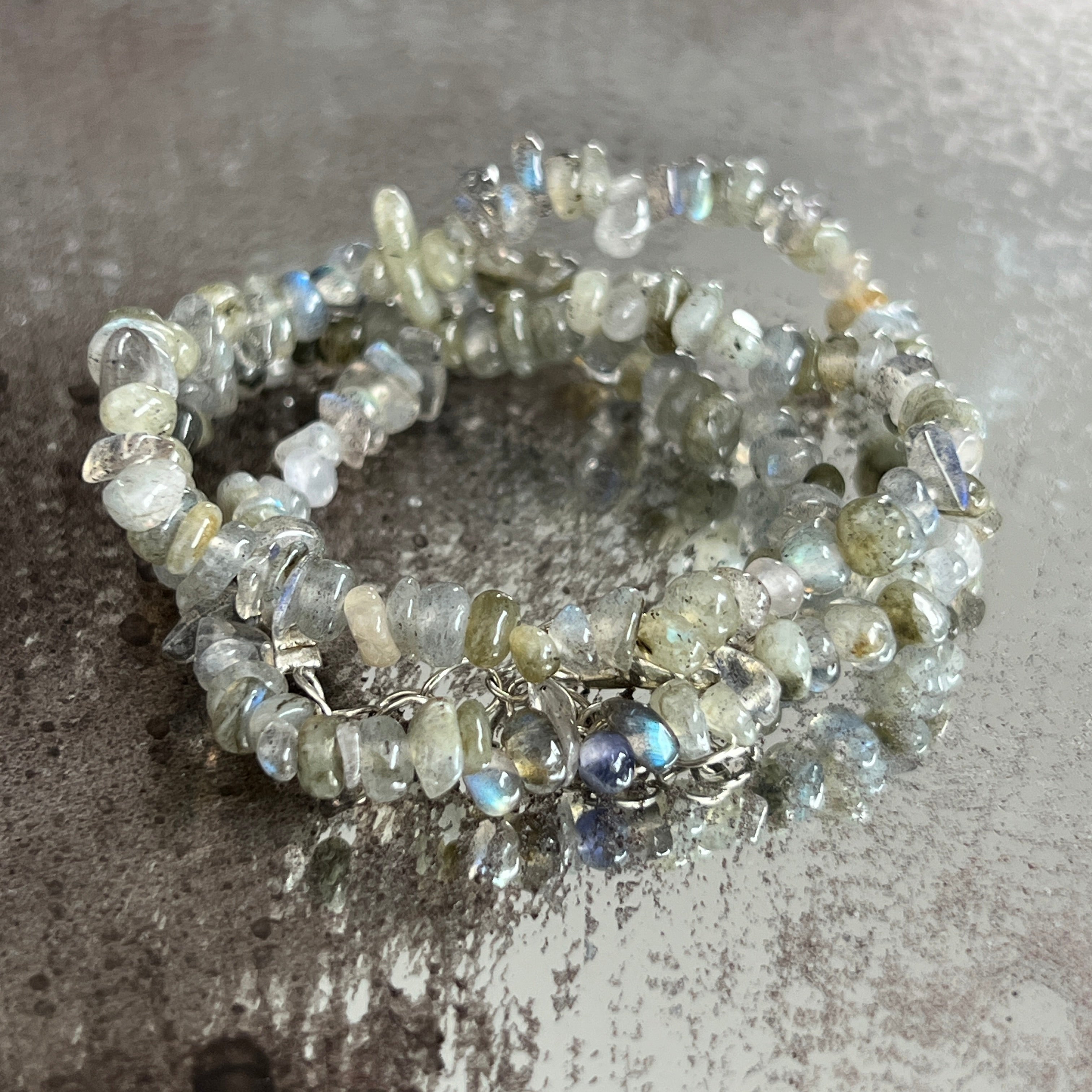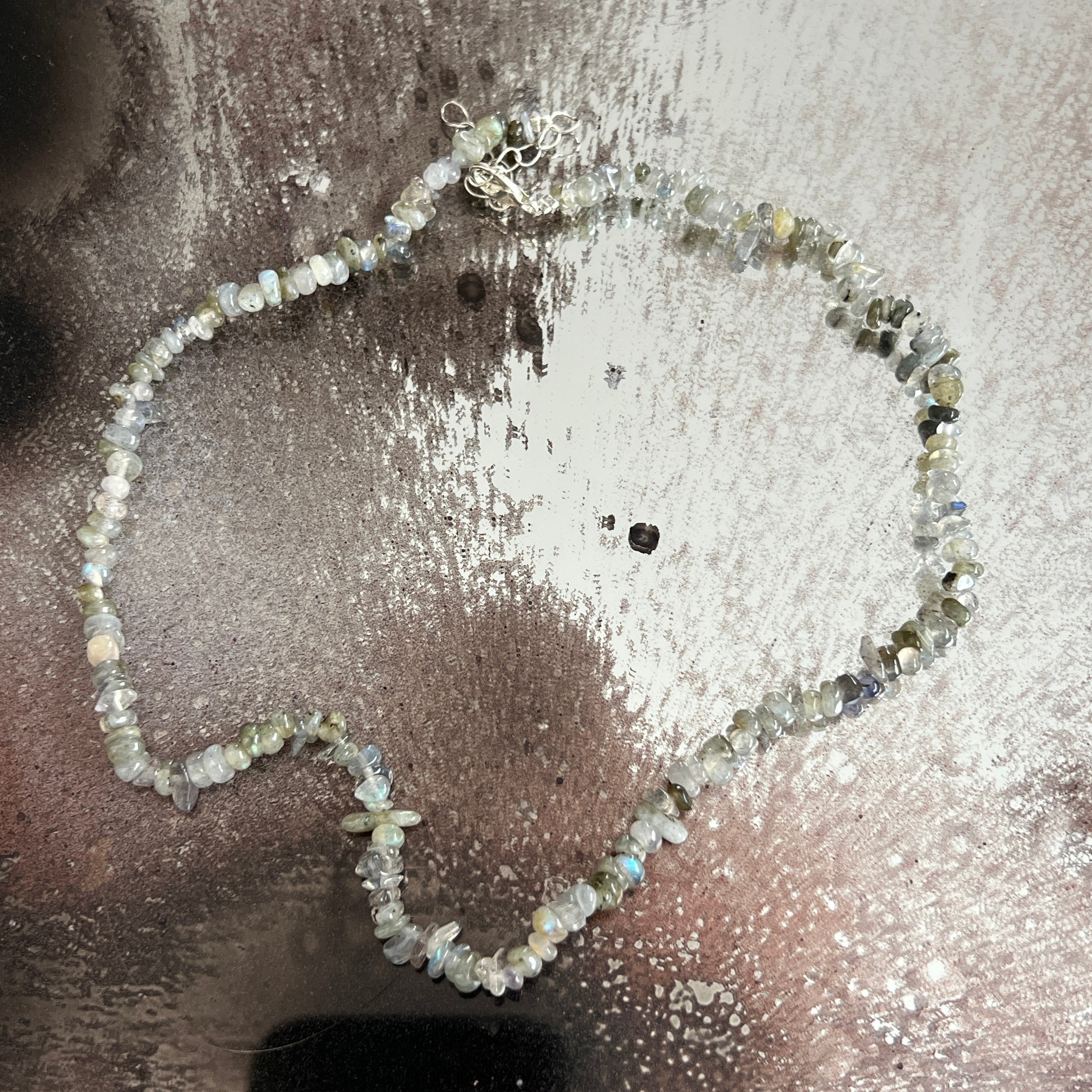 • Stein: natürlicher Labradorit – unregelmäßige Chips