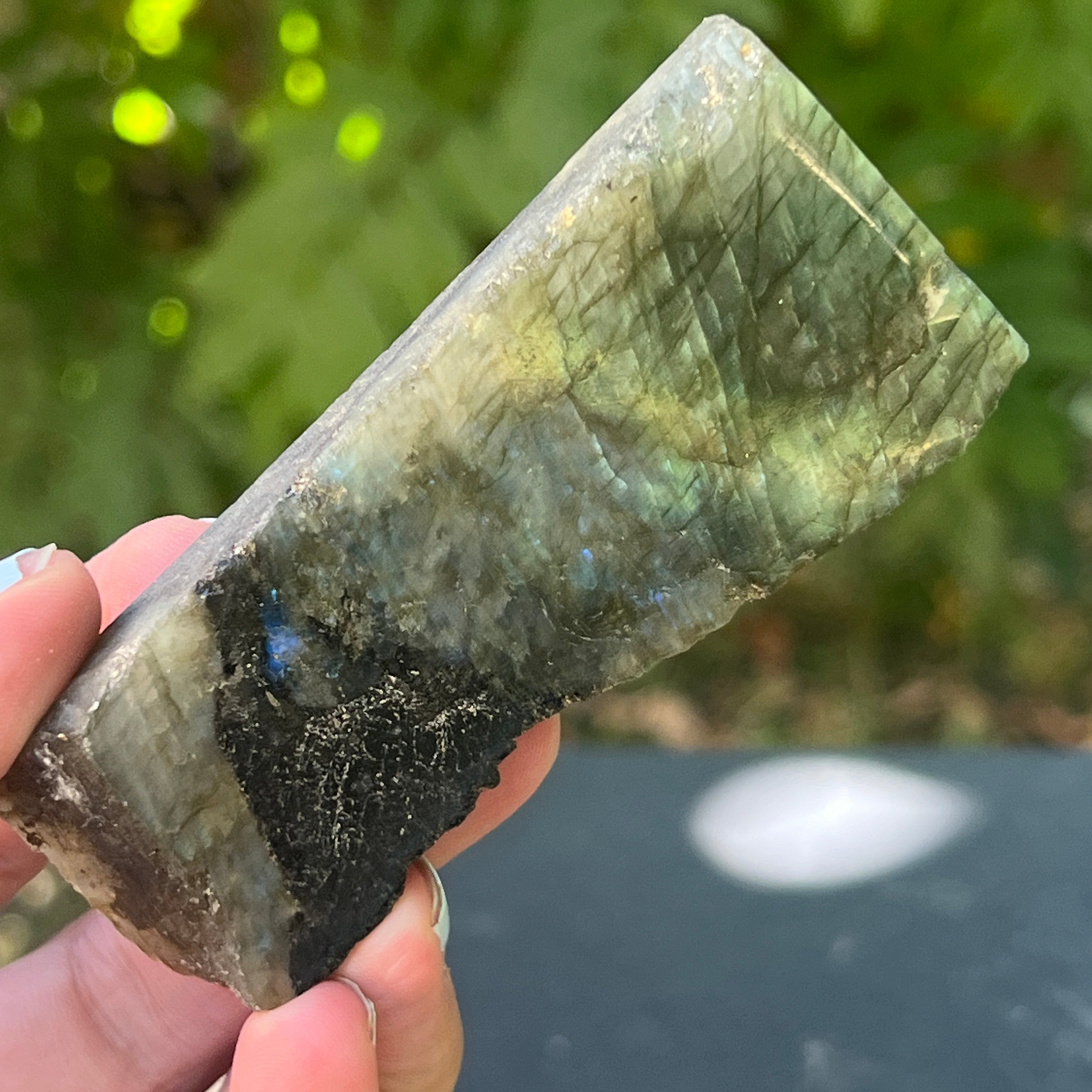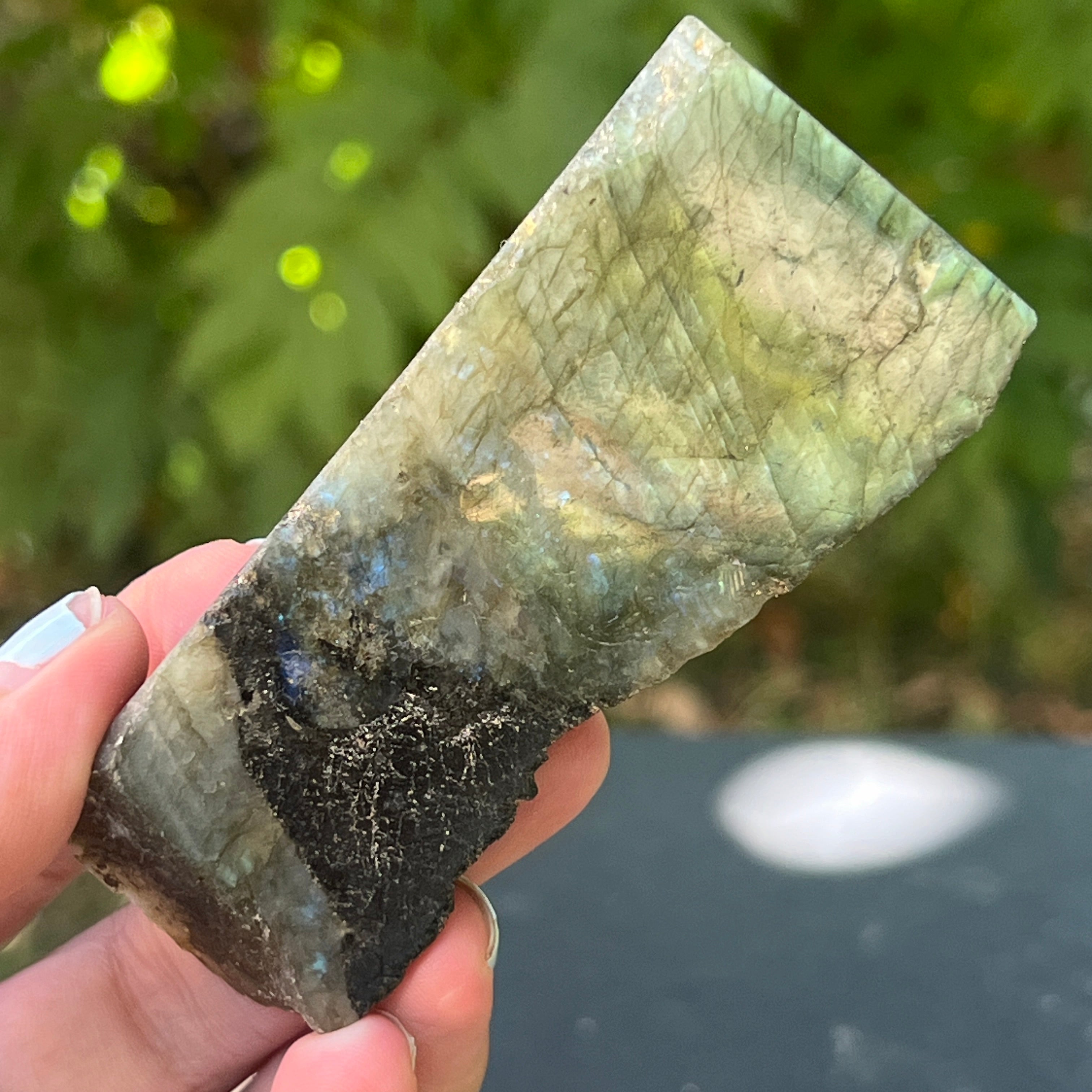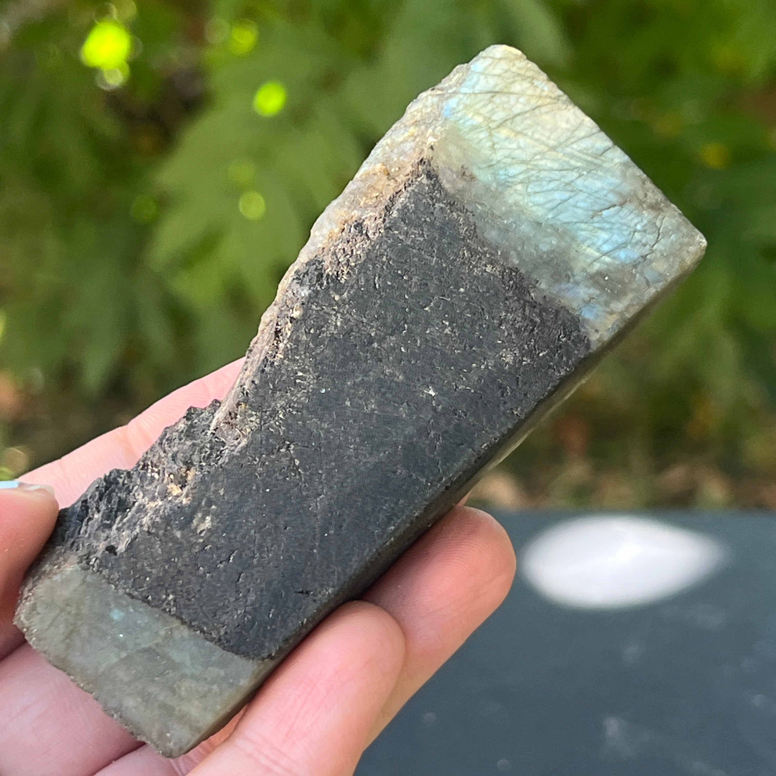 Labradorit grob polierter Stein auf einer Fläche m8