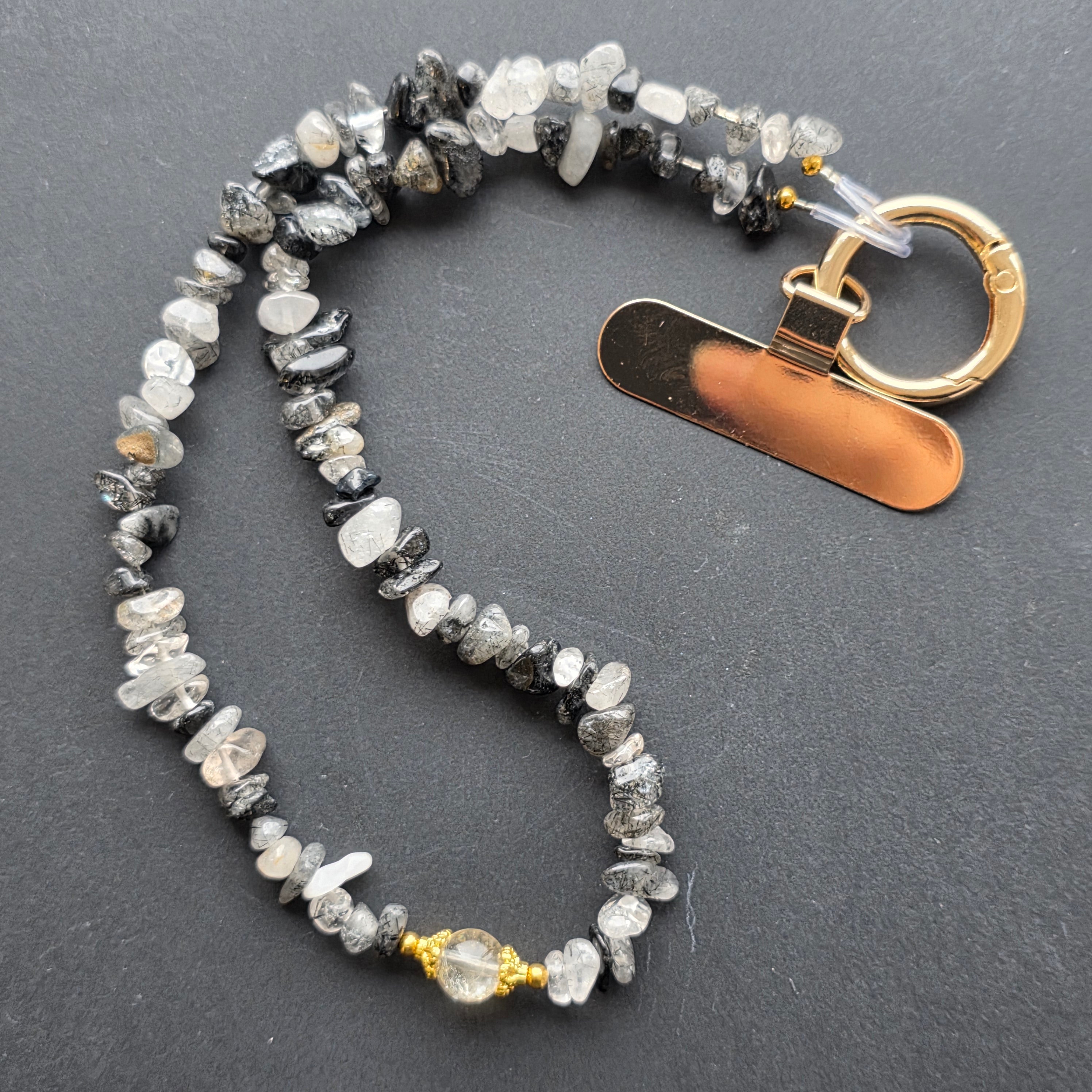 Beschreibung - Lanț pentru telefon din cuart cu turmalina