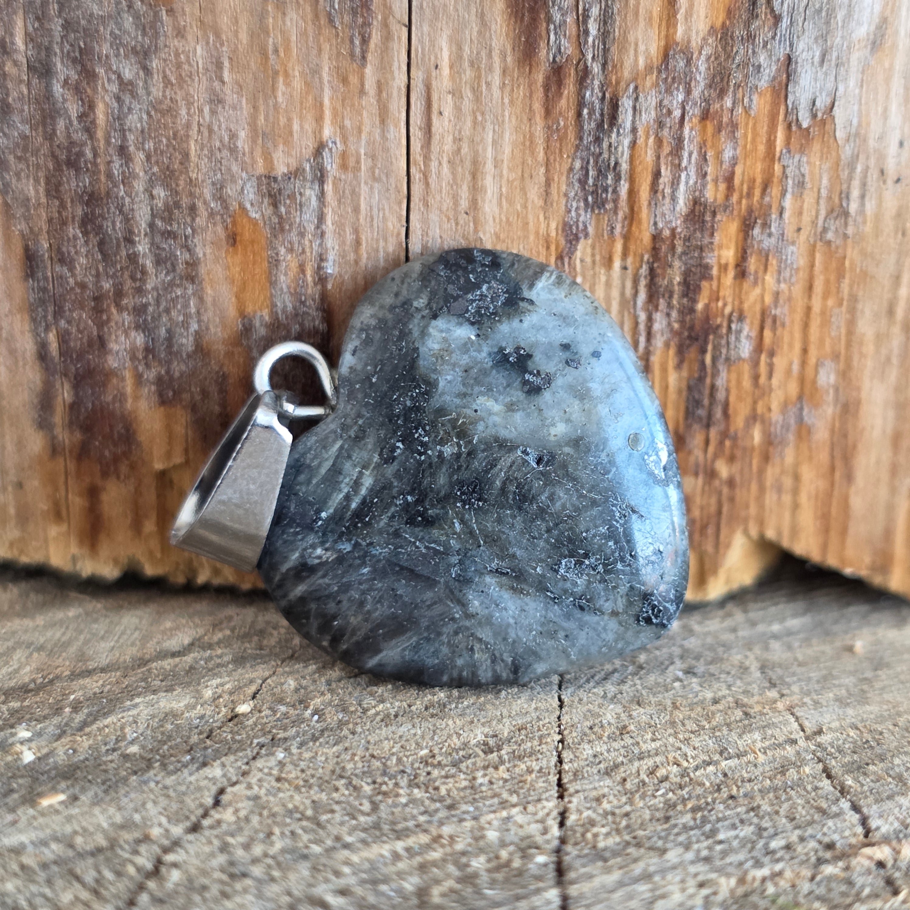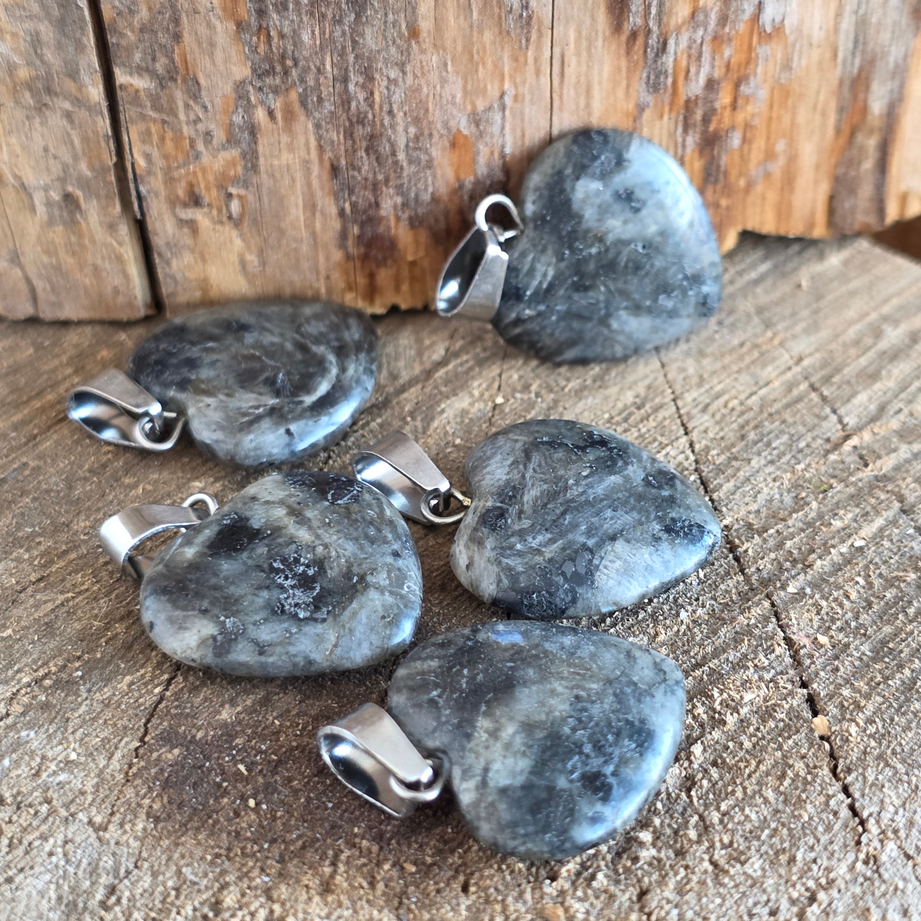 Anhänger aus natürlichem Larvikit, einem Stein, der für seine eleganten dunkelgrauen Nuancen und die markante mineralische Textur geschätzt wird.