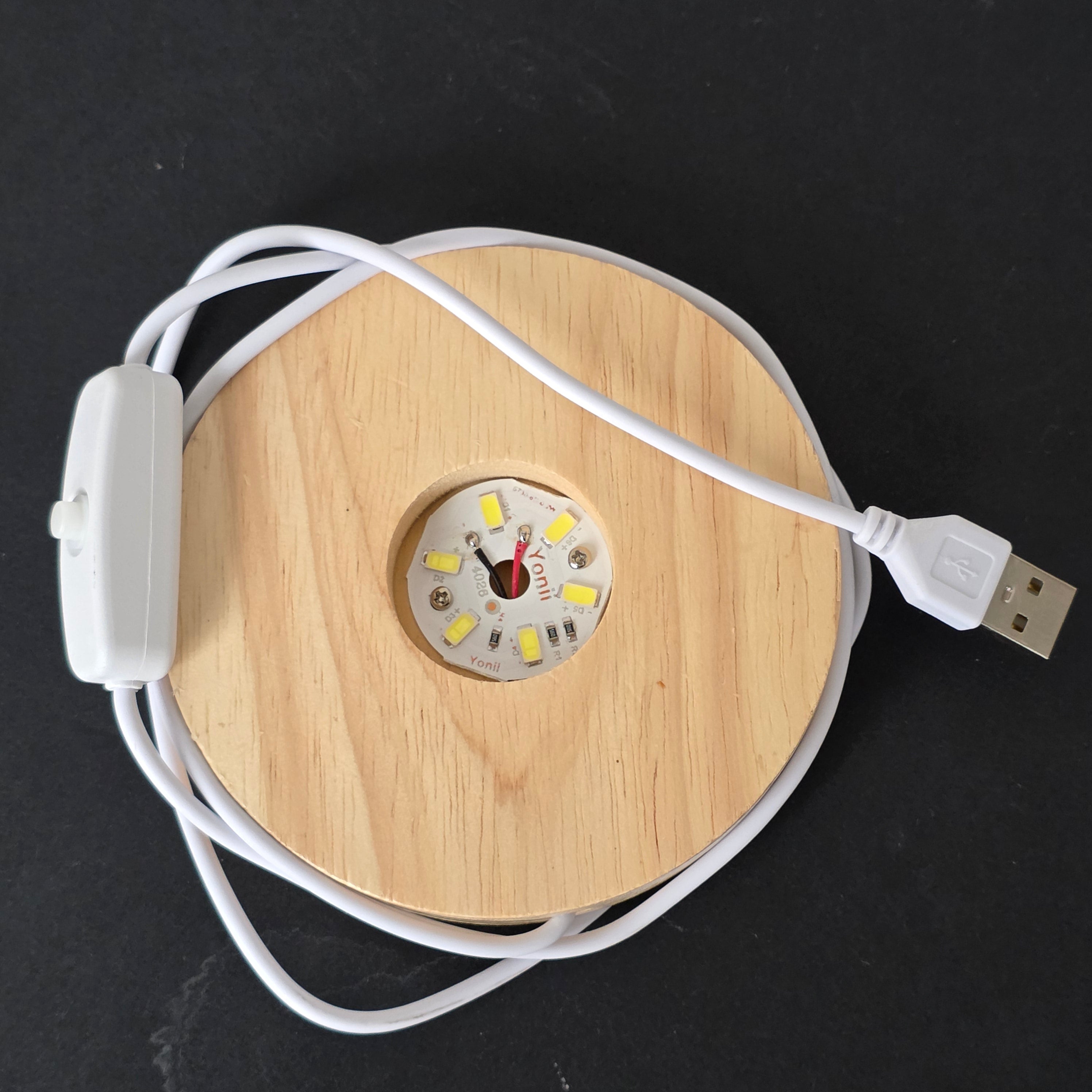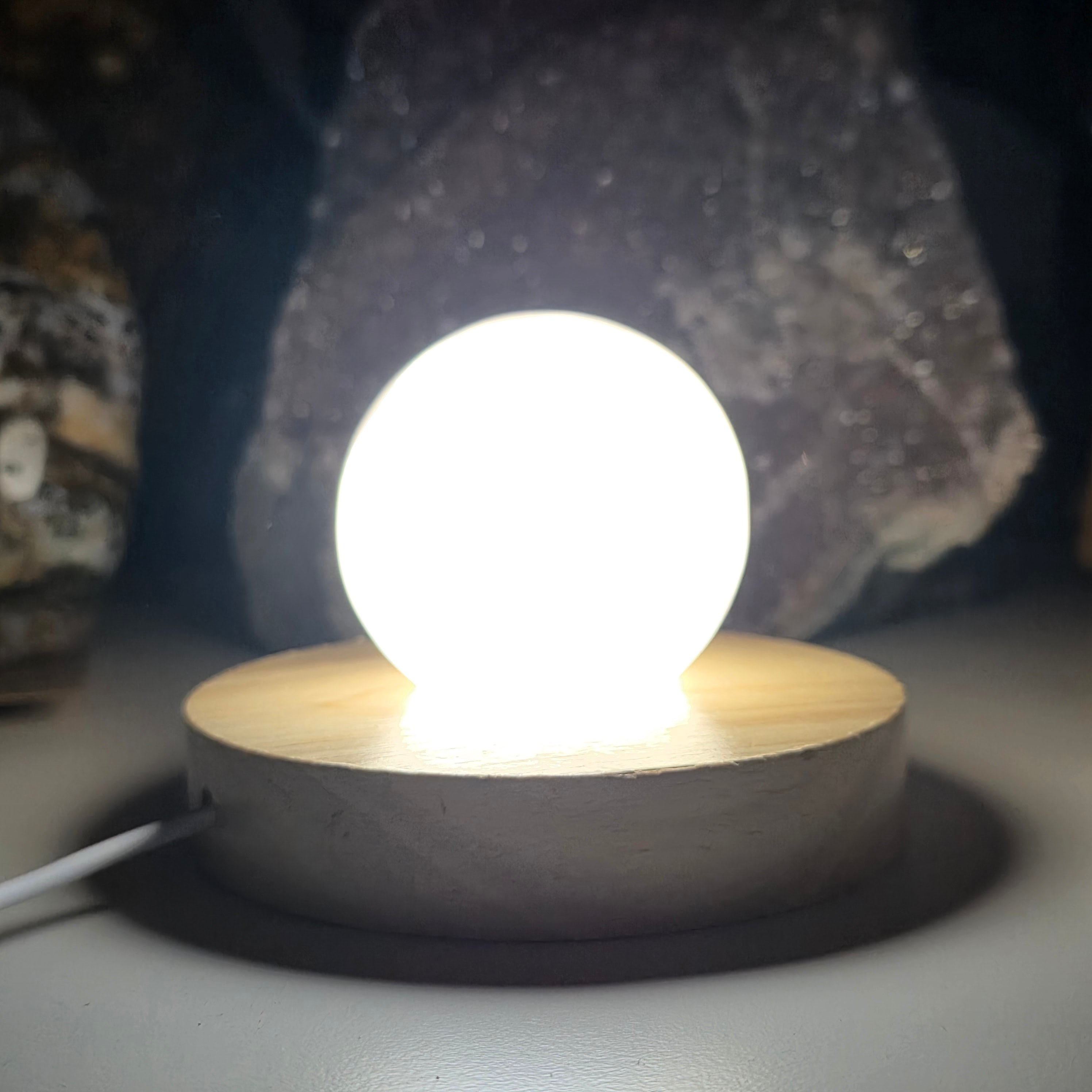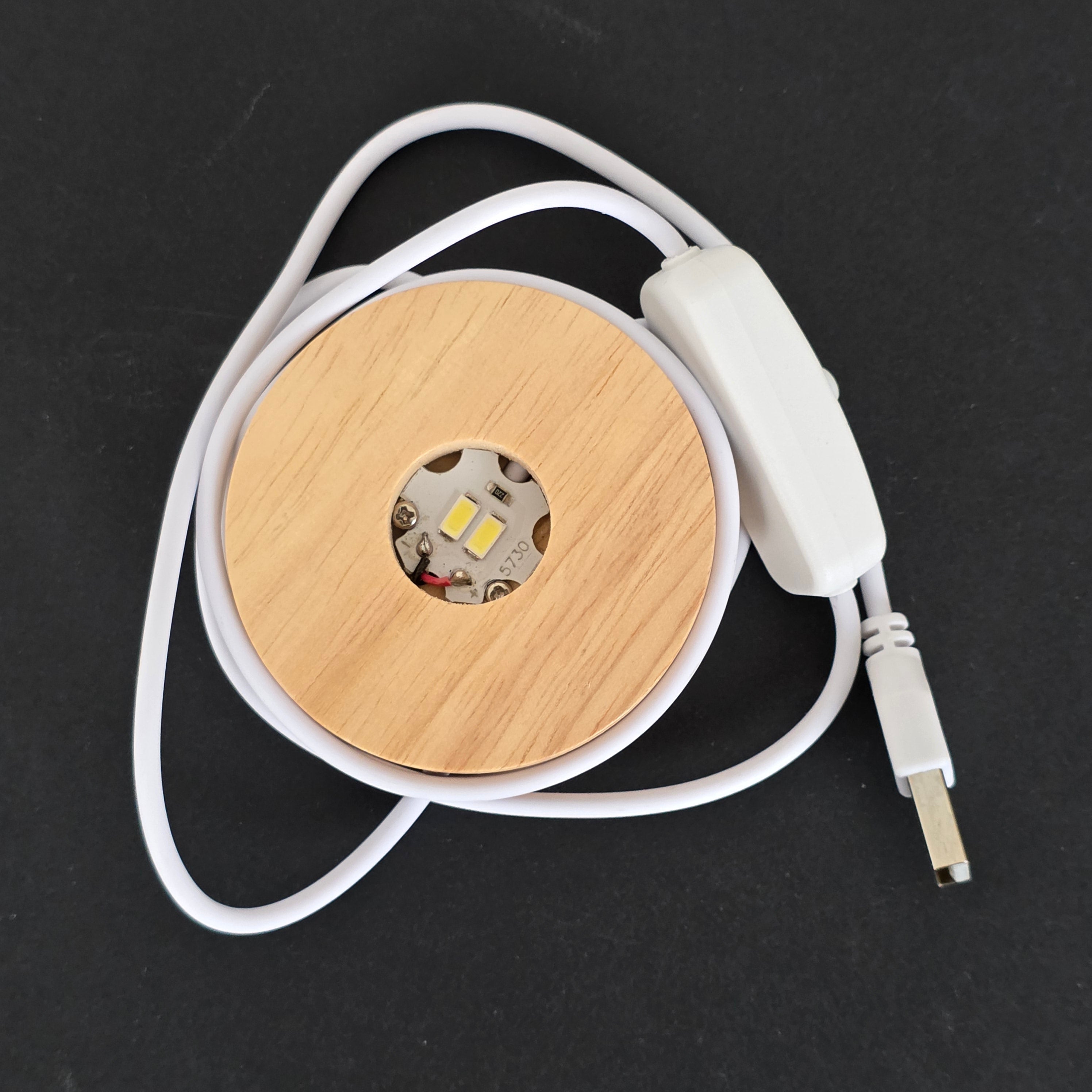 Beschreibung - LED-Holzständer für Kristalle | Rund