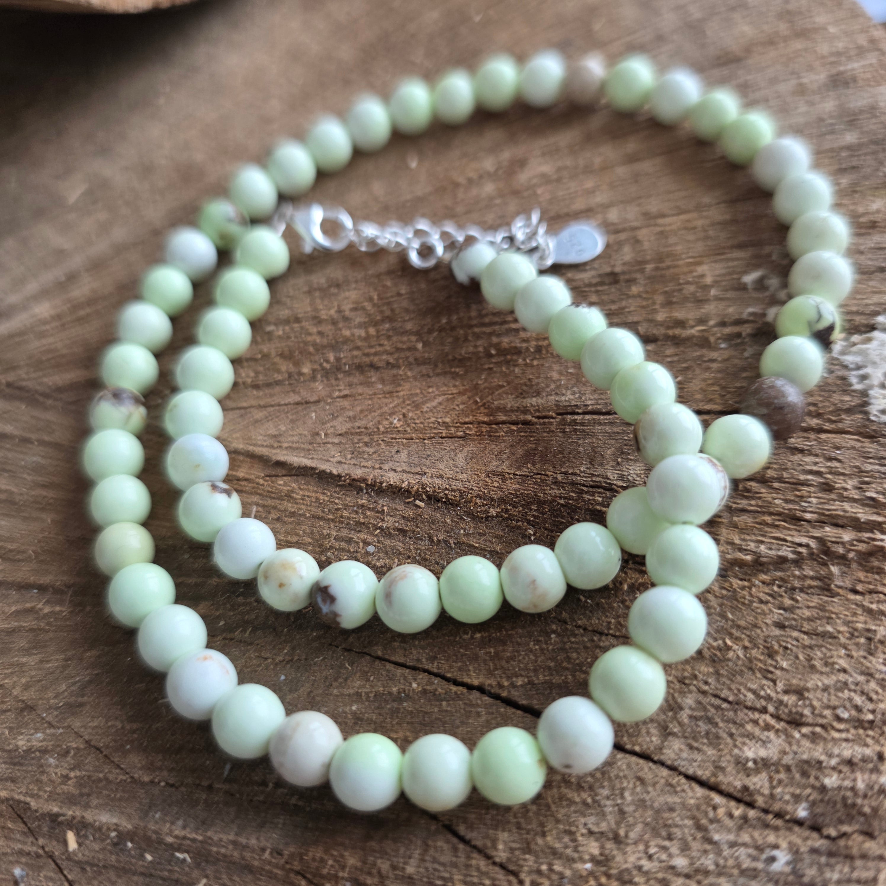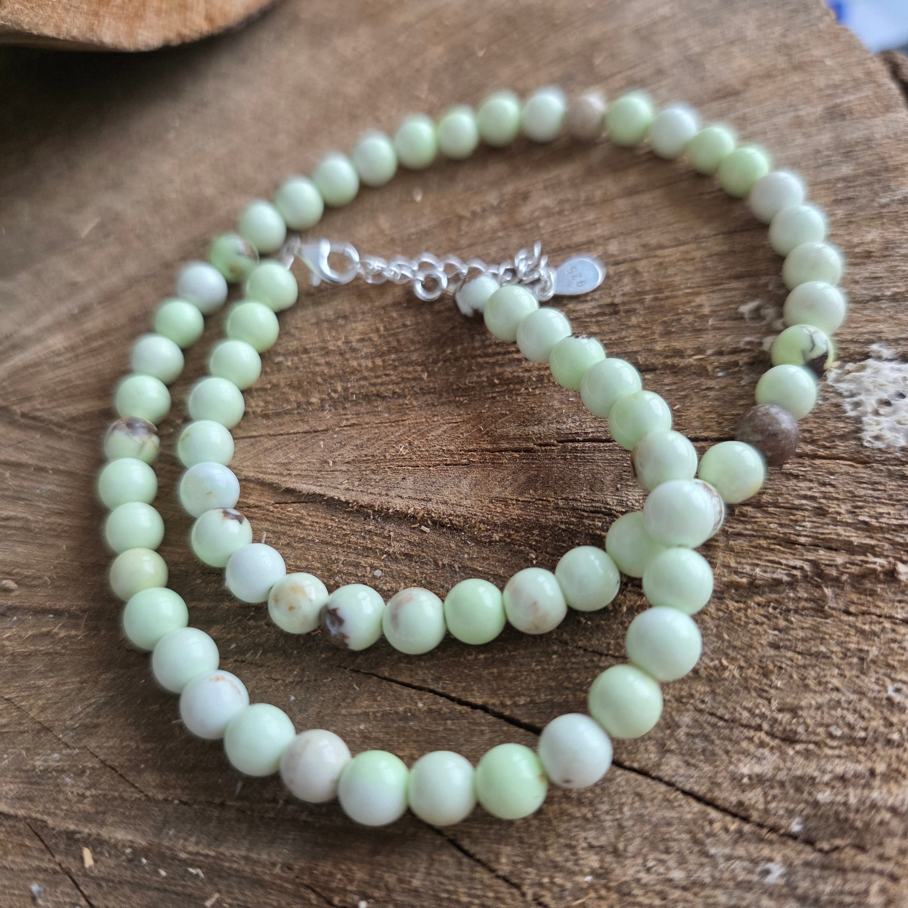 Eine Halskette, die das Licht des Sommers und die Zärtlichkeit eines Neuanfangs in sich trägt. Chrysopras mit seinem leuchtenden, durchscheinenden Grün ist ein Stein des offenen Herzens – ein Symbol dafür aus reiner Liebe, Mitgefühl und Seelenerneuerung. Die 3-mm-facettierten Perlen fangen jeden Lichtstrahl ein und verwandeln die Halskette in ein lebendiges, strahlendes und zartes Juwel.