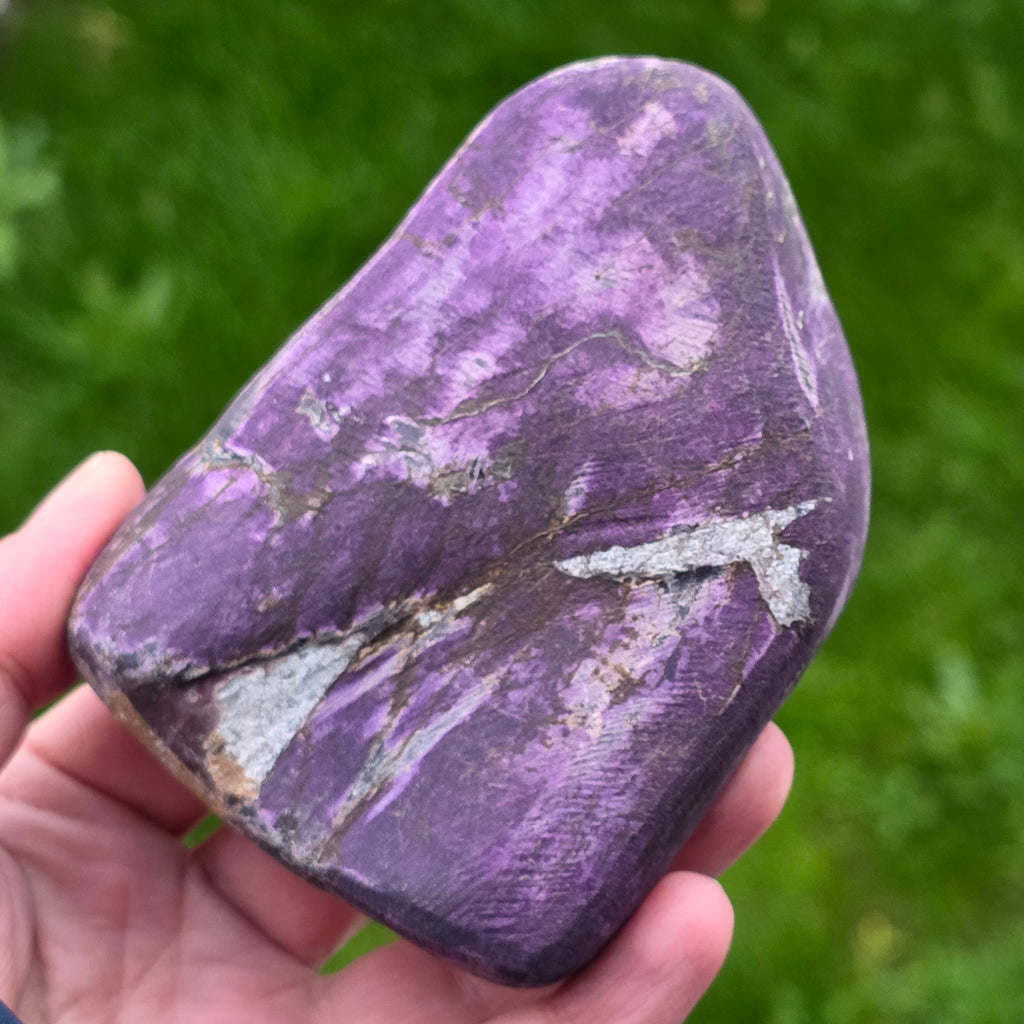 Lila wird oft mit der Entwicklung von spirituellem Bewusstsein, Meditation und Verständnis des tiefen Selbst assoziiert. Es wird gesagt, dass dieser Stein die Qualitäten der Introspektion unterstützt und die Kreativität anregt.