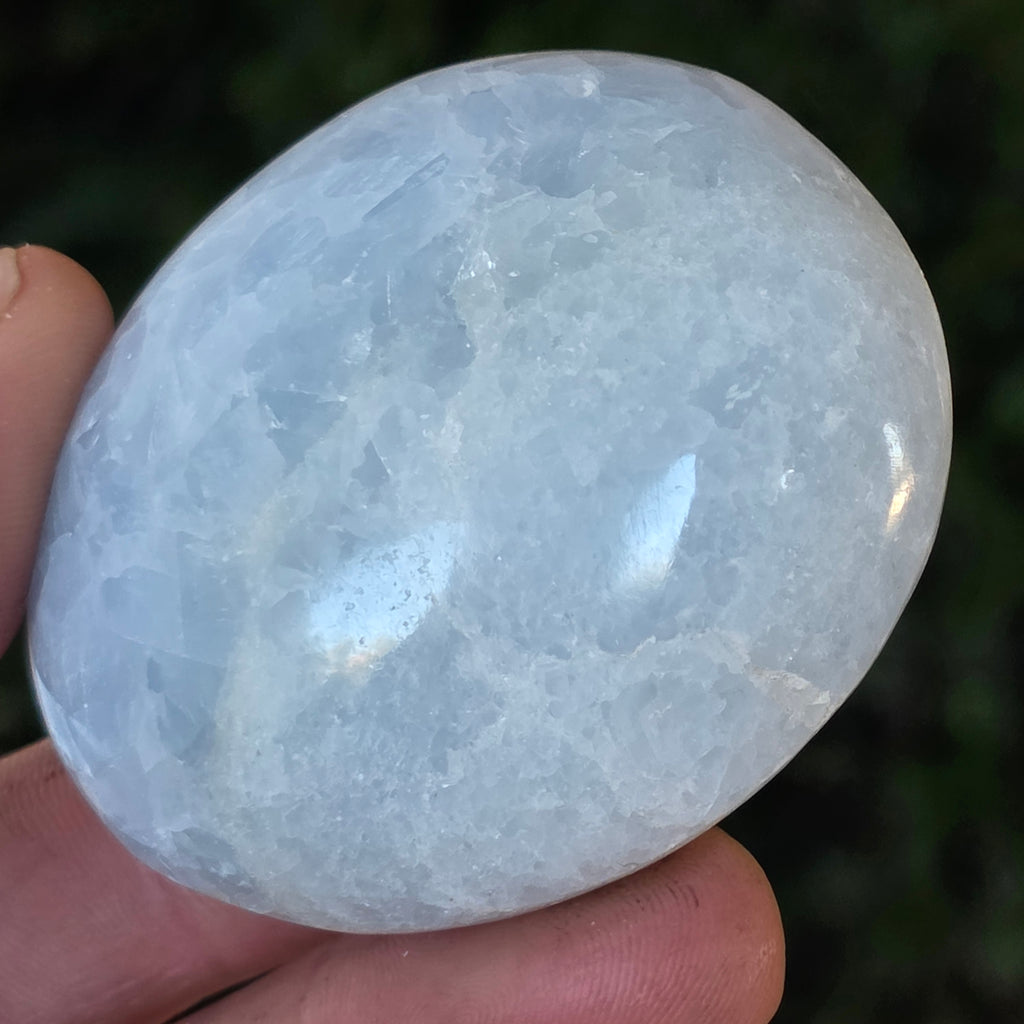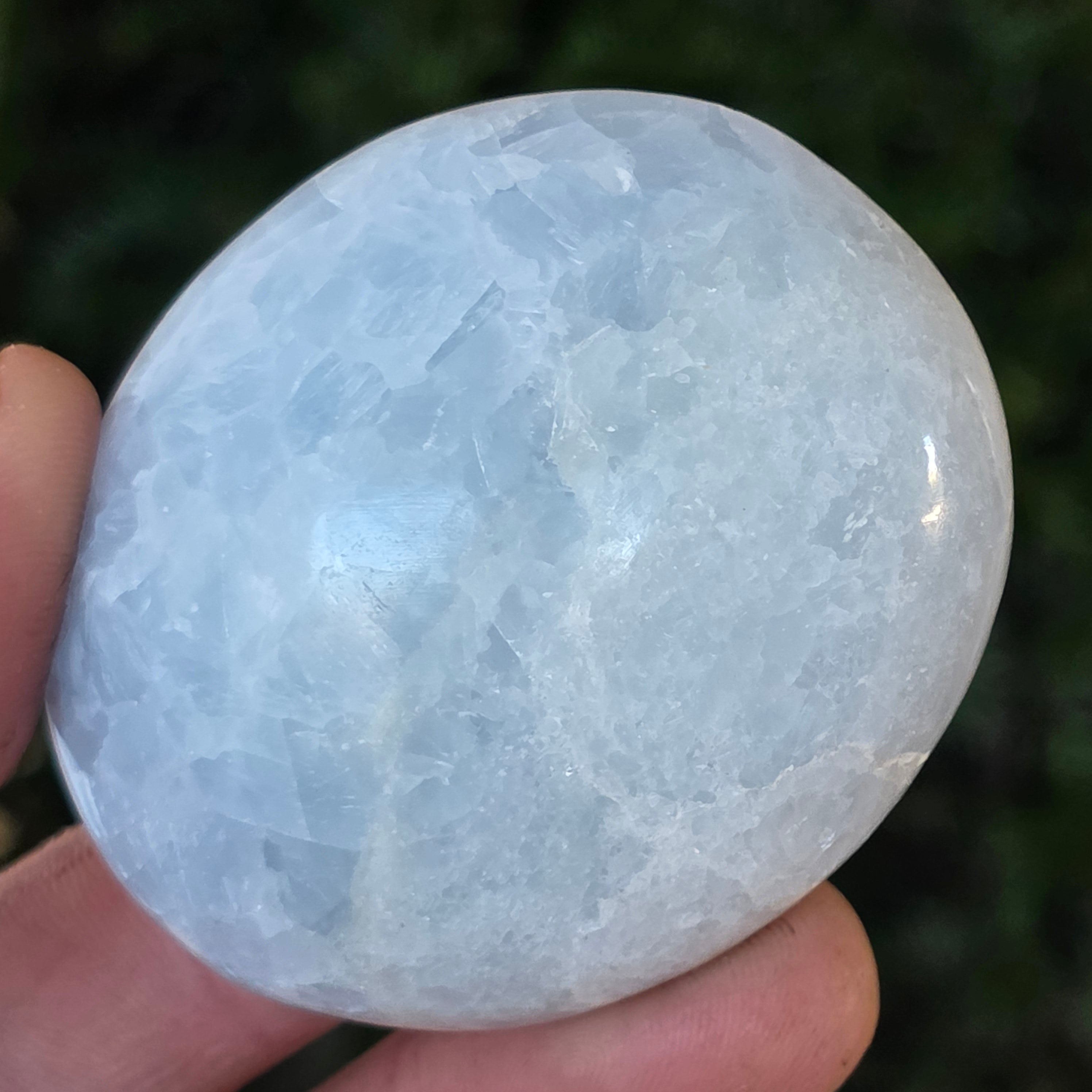 Handgehalten, dieses hier natürlicher Calcit-Palmenstein Es hilft Ihnen, sich zu zentrieren und Ihr inneres Gleichgewicht zu finden. Ideal zum Meditieren, Nachdenken oder als dekoratives Stück in einem Raum, der der Entspannung gewidmet ist, strahlt es eine ruhige, gelassene und reine Atmosphäre aus.