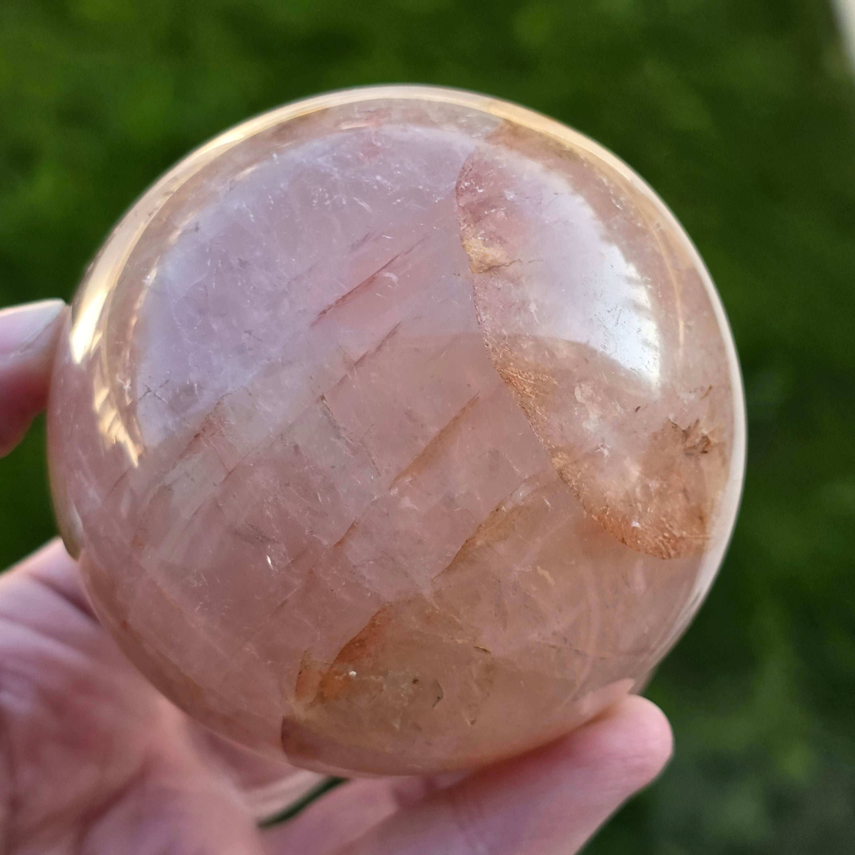 Beschreibung - Rotkristall-Hämatit-Quarz-Sphäre aus Madagaskar m2, Feuerquarz