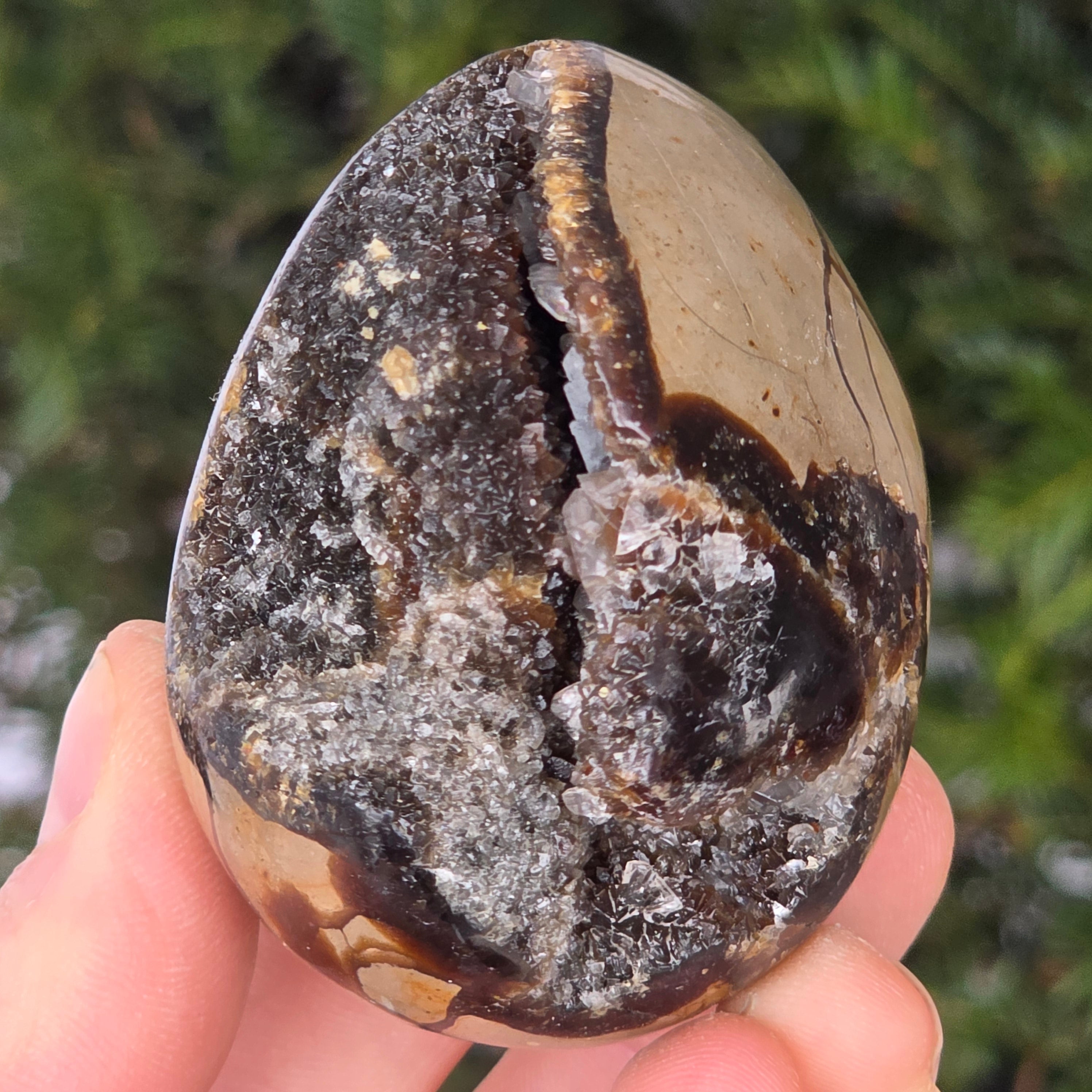 Septaria besteht aus Calcit, Limonit, Gips und Baryt, Mineralien, die in diesem Stein ein einzigartiges Spiel bilden und ihm ein besonderes Aussehen verleihen.