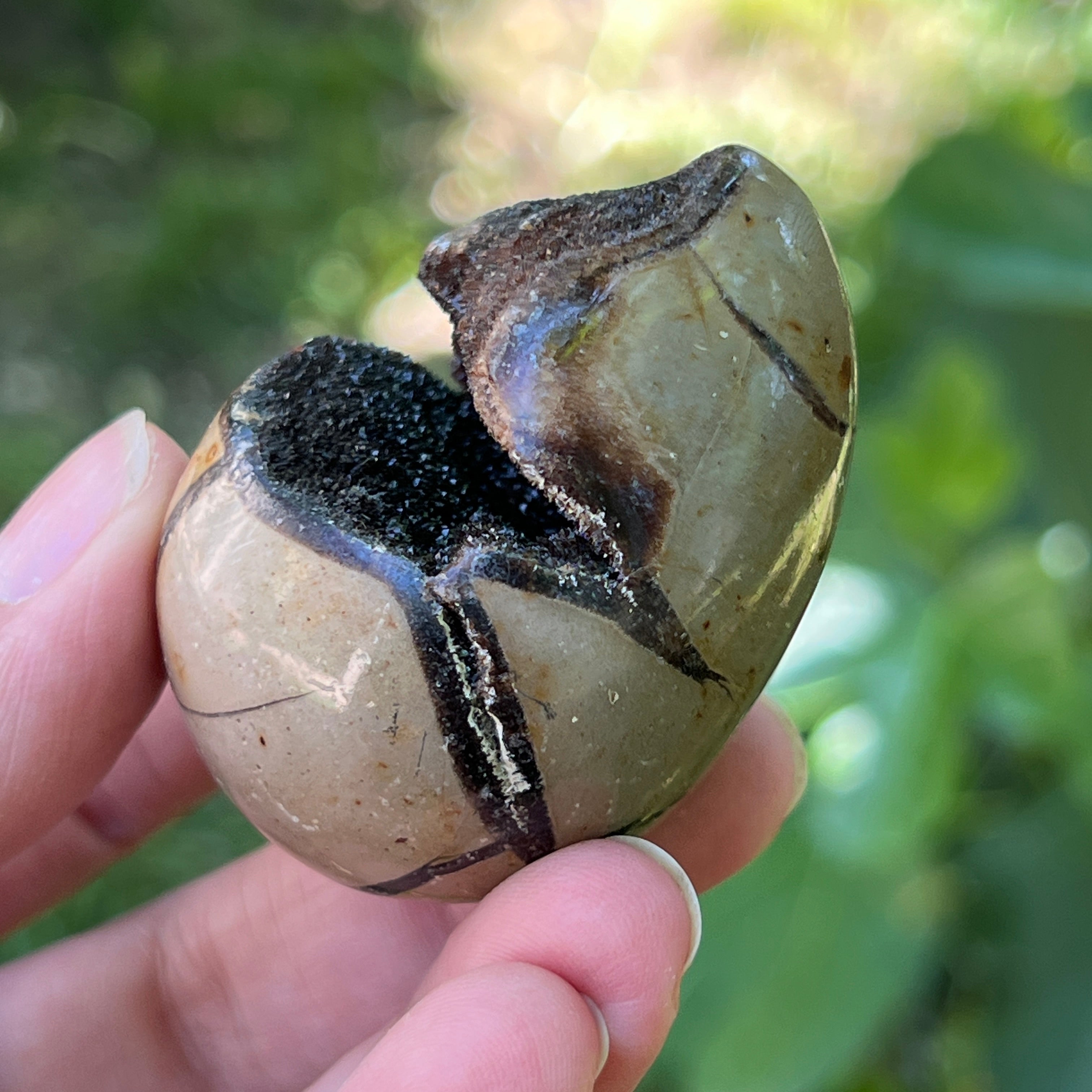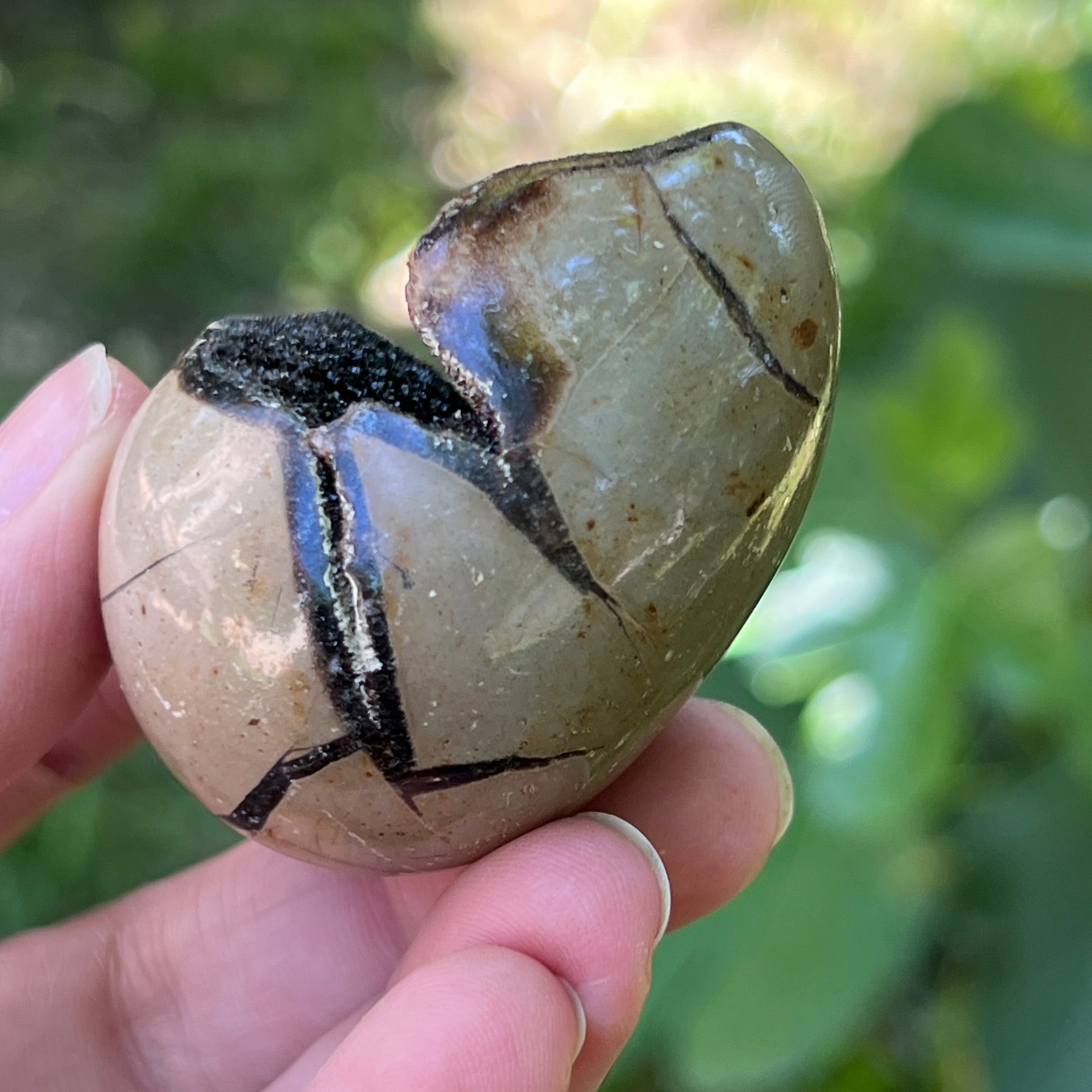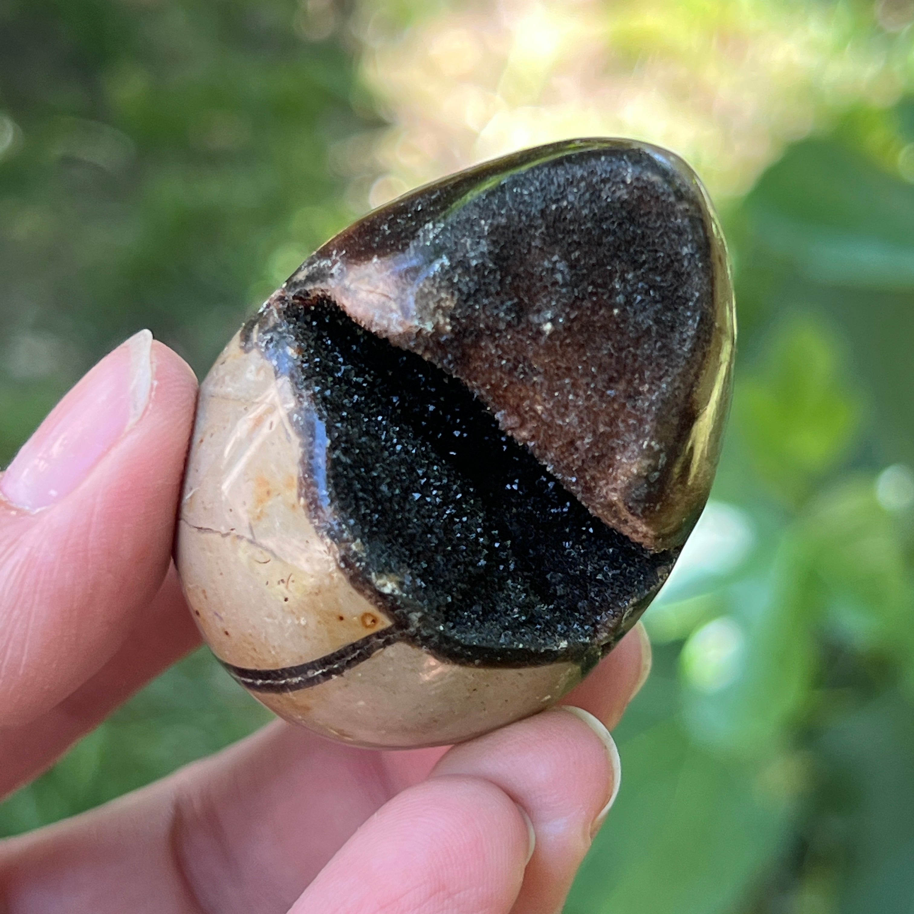 Septaria besteht aus Calcit, Limonit, Gips und Baritin, Mineralien, die in diesem Stein ein einzigartiges Spiel bilden und ihm einen besonderen Look verleihen.