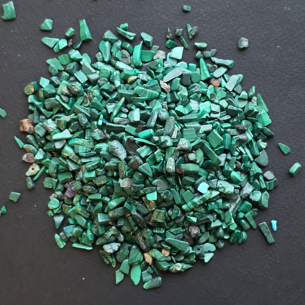 Tip: chipsuri malachit natural (pietre mici șlefuite, neregulate)