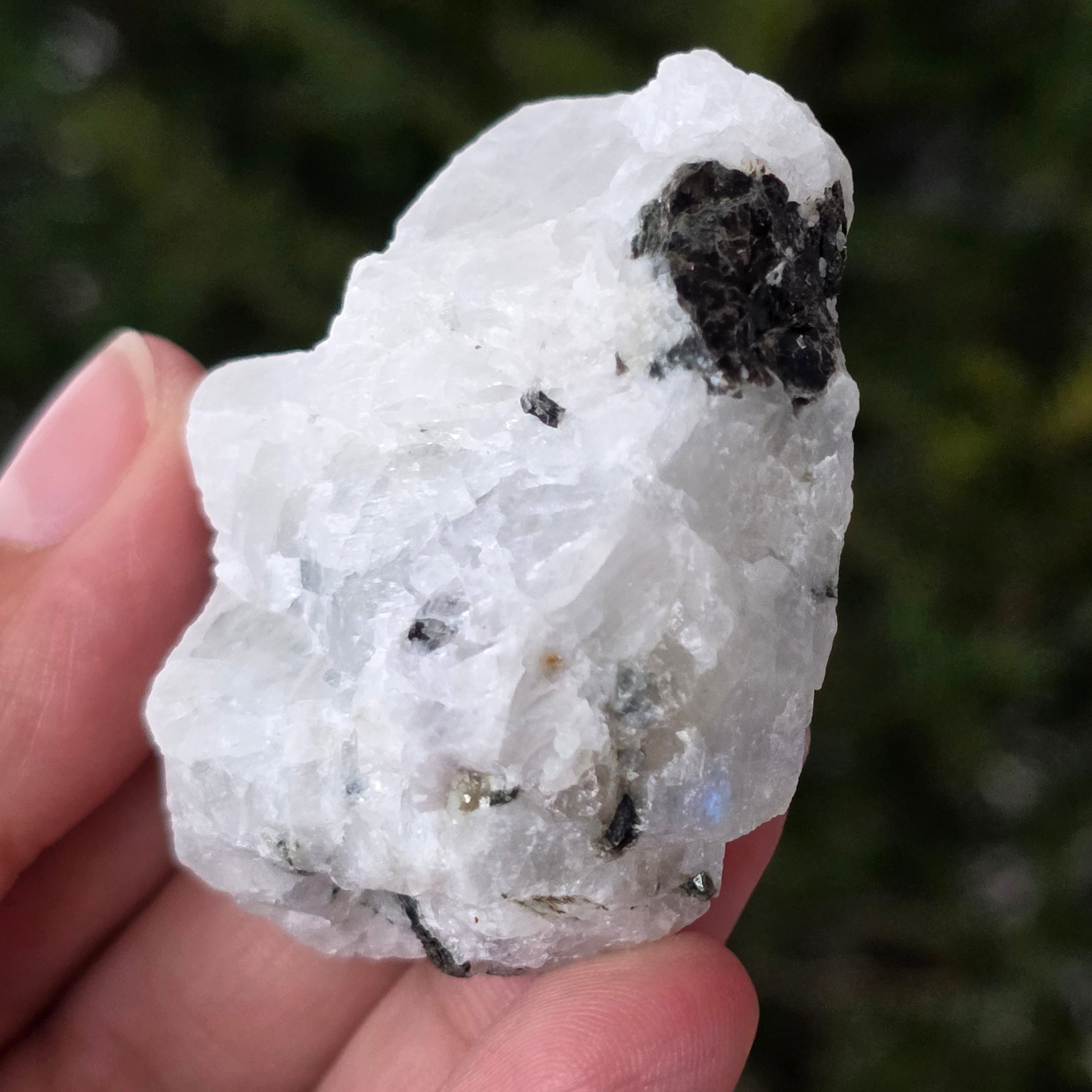 Rezensionen- Mondstein mit Turmalin-Einsätzen - Rohstein m11