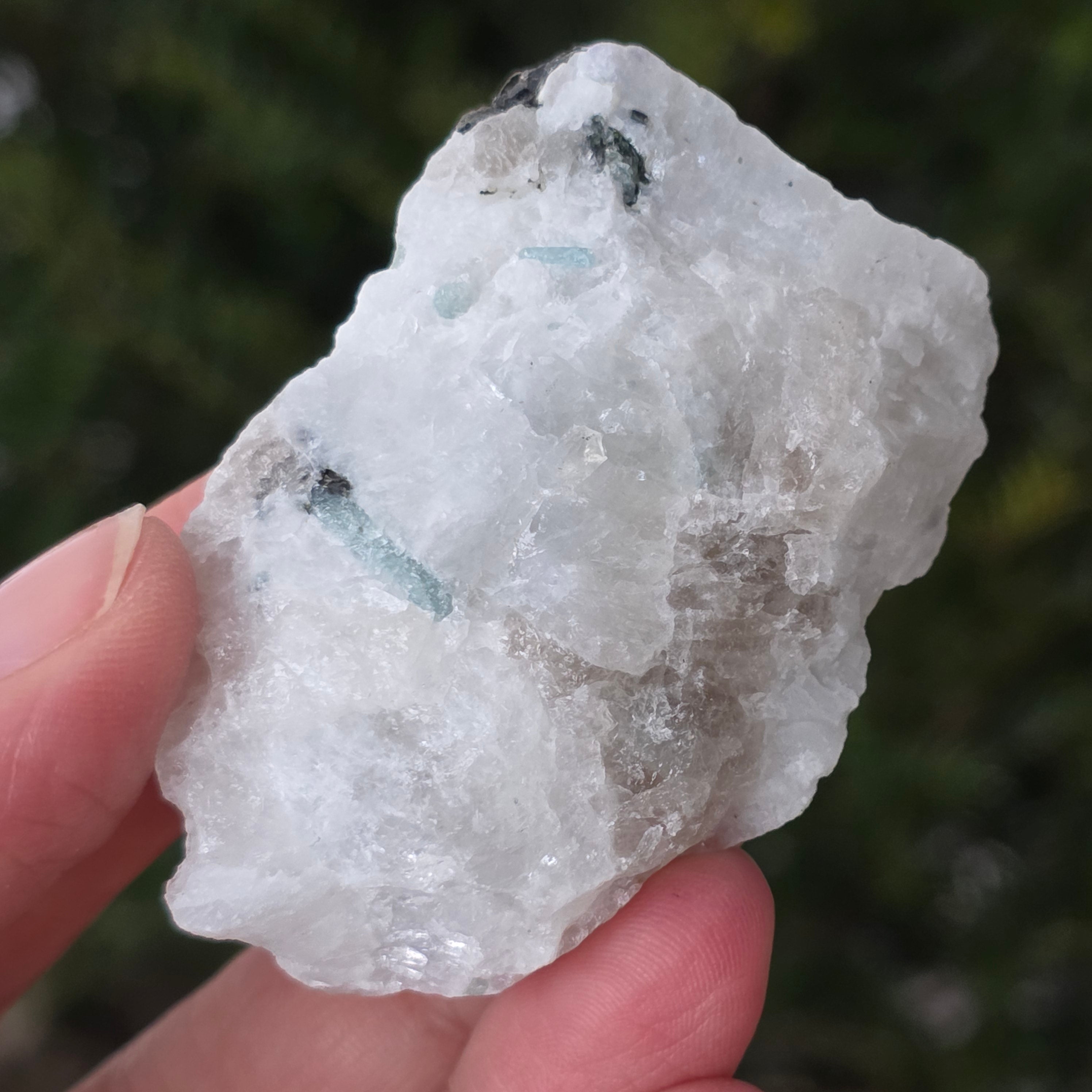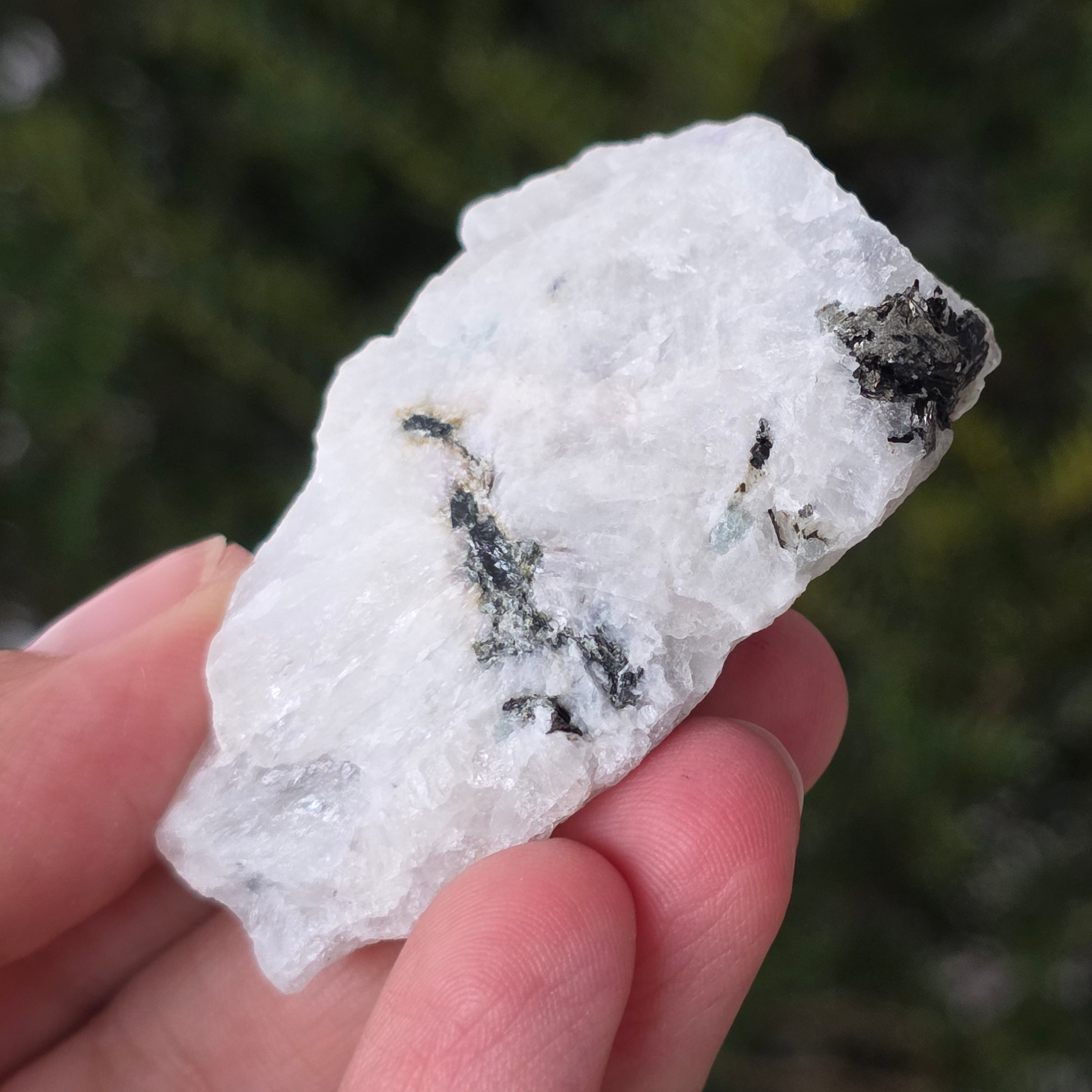 Mondstein mit Turmalin-Einsätzen - Rohstein m7, Größe: 5,5 * 3,5 * 1,8 cm