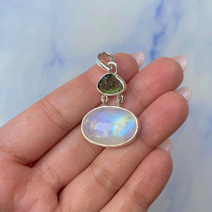 Mondstein-Moldavit-Silberanhänger | Modell 7