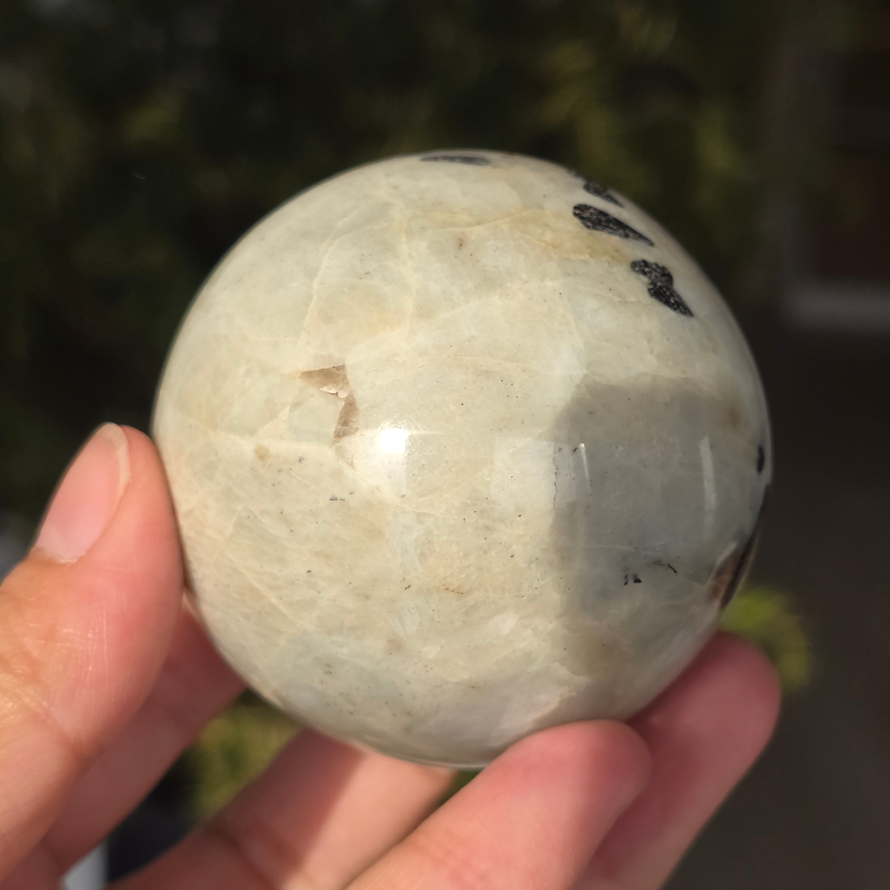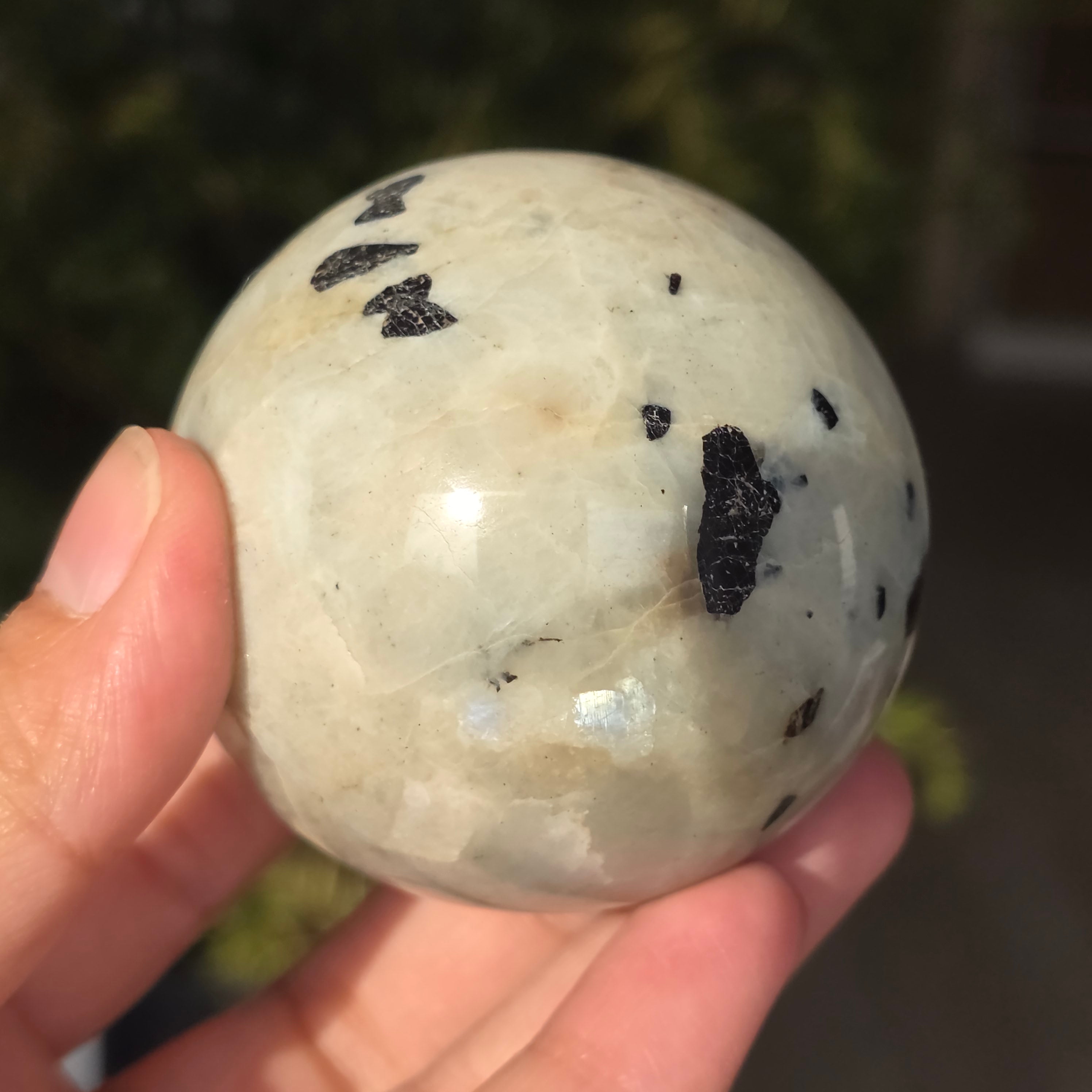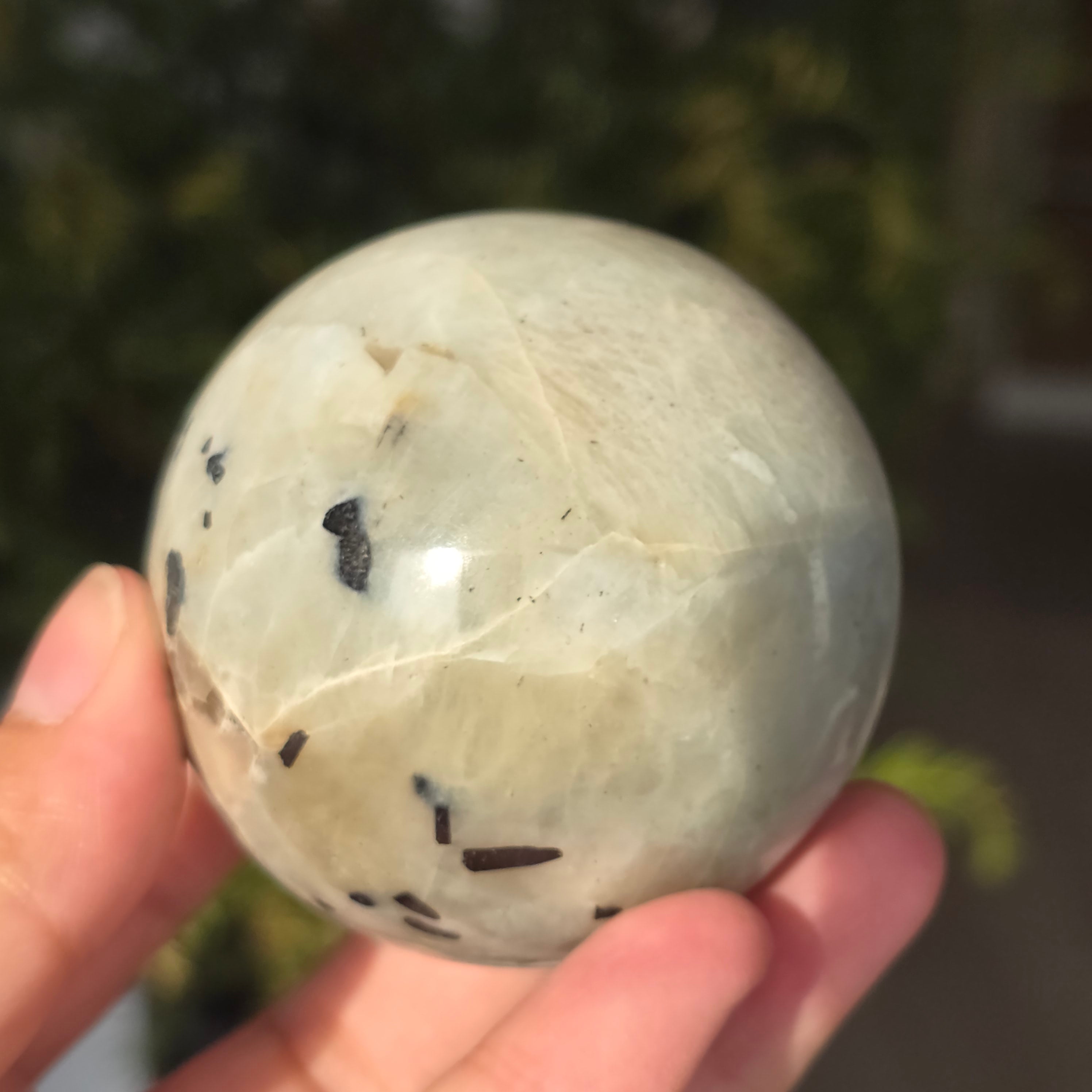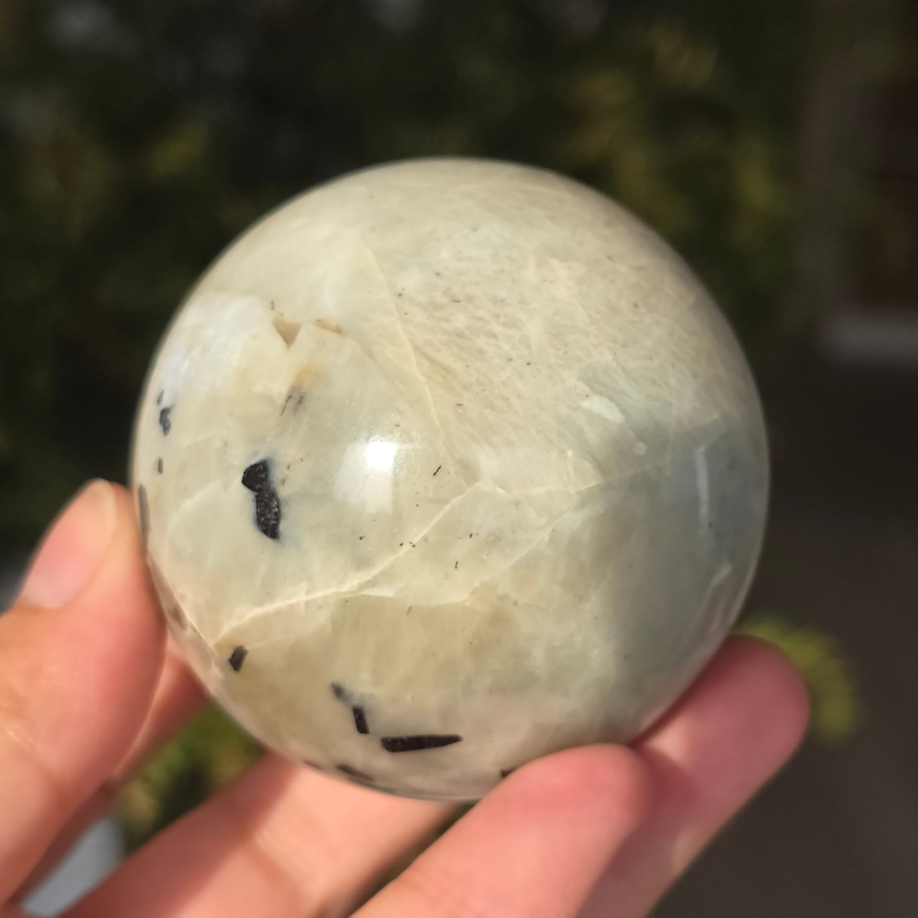 Bewertungen - Mondstein-Sphäre mit Garnierit | Modell 4