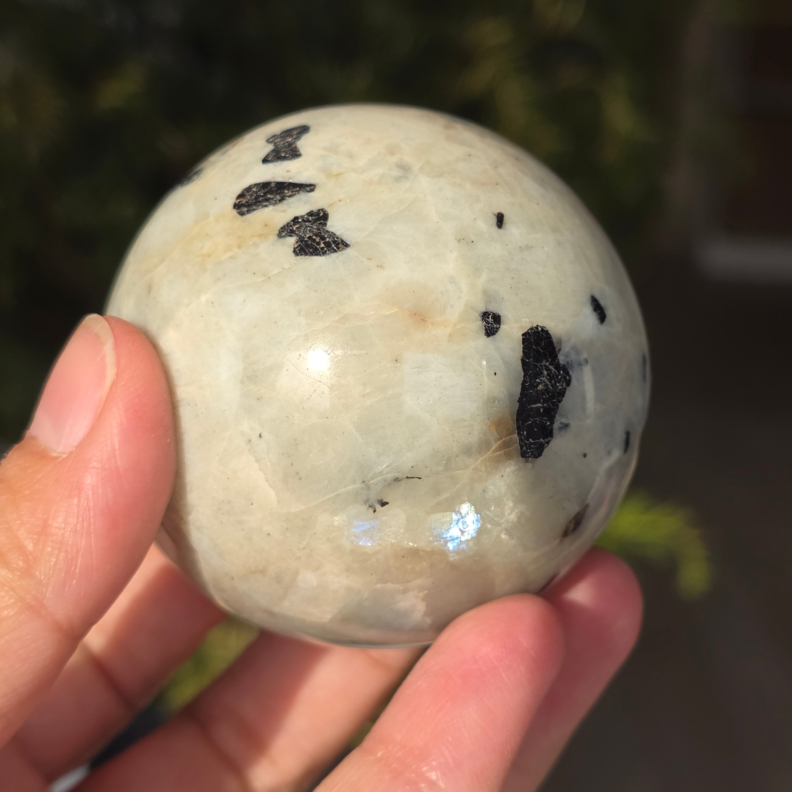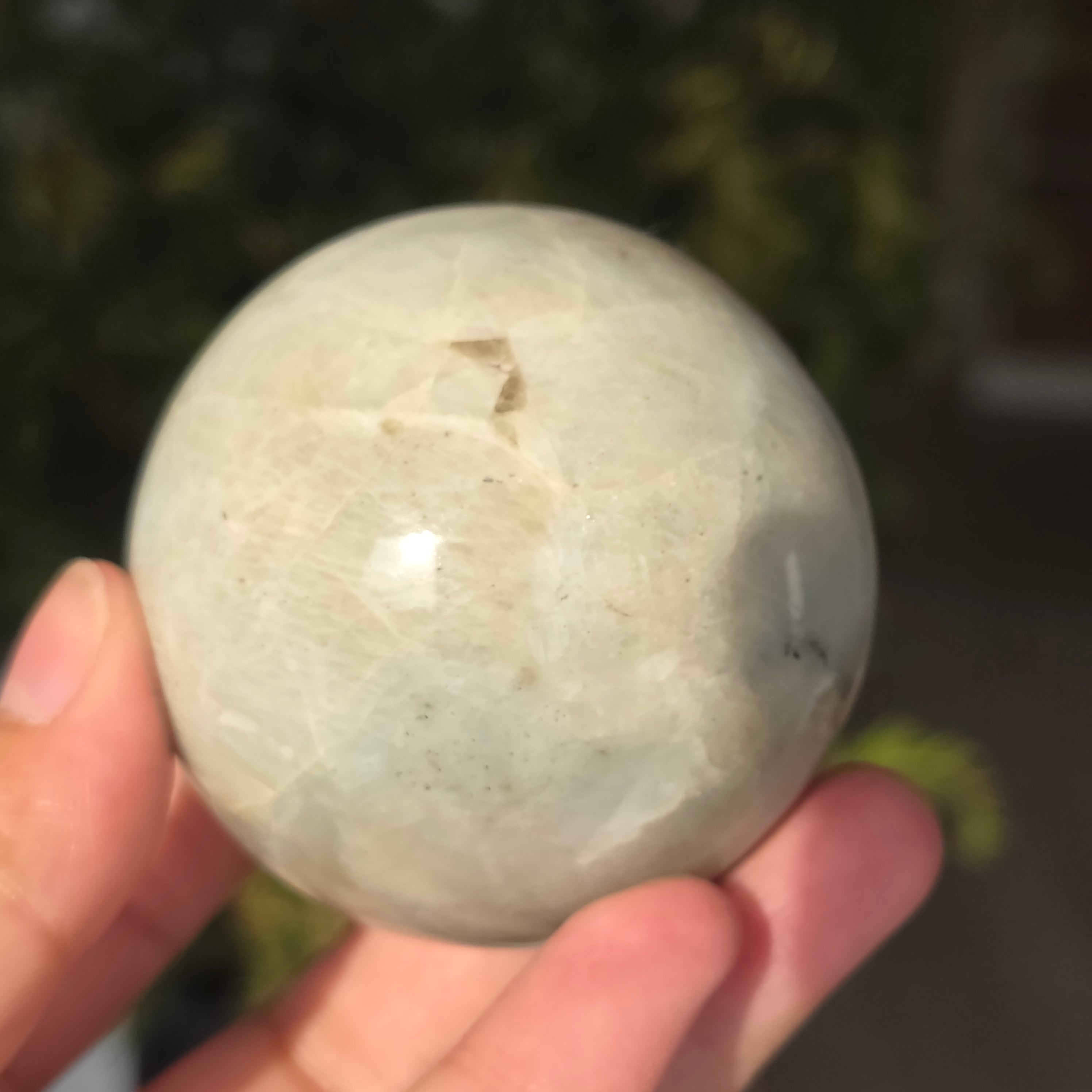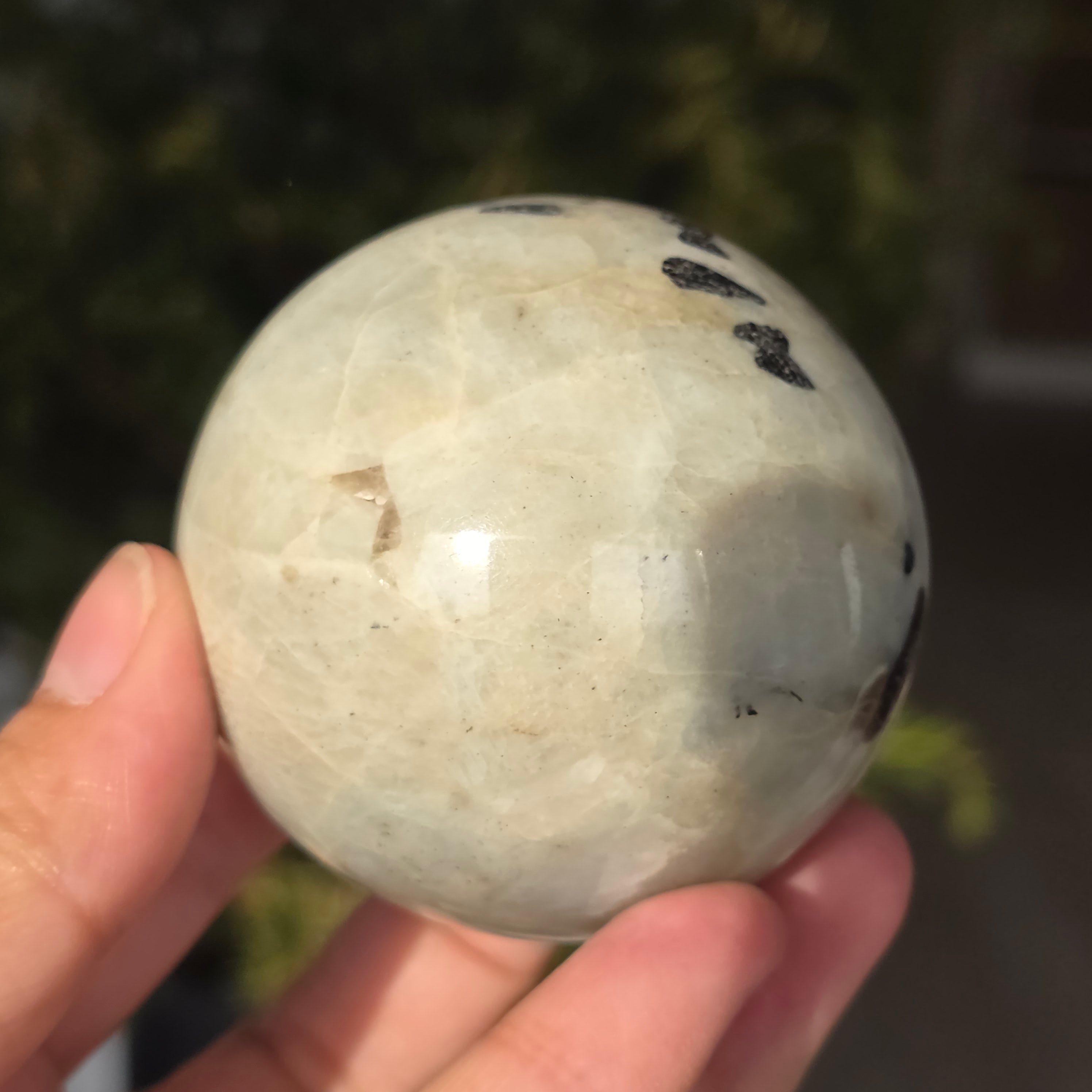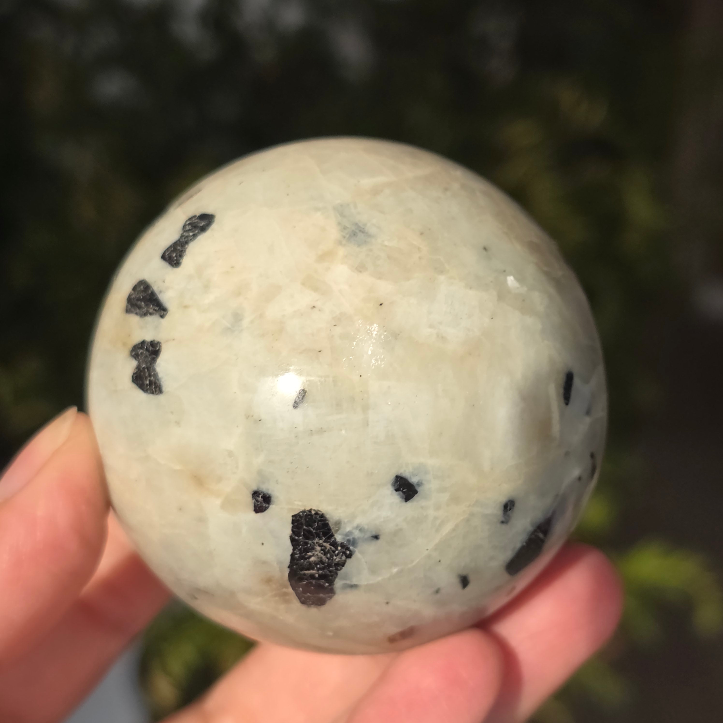 Bewertungen - Mondstein-Sphäre mit Garnierit | Modell 4