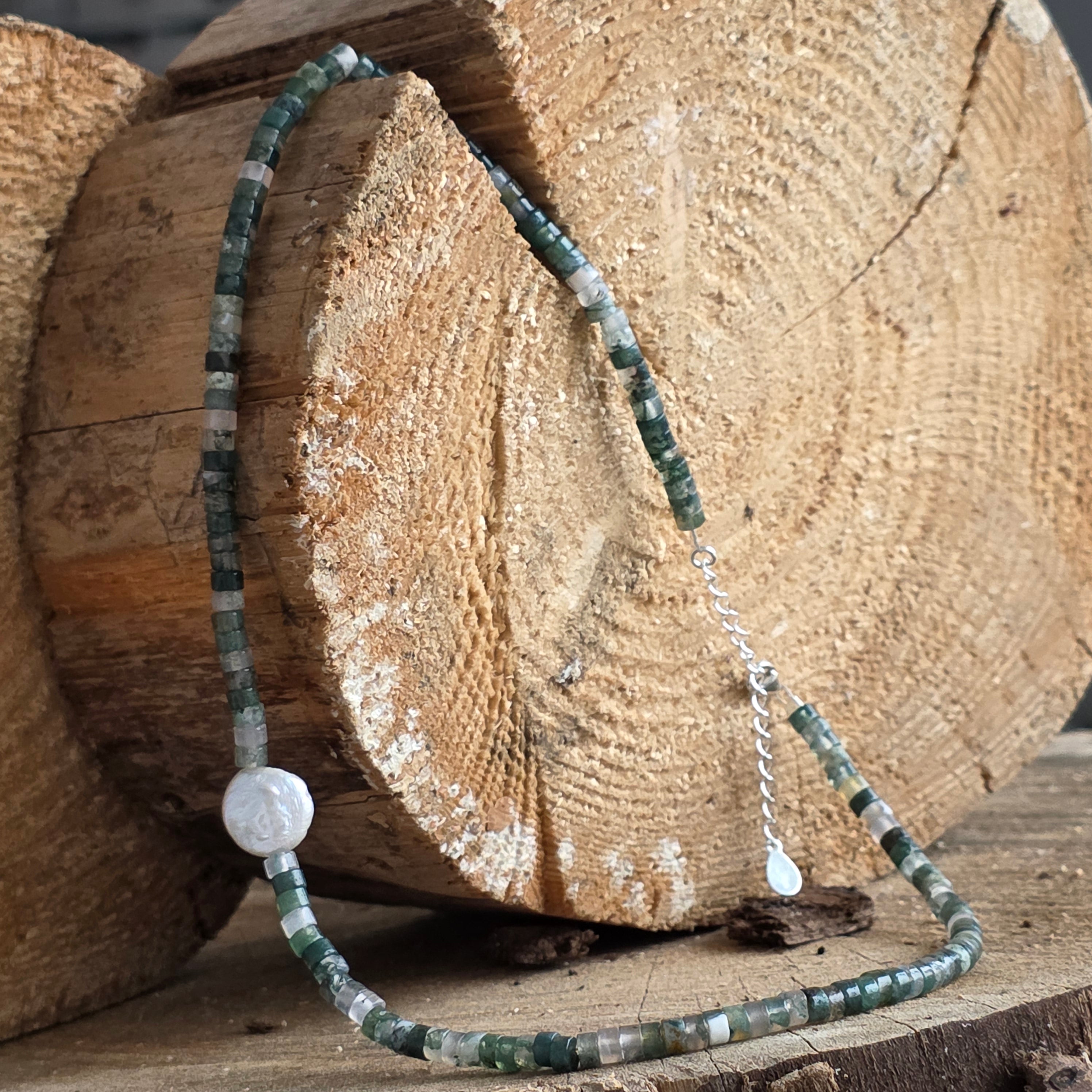 Eine Halskette, die Natürlichkeit und Eleganz perfekt verbindet. Der grüne Aventurin, mit seinen durchscheinenden Tönen und ruhiger Ausstrahlung, vermittelt eine Energie von Frische, Glück und stiller Zuversicht. Jede Tumbled-Perle 6 × 4 mm trägt die Einzigartigkeit des Steins, mit subtilen Glanzlichtern von natürlichem Glimmer, die das Licht wie taugetränkte Blätter einfangen.