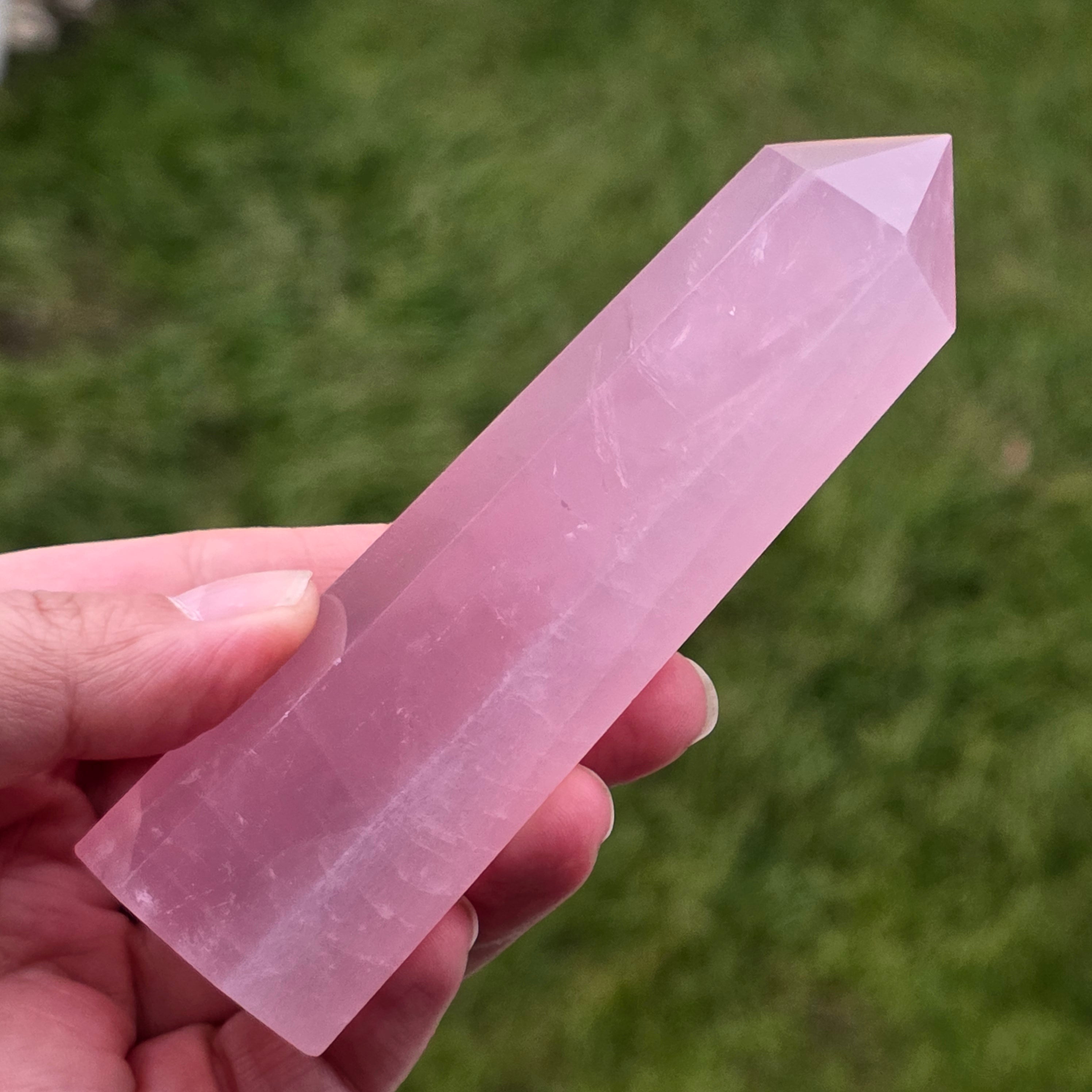 Namibia Rosenquarz Obelisk Modell 6, Größe: 10 * 3,5 * 3 cm