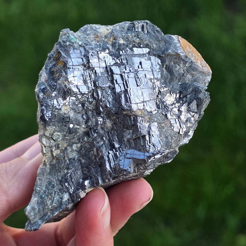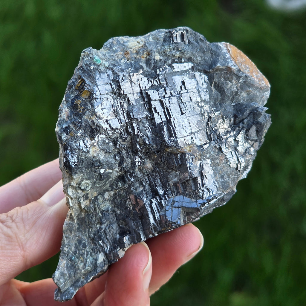 Silberglanz ist ein spektakuläres Mineral, das für seinen intensiven metallischen Glanz und seine perfekte kubische Struktur bekannt ist. Dieses Bleisulfid (PbS) ist eines der dichtesten natürlich vorkommenden Mineralien und kann wertvolle Spuren von Silber enthalten.