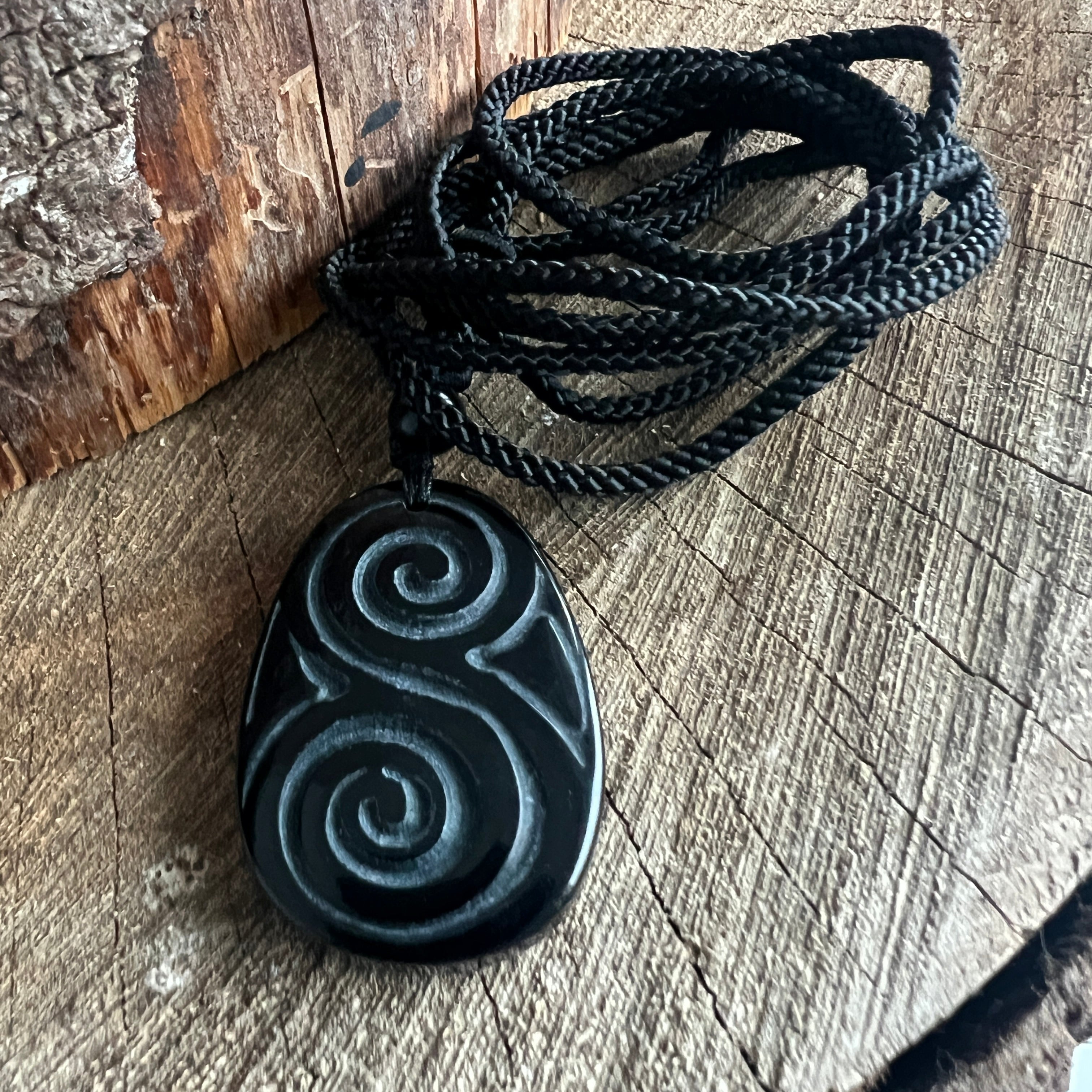Natürliche Obsidian-Anhänger-Halskette | Triskelion Keltische Spirale m2