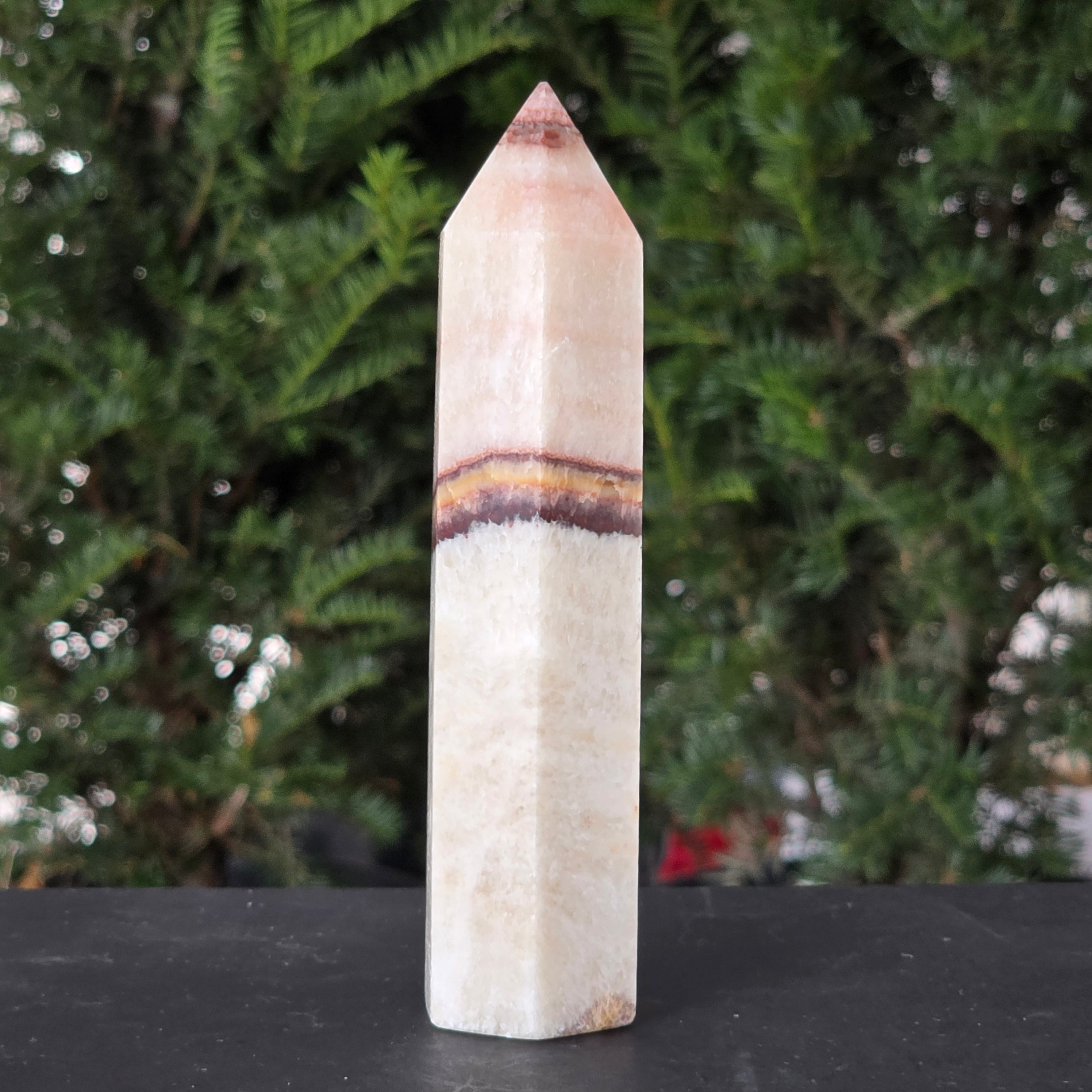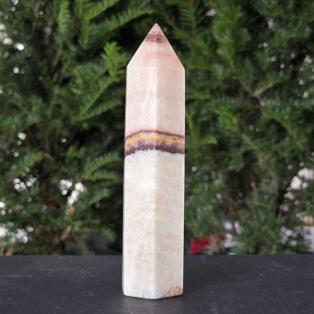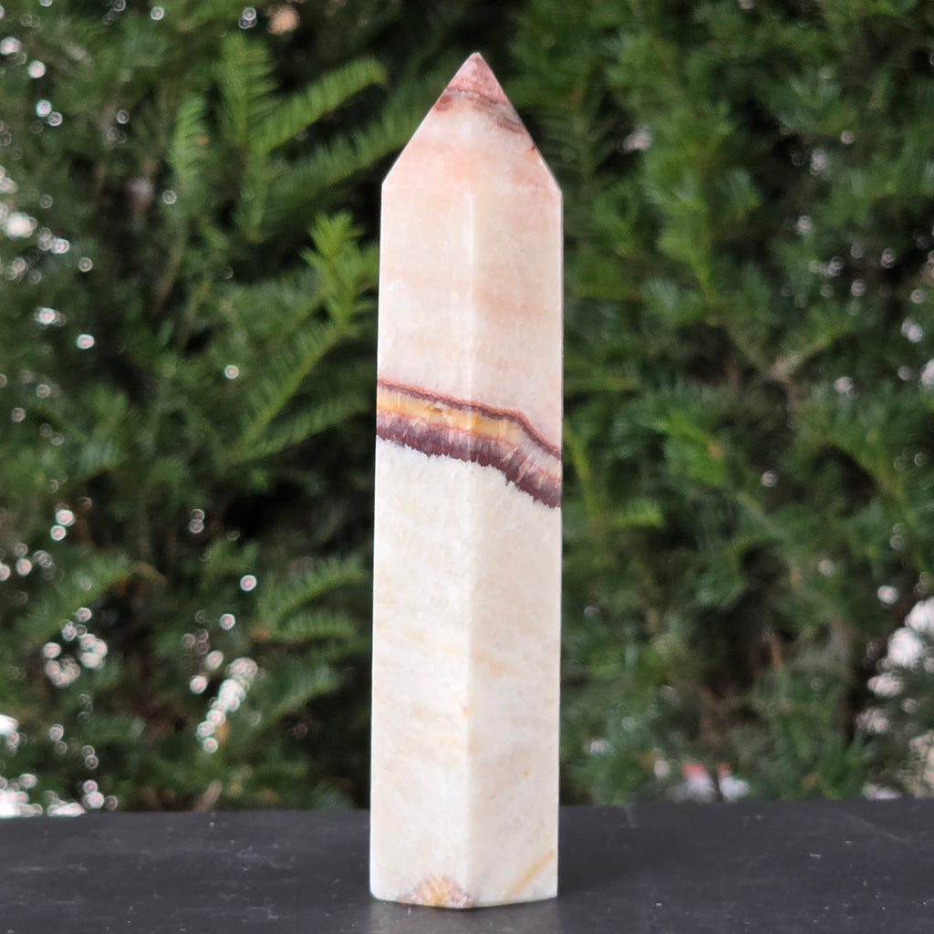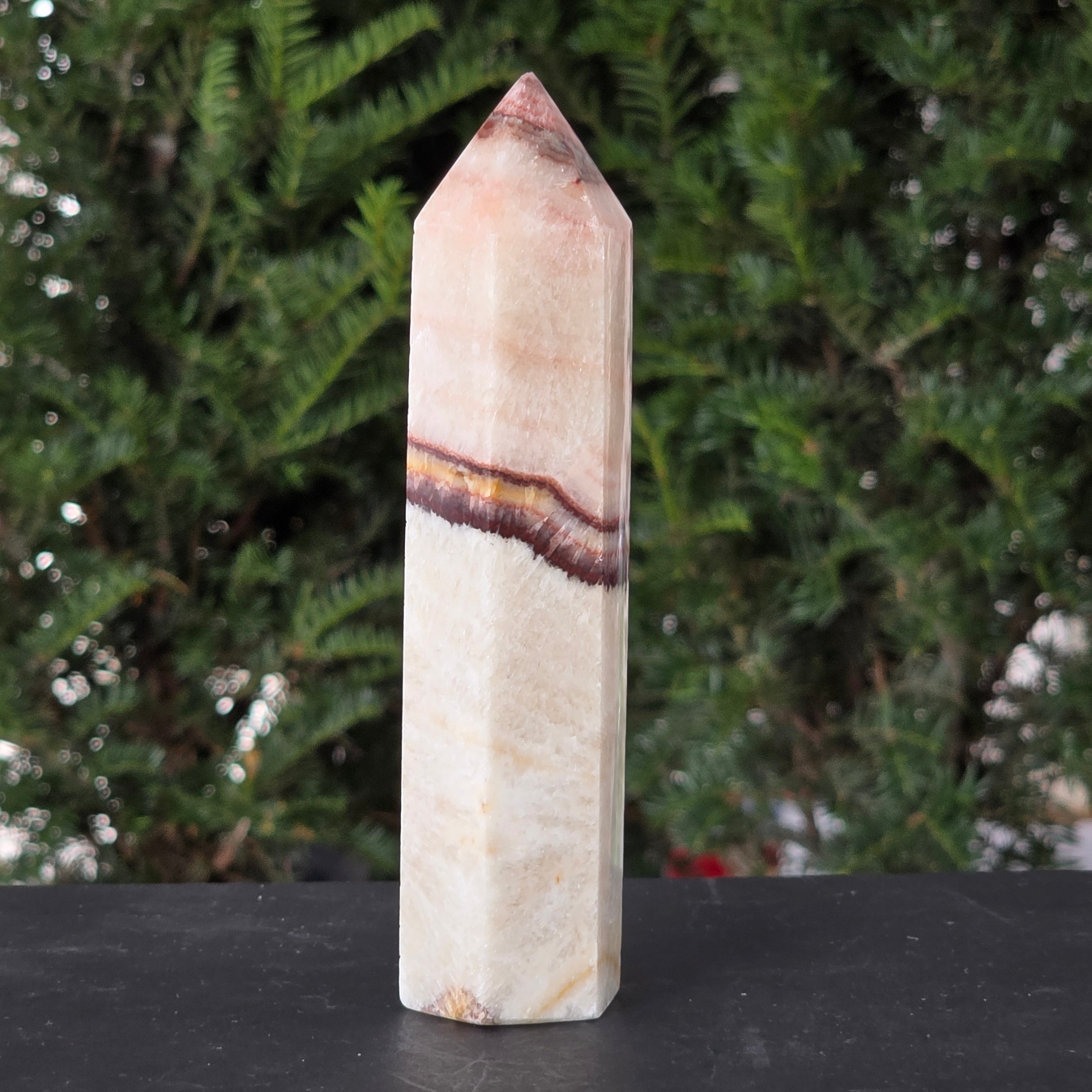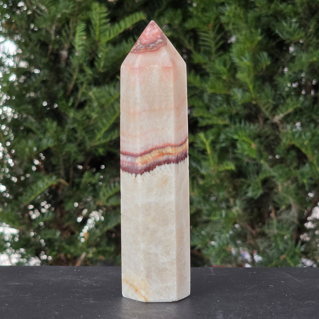 Această piatră fascinantă îmbină onixul portocaliu cu vene delicate de calcit, în straturi care par pictate de timp. Nuanțele vibrante de portocaliu, miere și chihlimbar pulsează cu energia vieții și aduc o notă de vitalitate oricărui spațiu. Este o piesă care trezește simțurile și inspiră creativitatea, dar păstrează în același timp un echilibru profund, ancorat în energia pământului.