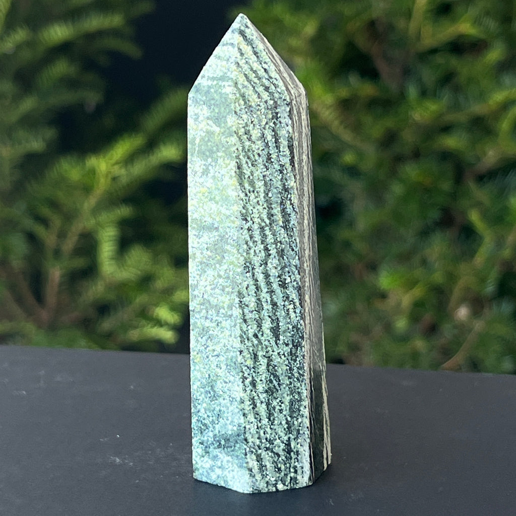 Modelul dungat al obeliscului reflectă vizual mișcarea șerpuitoare a energiei interioare, făcând din această piesă nu doar un obiect decorativ, ci și un simbol al transformării și al echilibrului spiritual.