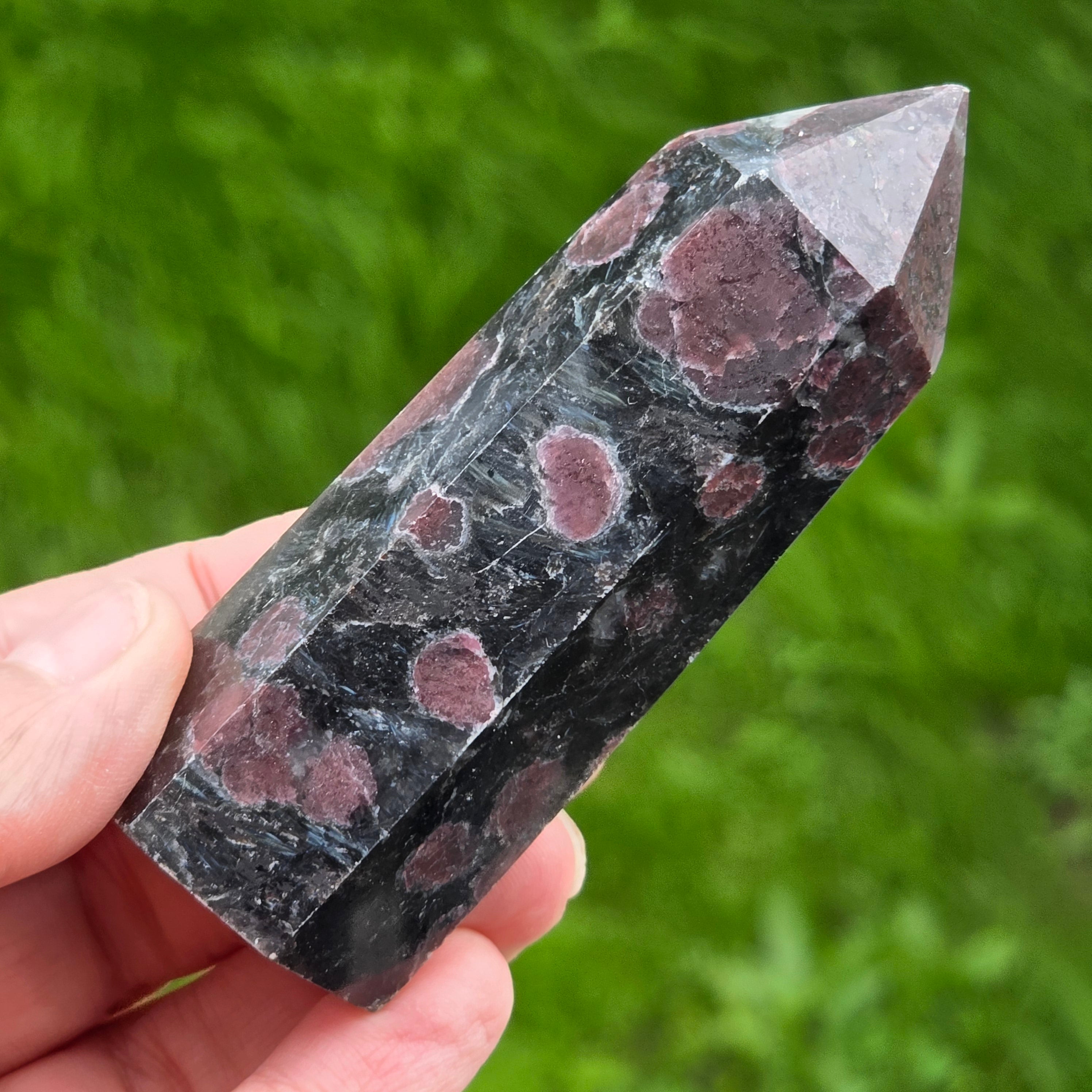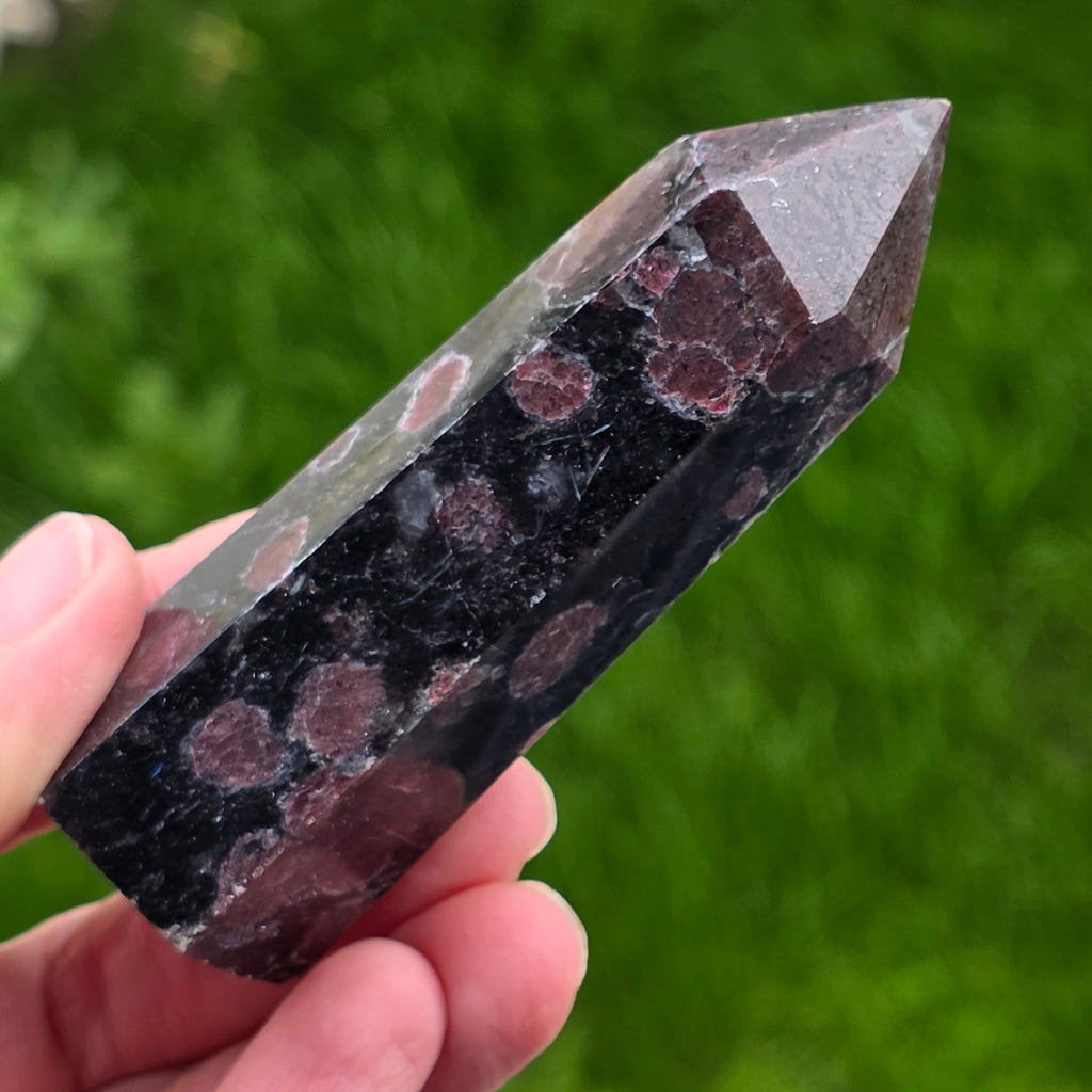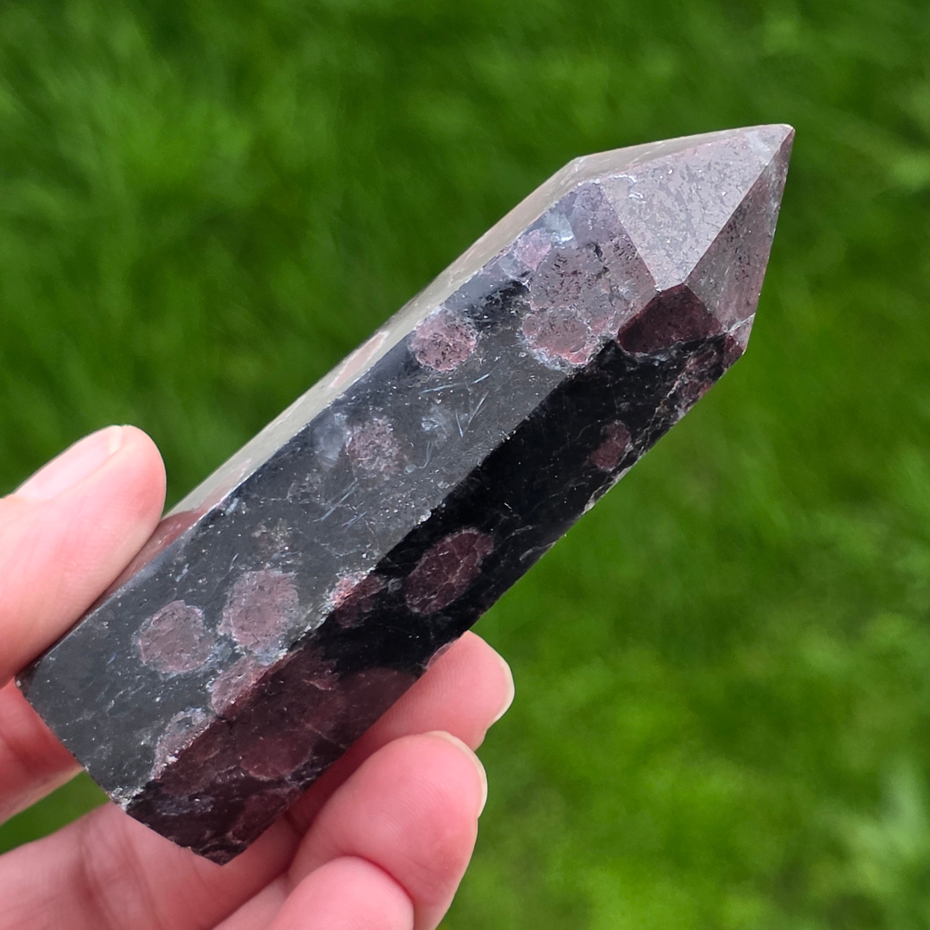 Obelisk aus schwarzem Turmalin mit Granat Modell 21