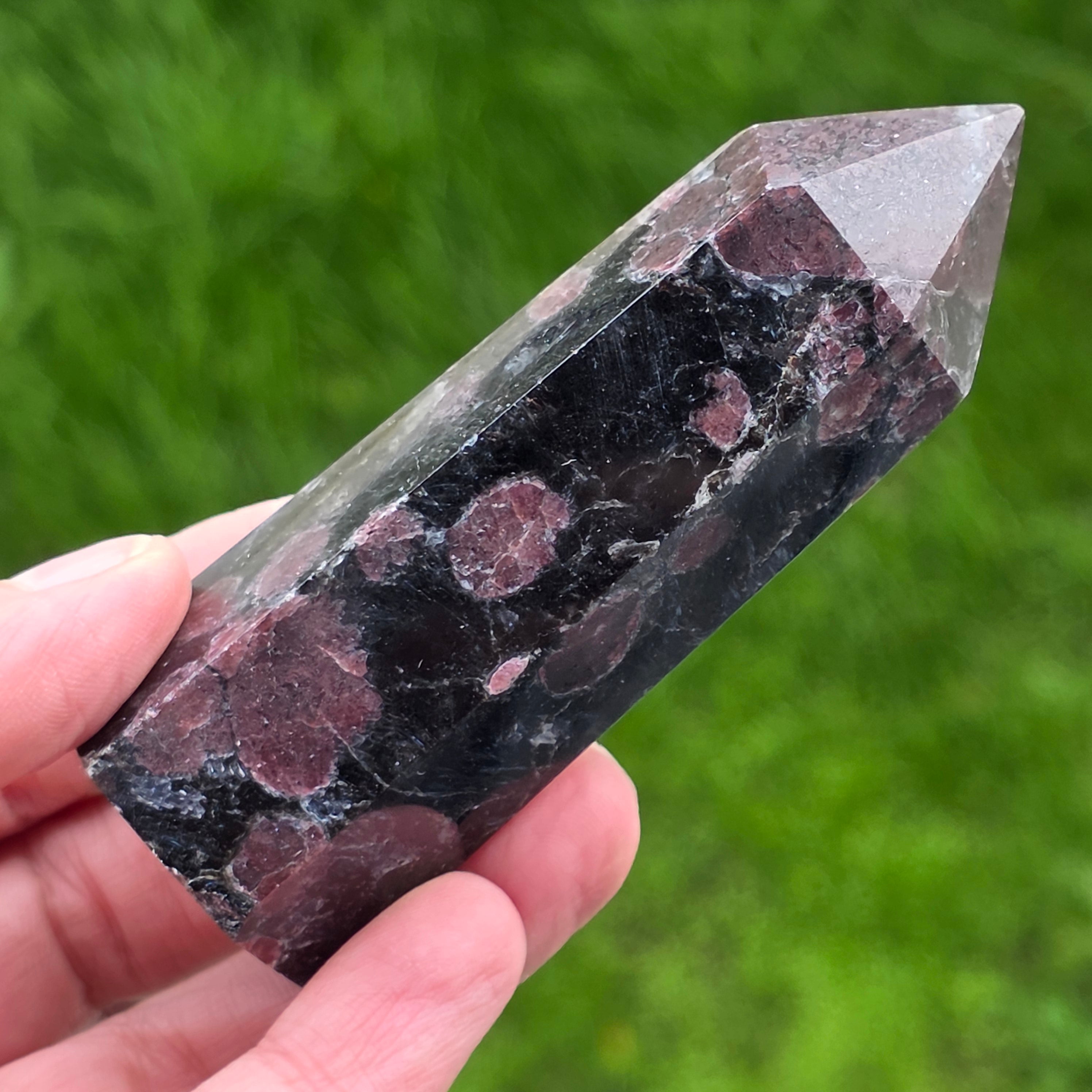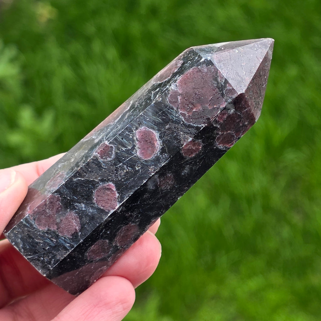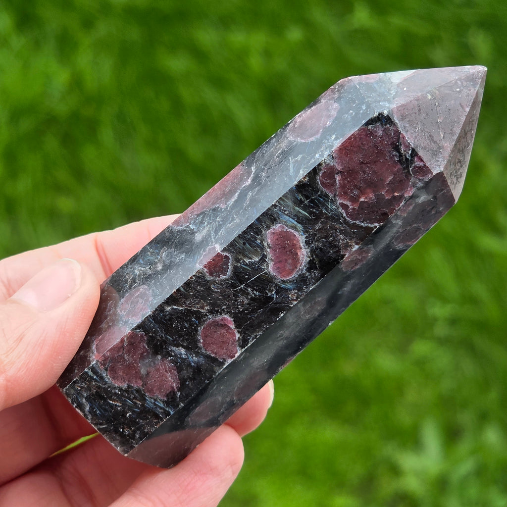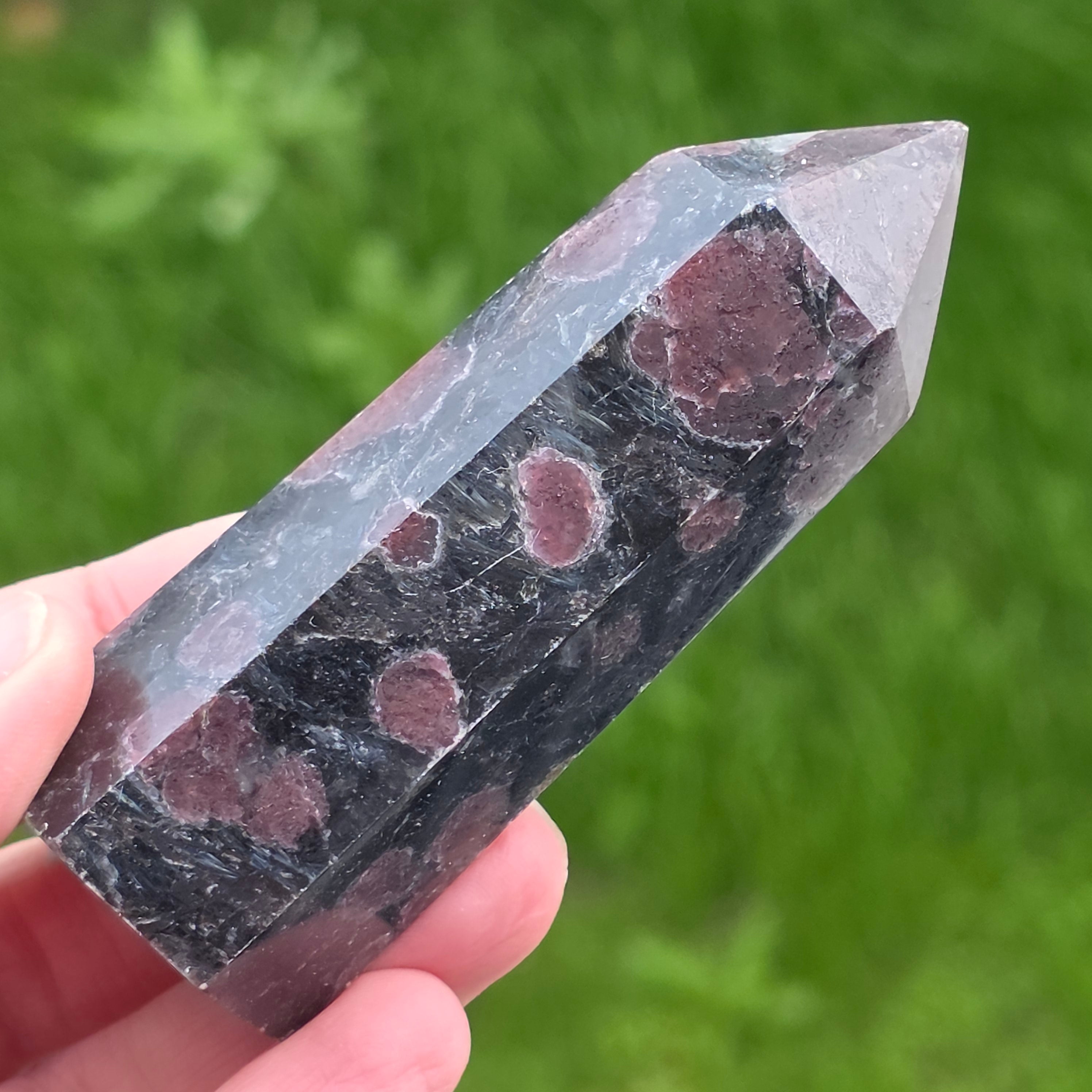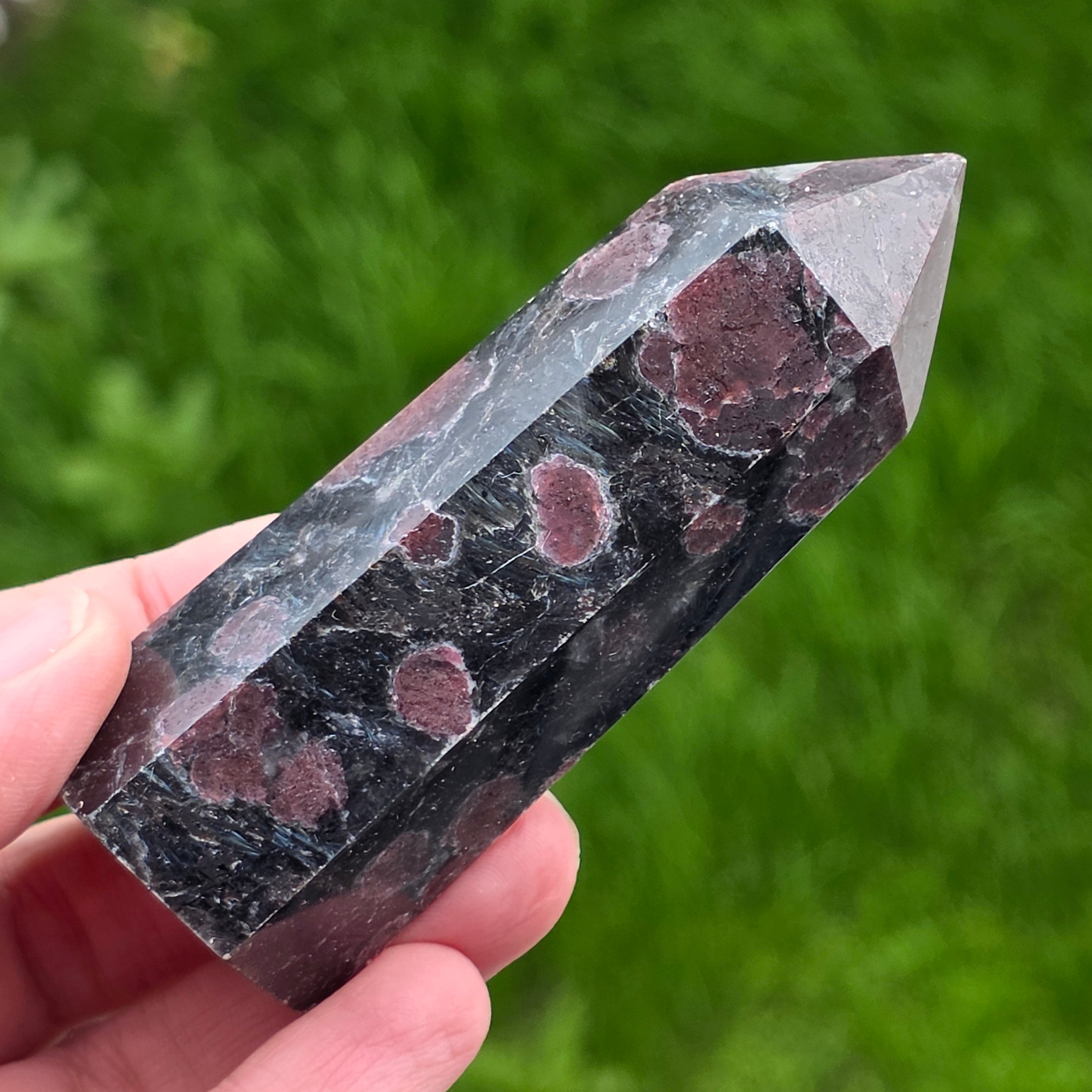 Rezensionen- Obelisk aus schwarzem Turmalin mit Granat Modell 21