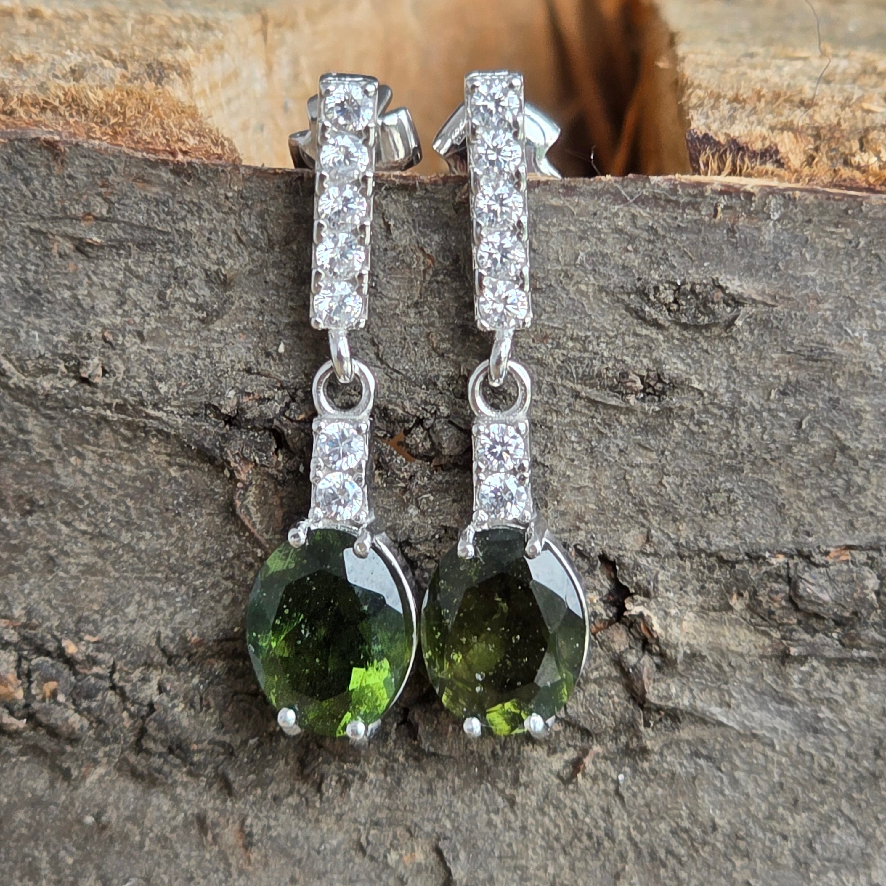 Diese eleganten Ohrringe kombinieren die einzigartige Schönheit der natürlichen Moldat mit der diskreten Brillanz der kubischen Zirkonia, die in einem raffinierten 925 -Silber -Design montiert ist. Die intensiven Grünen von Moldavit mit tiefen und mysteriösen Reflexionen werden durch die Klarheit weißer Steine hervorgehoben, die einen raffinierten Kontrast erzeugen.
