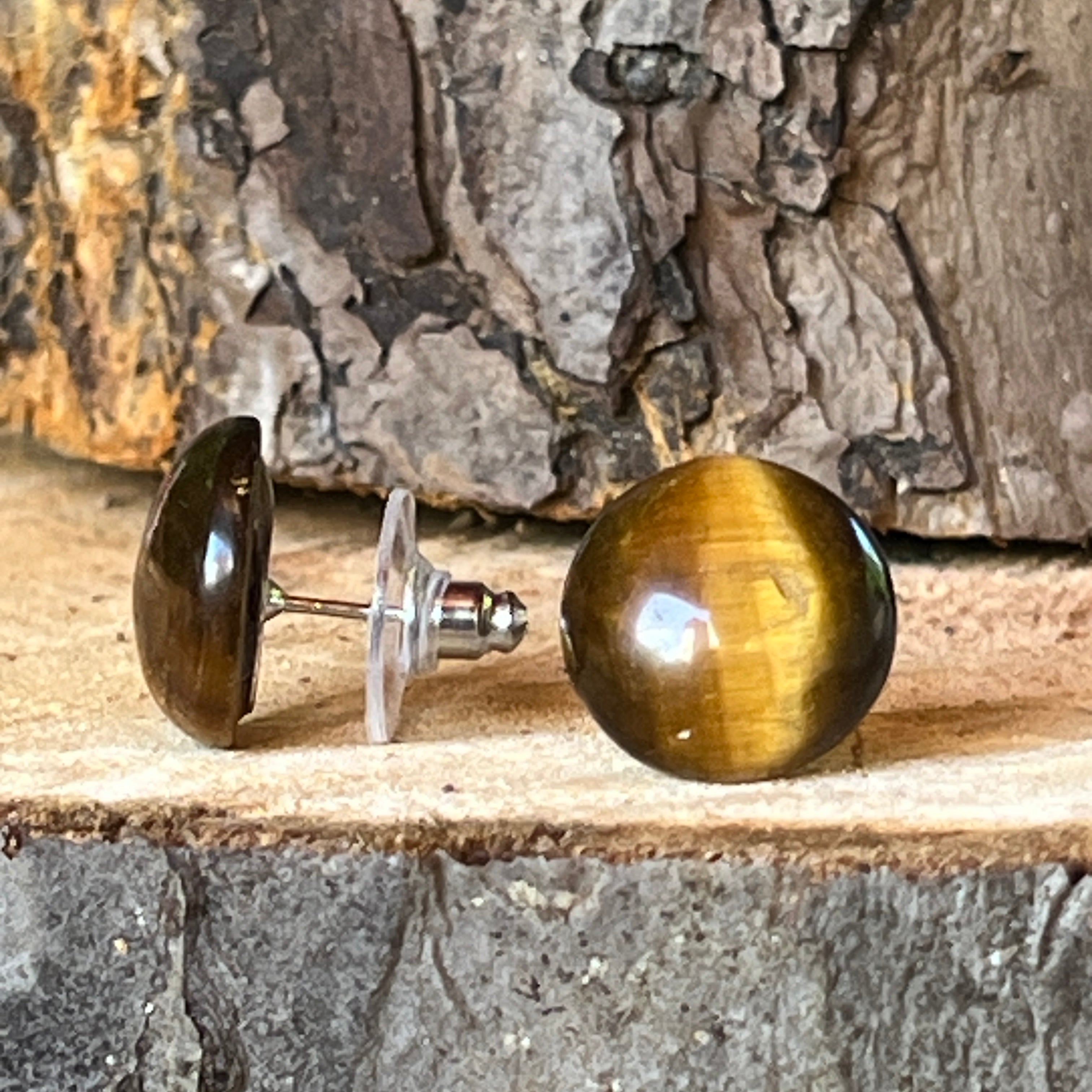 Beschreibung - Ohrringe Studi Semispheric Tiger Eyes 15-16 mm