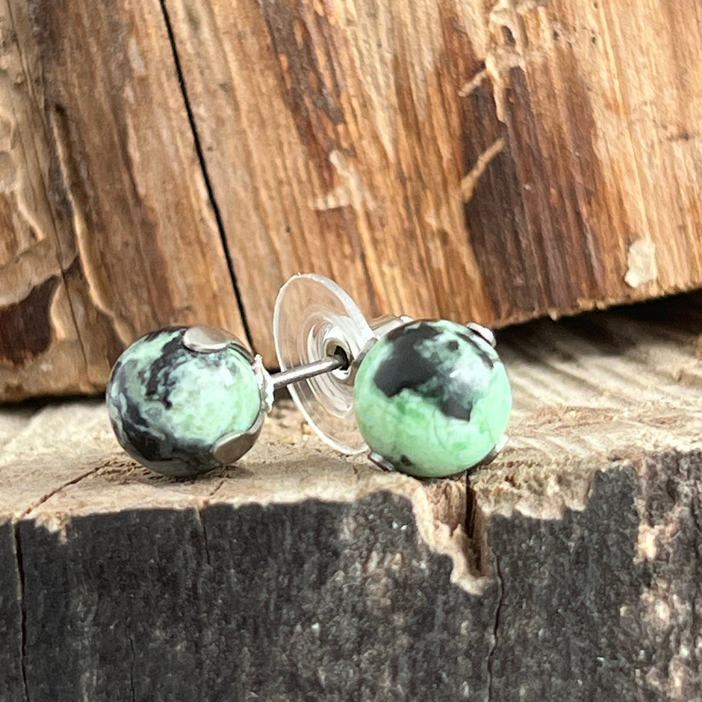 Wählen Sie diese Stud-Ohrringe aus natürlichem Variscit mit 8 mm , um jeden Tag einen Hauch von Frieden, Frische und Klarheit zu bringen. Feiner Schmuck, der Ruhe, Eleganz und Natürlichkeit ausstrahlt.