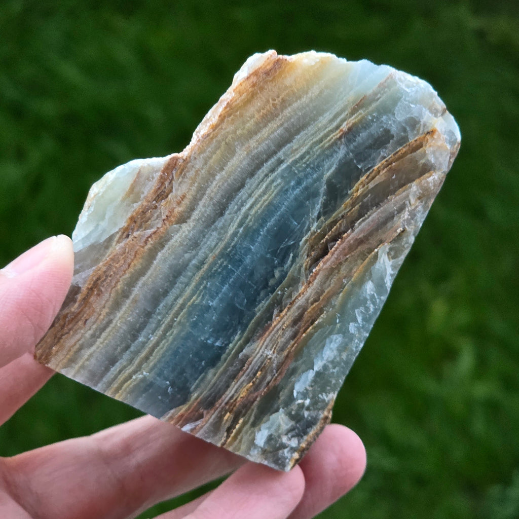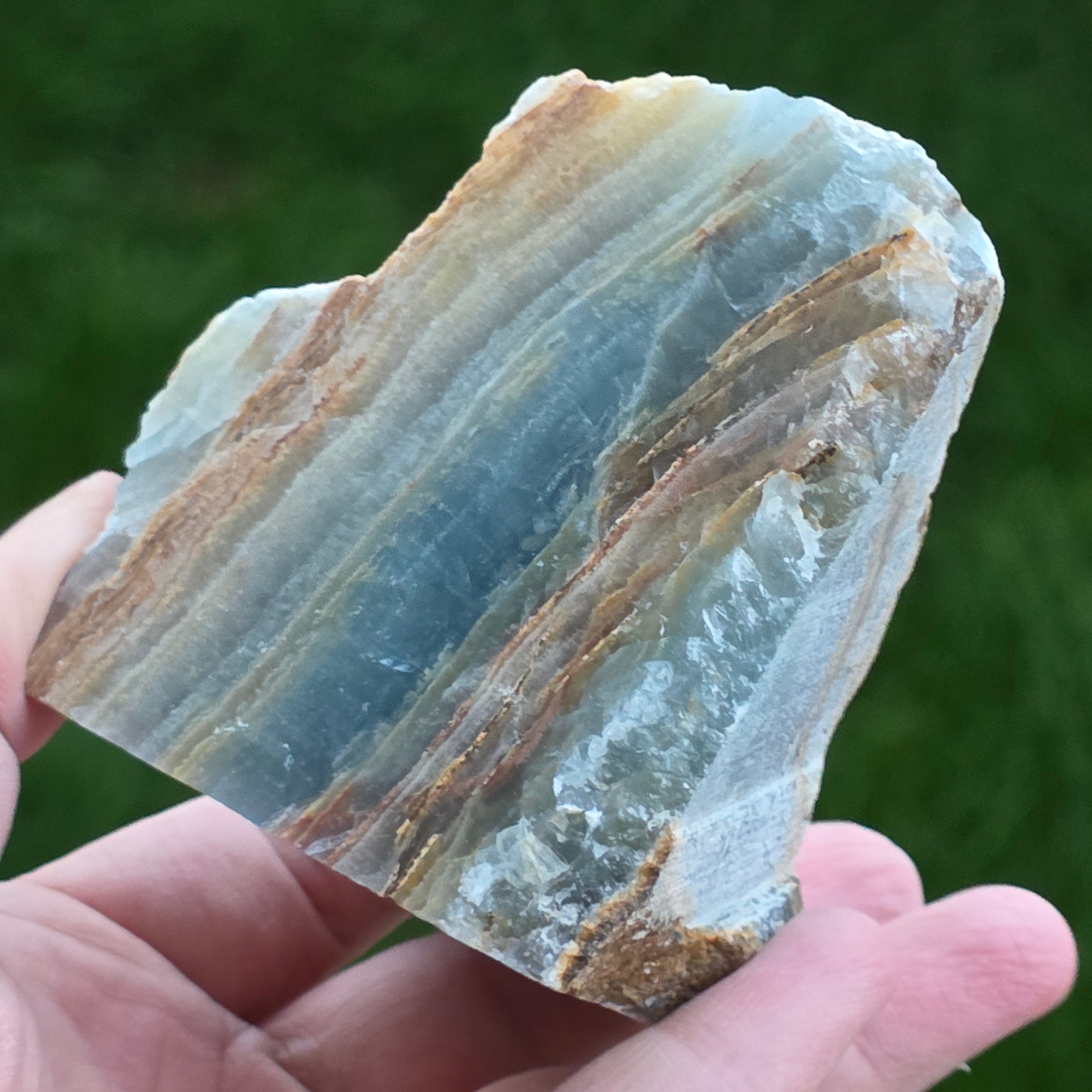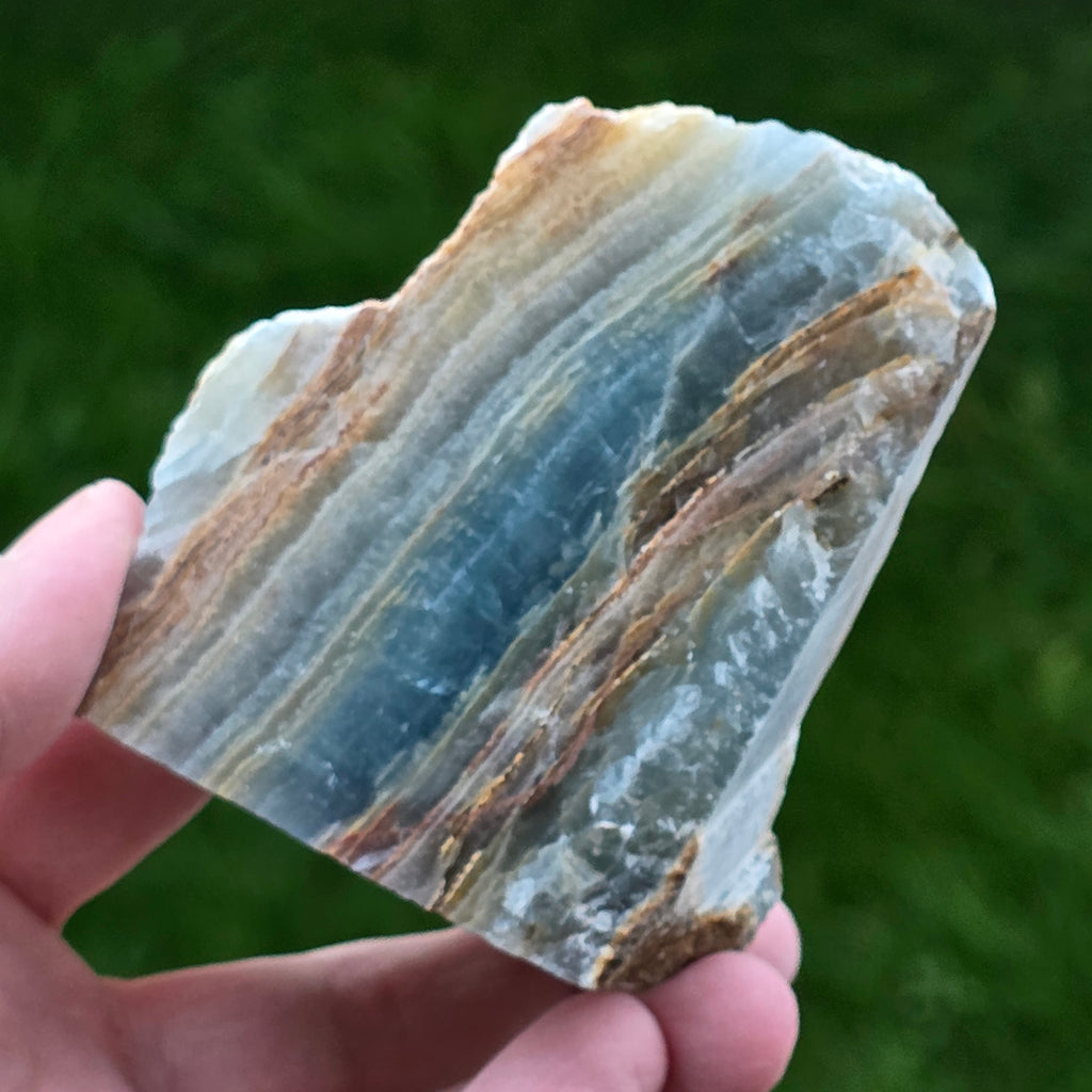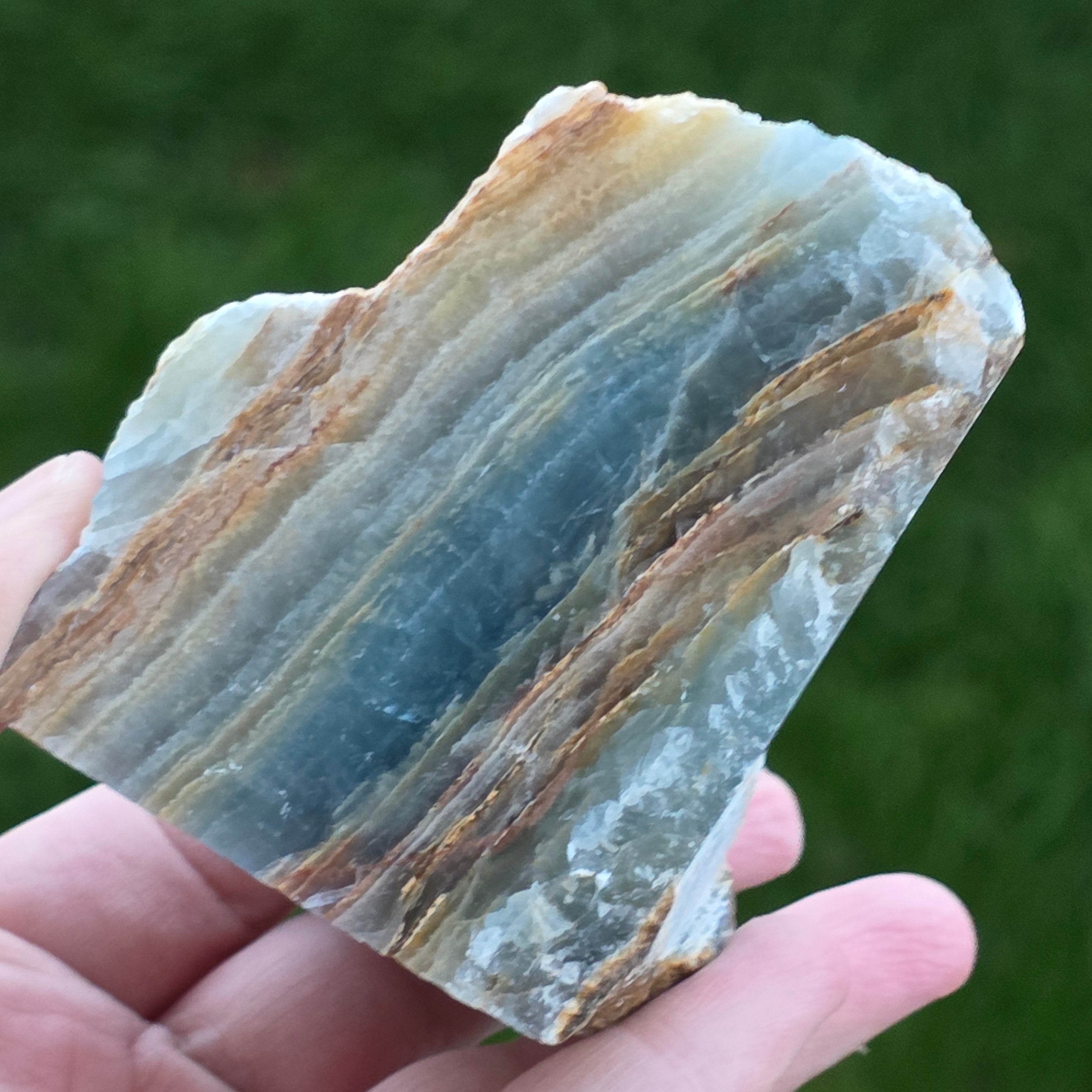 Rezensionen- Onix albastru piatra bruta polisata pe o față | Model 1