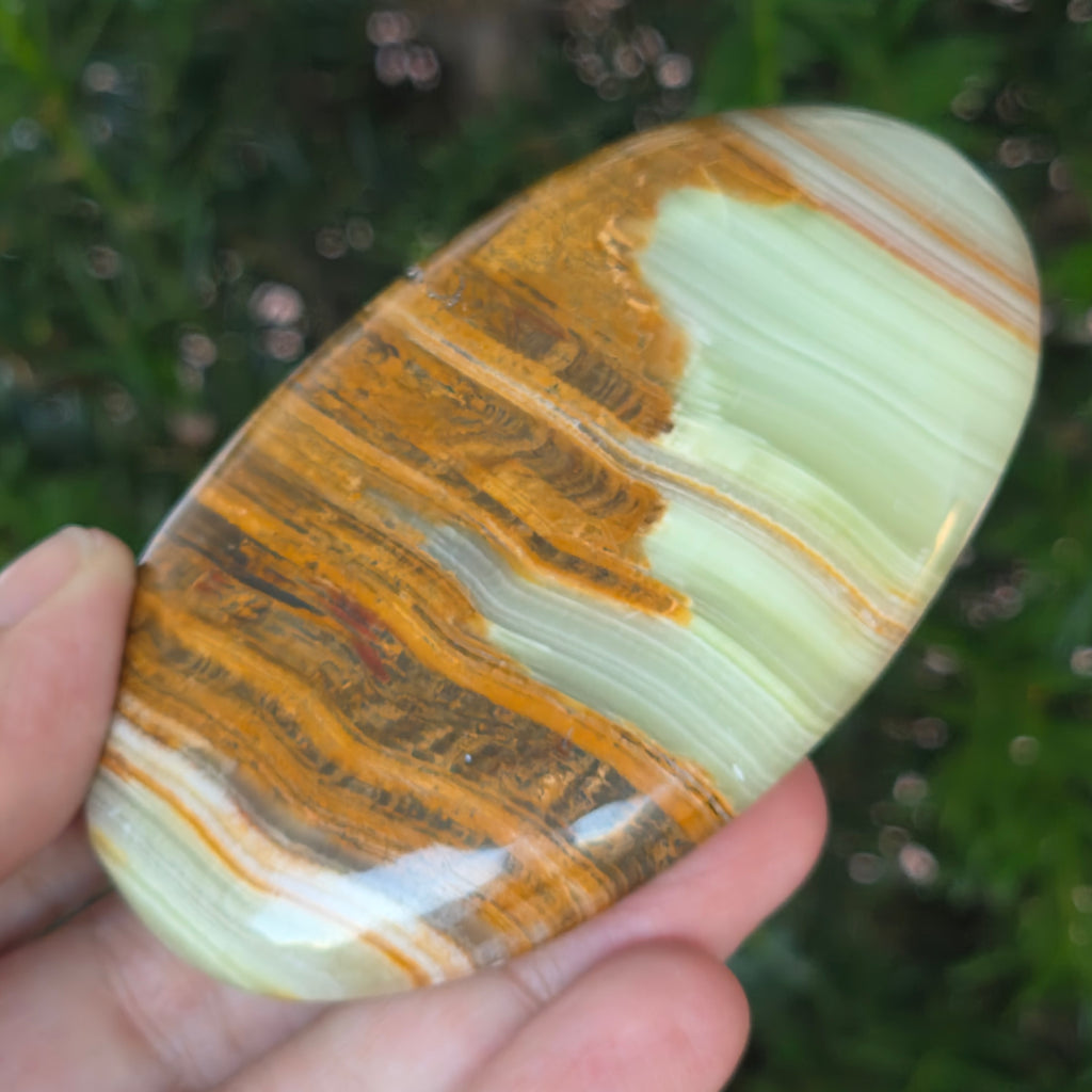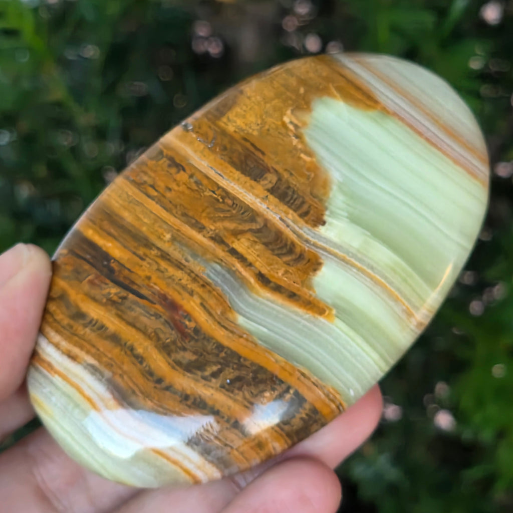 Grüner Onyx Palmstein Modell P8, Größe: 5,5 * 3,8 * 1,4 cm
