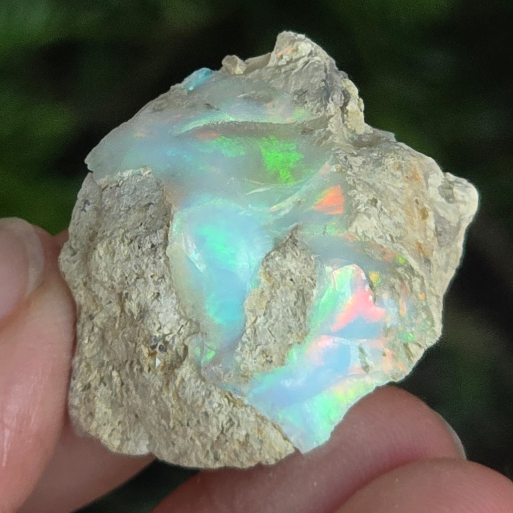 Când este privit în lumină, fiecare reflex devine un dans de culori — roșu aprins, verde electric, auriu topit — o manifestare naturală a fenomenului optic numit joc de culoare, specific doar celor mai valoroase opale.