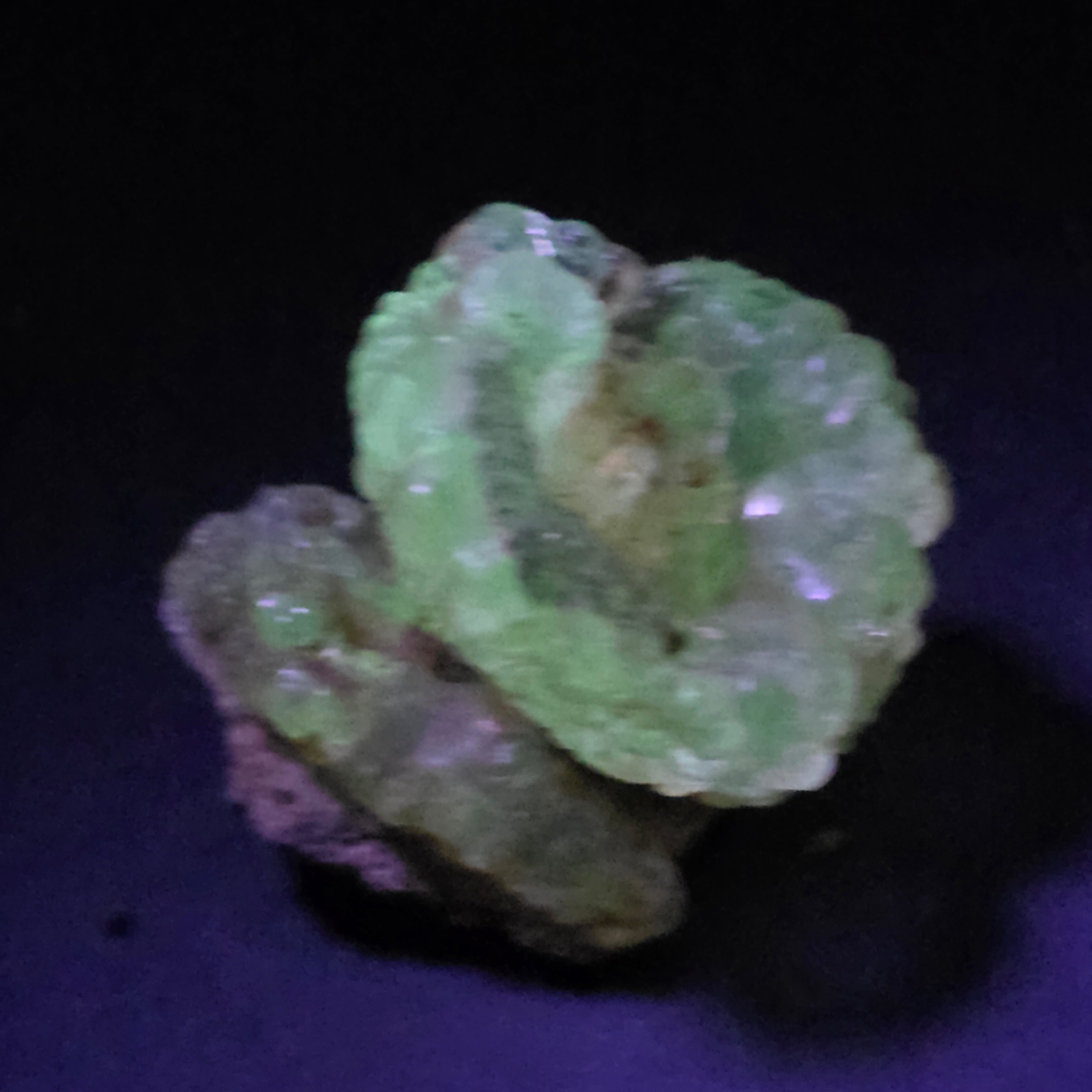 Acest opal hialit din Mexic este un specimen mineral rar și spectaculos, cunoscut pentru transparența sa sticloasă și pentru fluorescența verde intensă sub lumină UV, una dintre cele mai apreciate caracteristici ale acestui tip de opal. Piesele de hyalite provenite din Mexic sunt considerate de referință la nivel internațional.