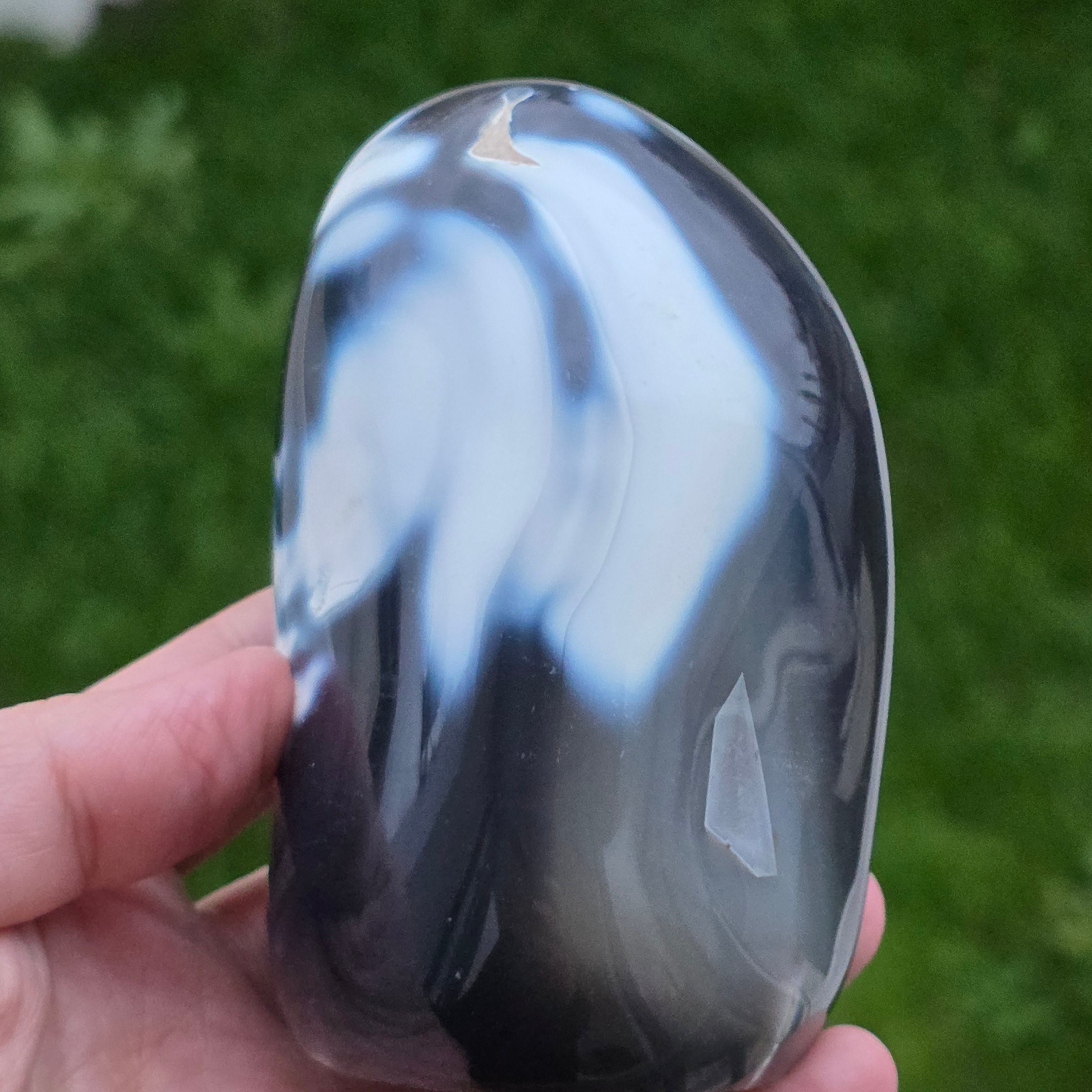 Orca-Achat kann in der Meditation, als Schmuckstück oder zur natürlichen Aufwertung des Raumes verwendet werden, in dem er platziert wird.