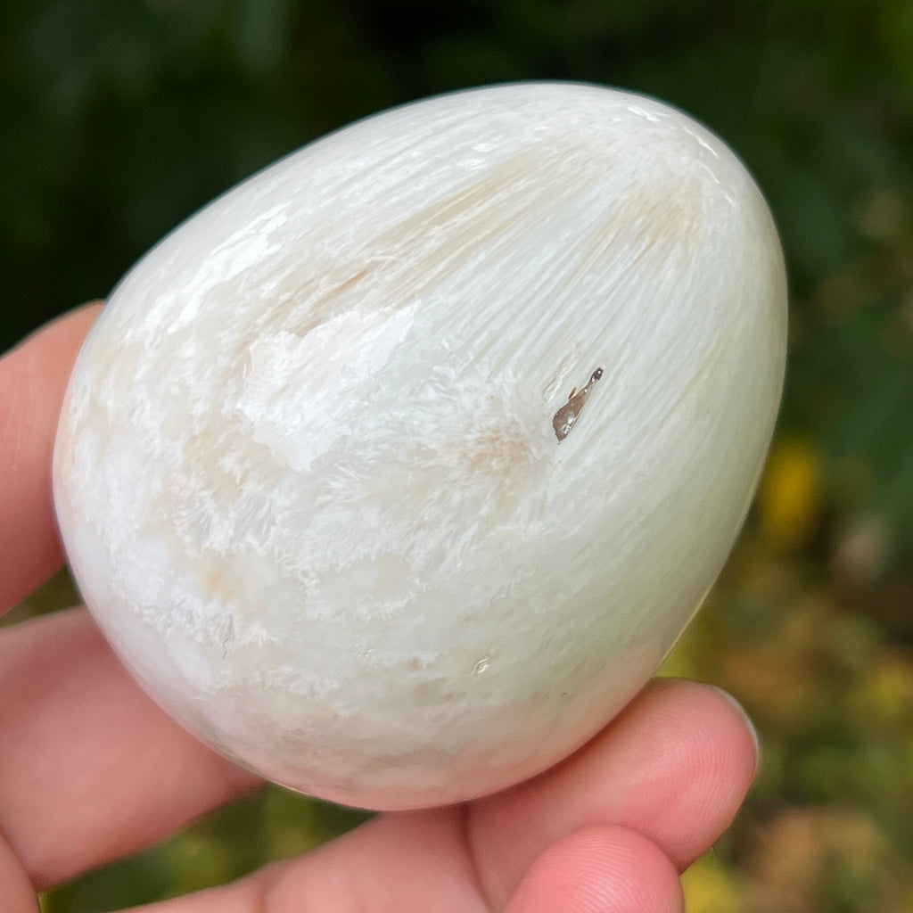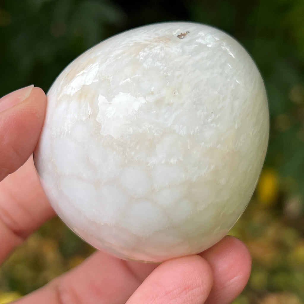 Scolecitul este o piatră delicată și luminoasă, aparținând familiei zeoliților, recunoscută pentru structura sa fină, fibros-radială și strălucirea mătăsoasă. De obicei albă sau crem, uneori cu nuanțe subtile de roz sau bej, această piatră emană o puritate aproape eterică, amintind de calmul lăuntric și de tăcerea din care se naște pacea.