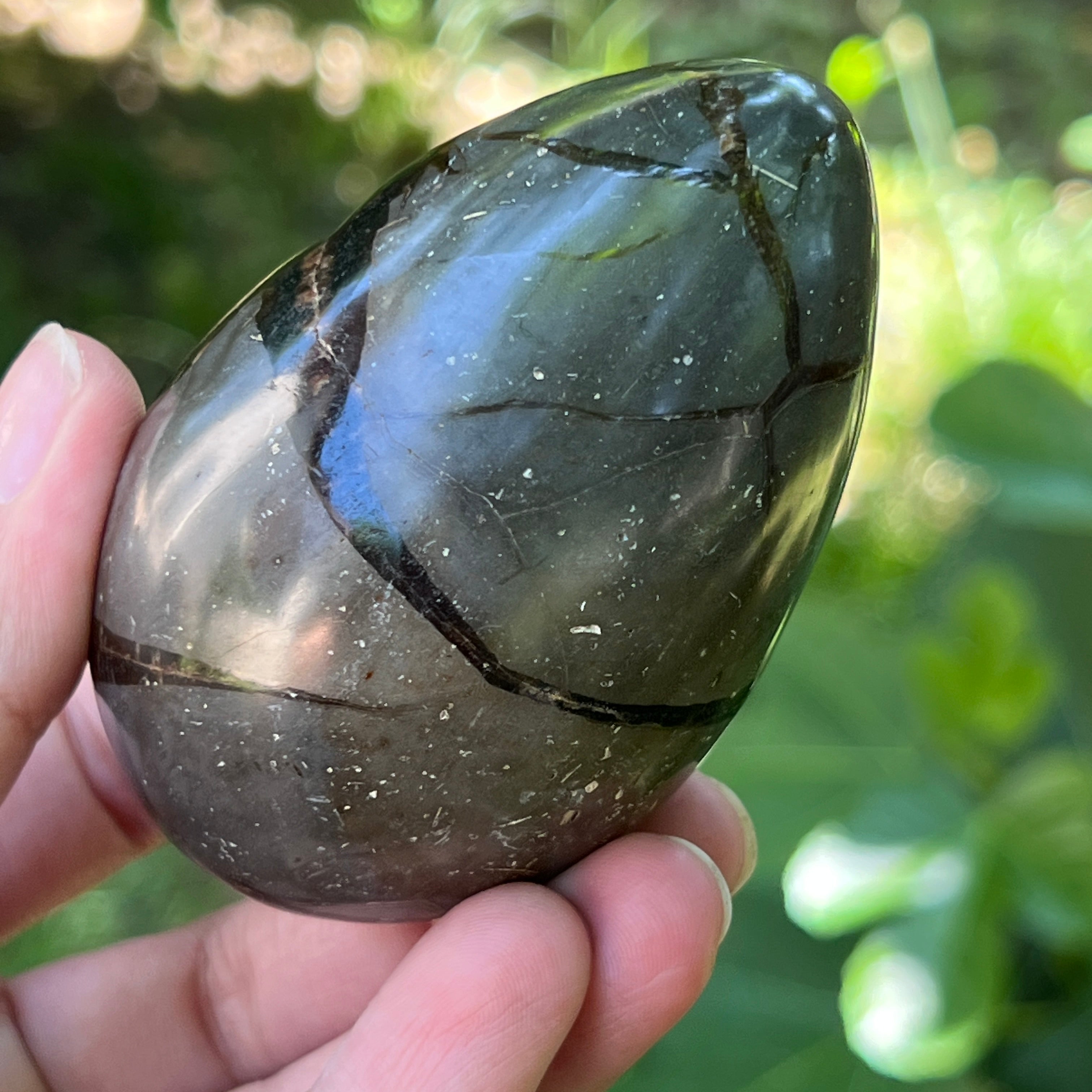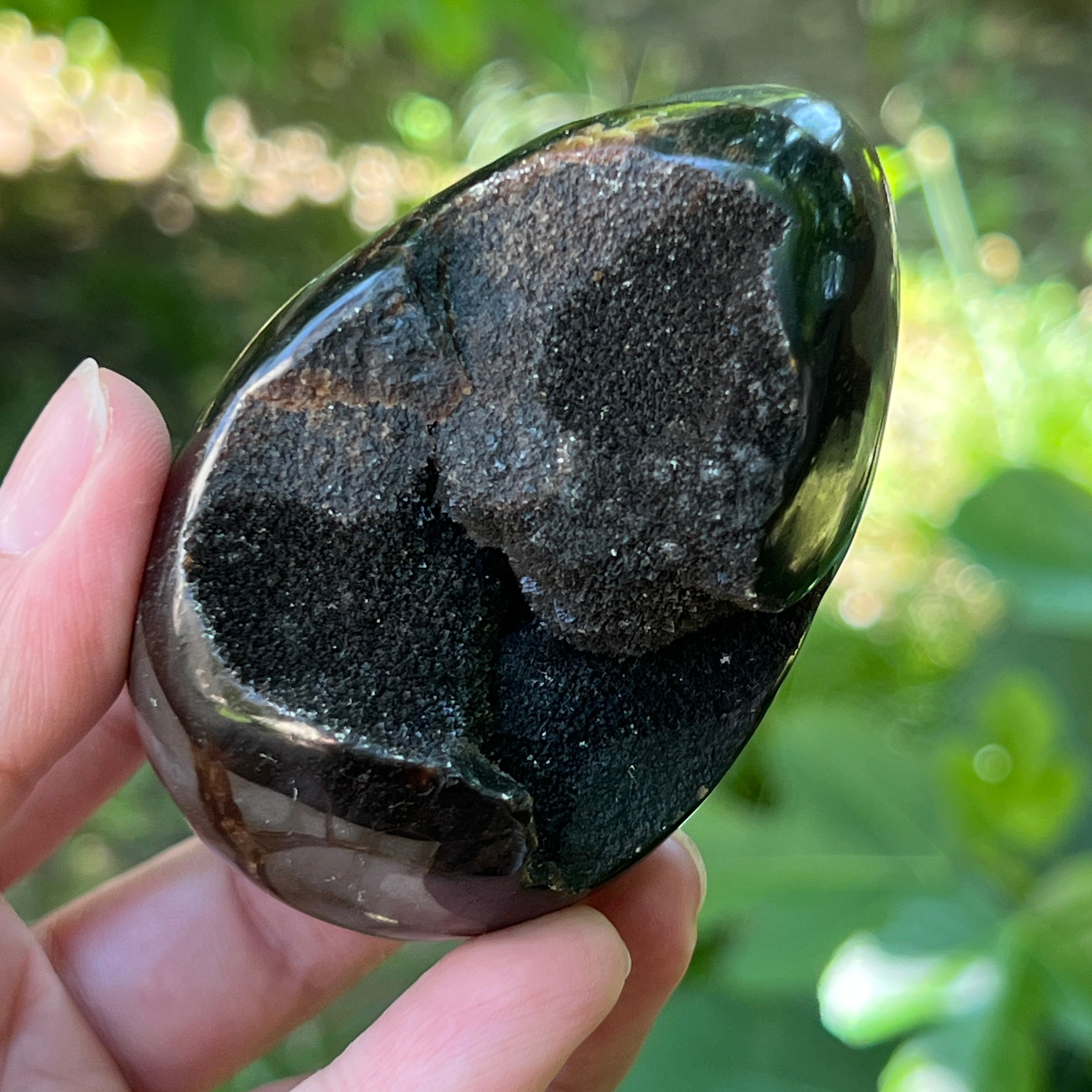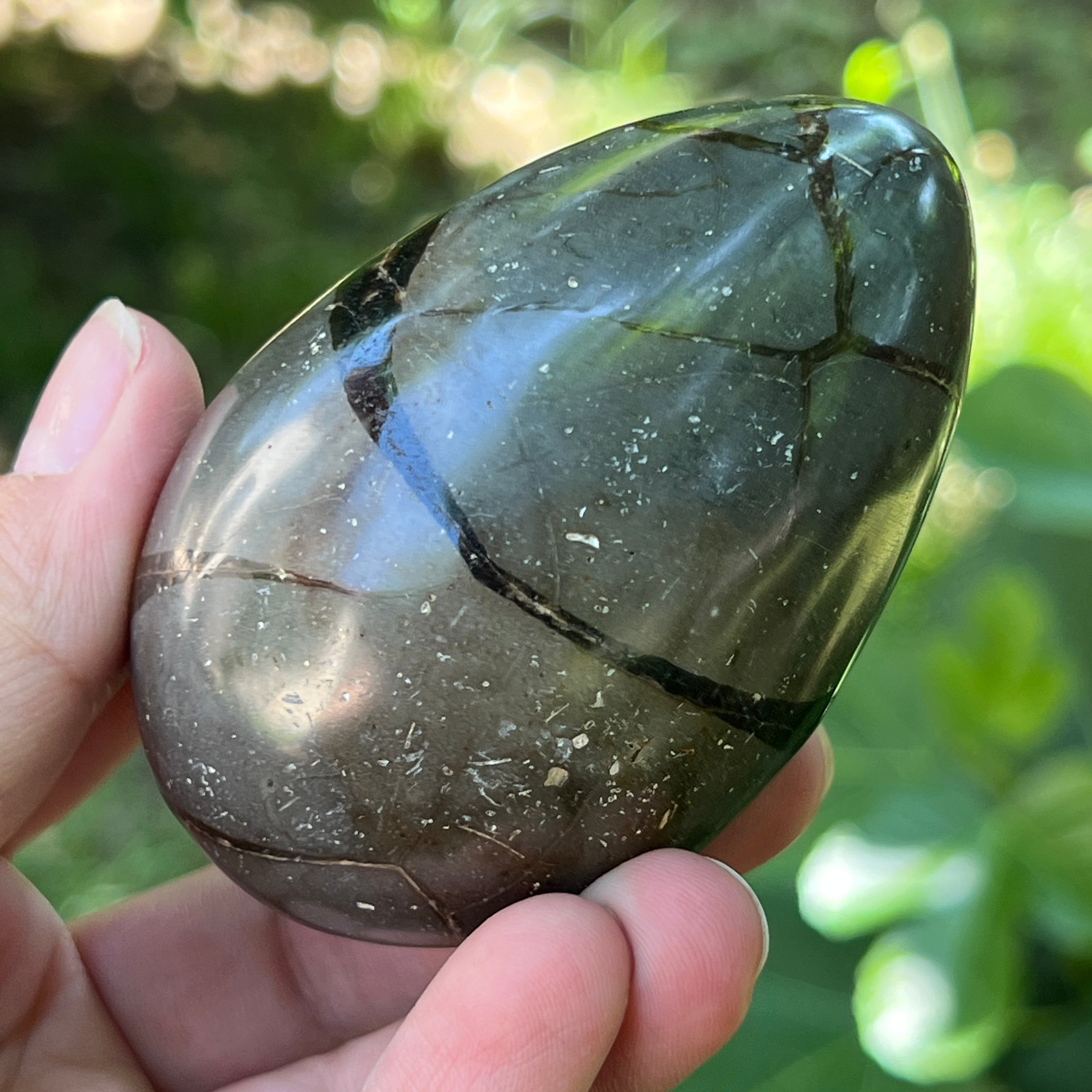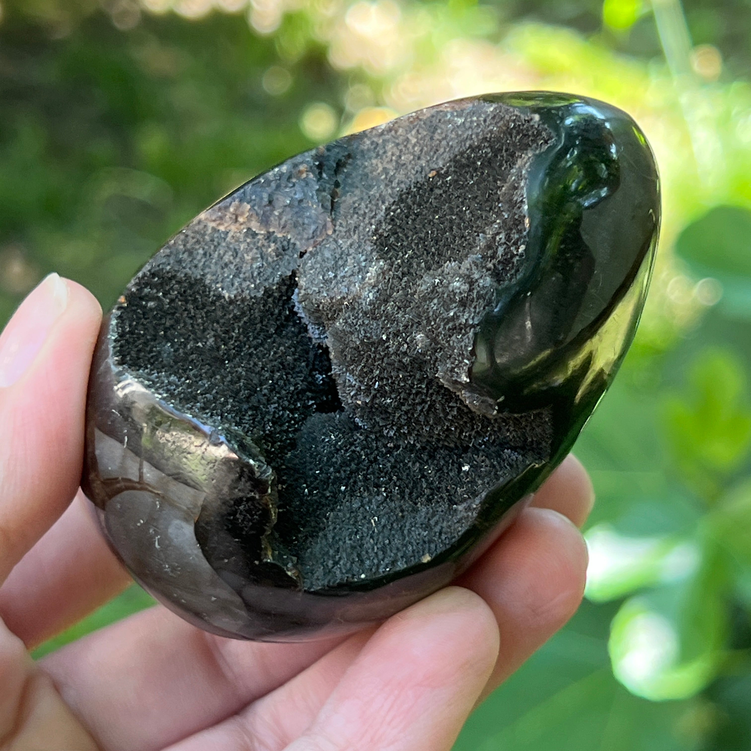 Septaria besteht aus Calcit, Limonit, Gips und Baritin, Mineralien, die in diesem Stein ein einzigartiges Spiel bilden und ihm einen besonderen Look verleihen.