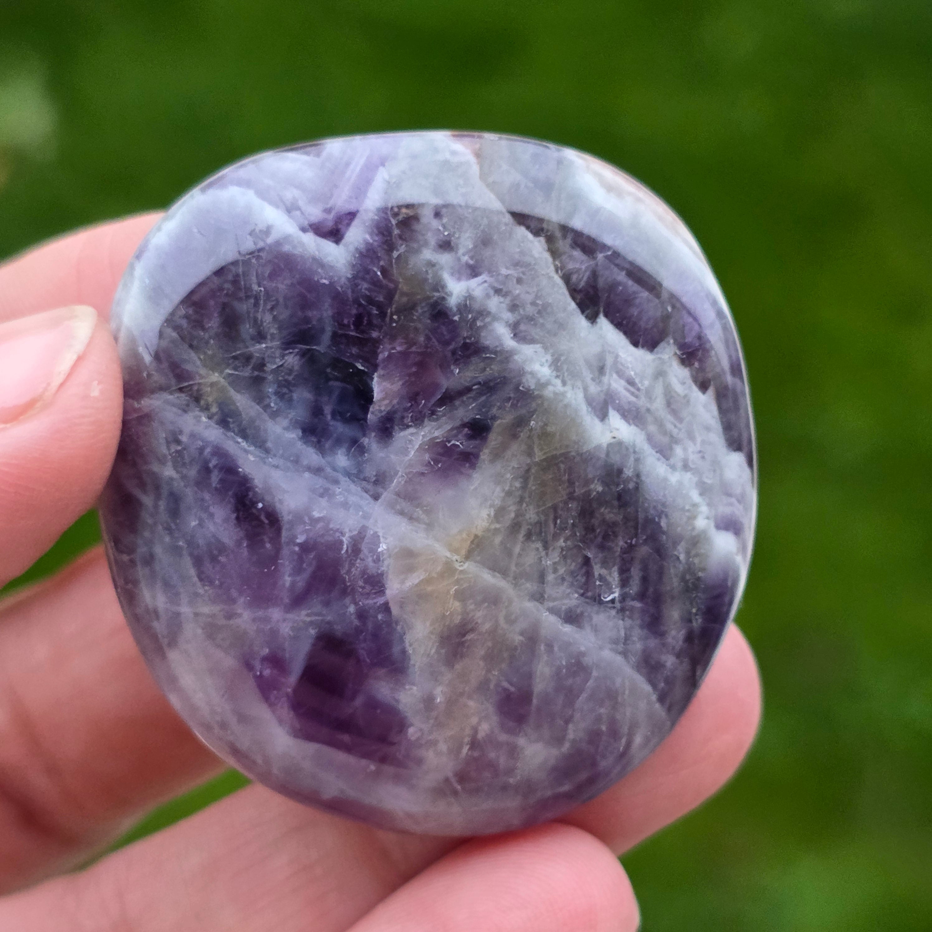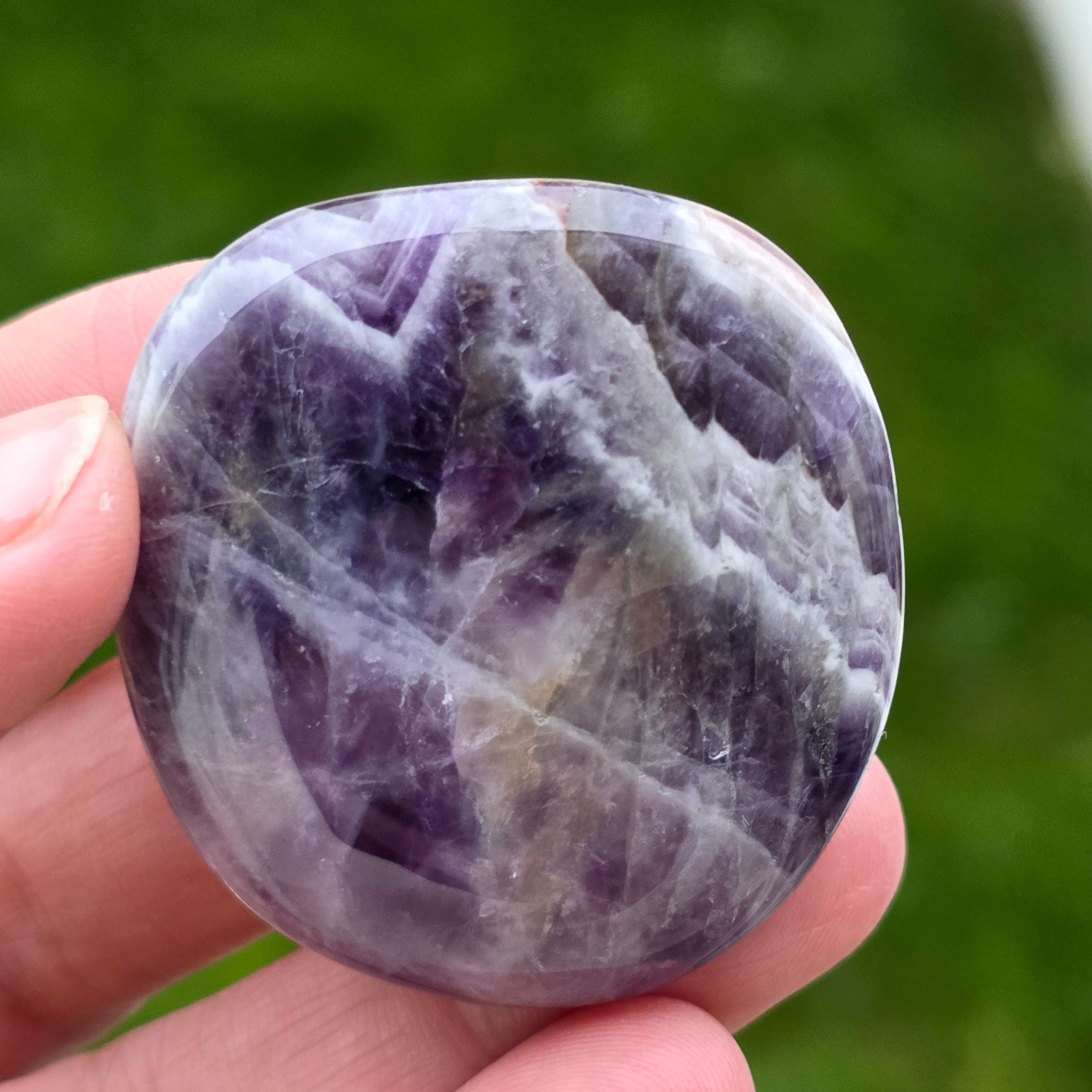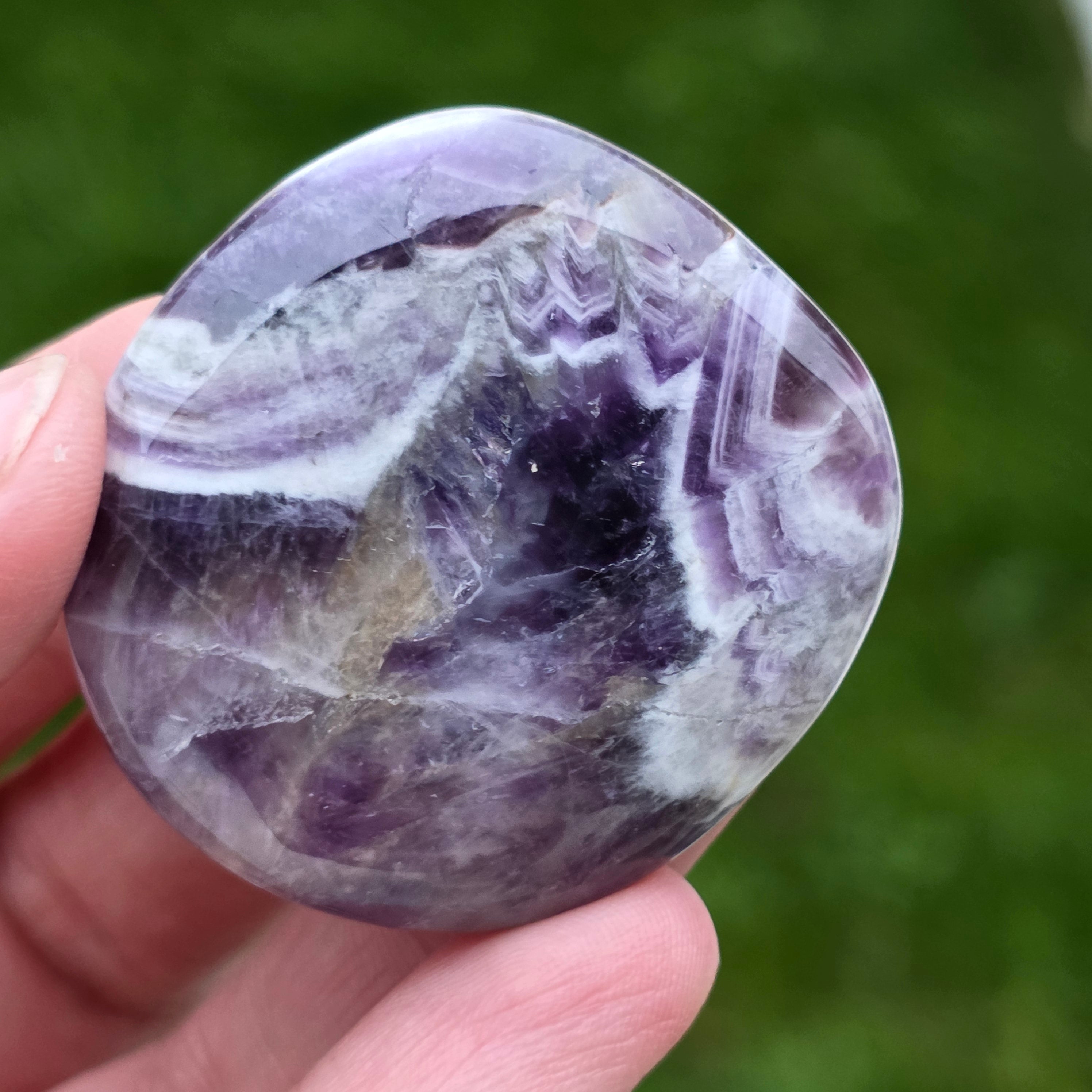 Chevron-Amethyst ist bekannt für seine Assoziationen mit dem Kronenchakra und dem dritten Augenchakra, wodurch die Intuition und die Fähigkeit, Entscheidungen zu treffen, gesteigert werden.