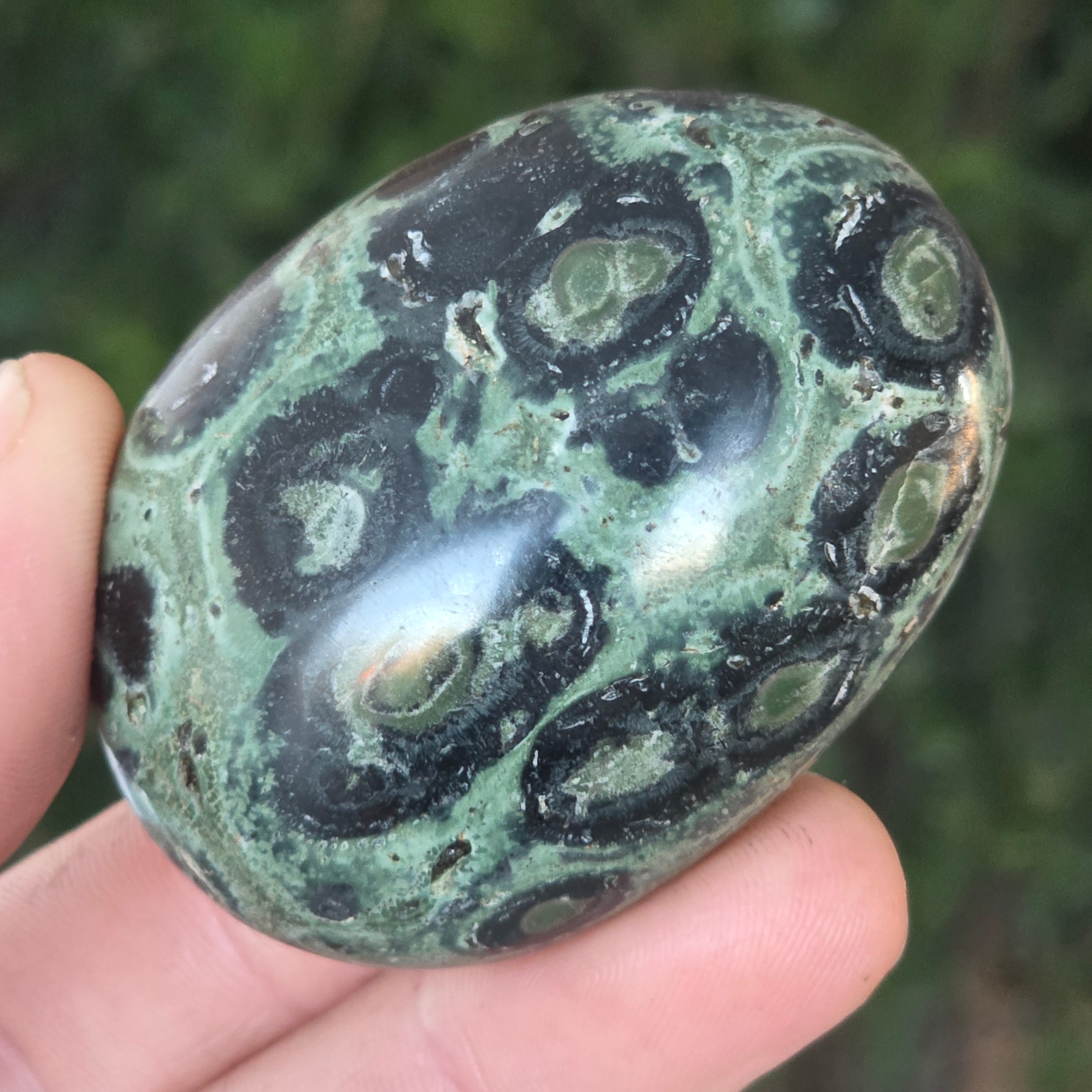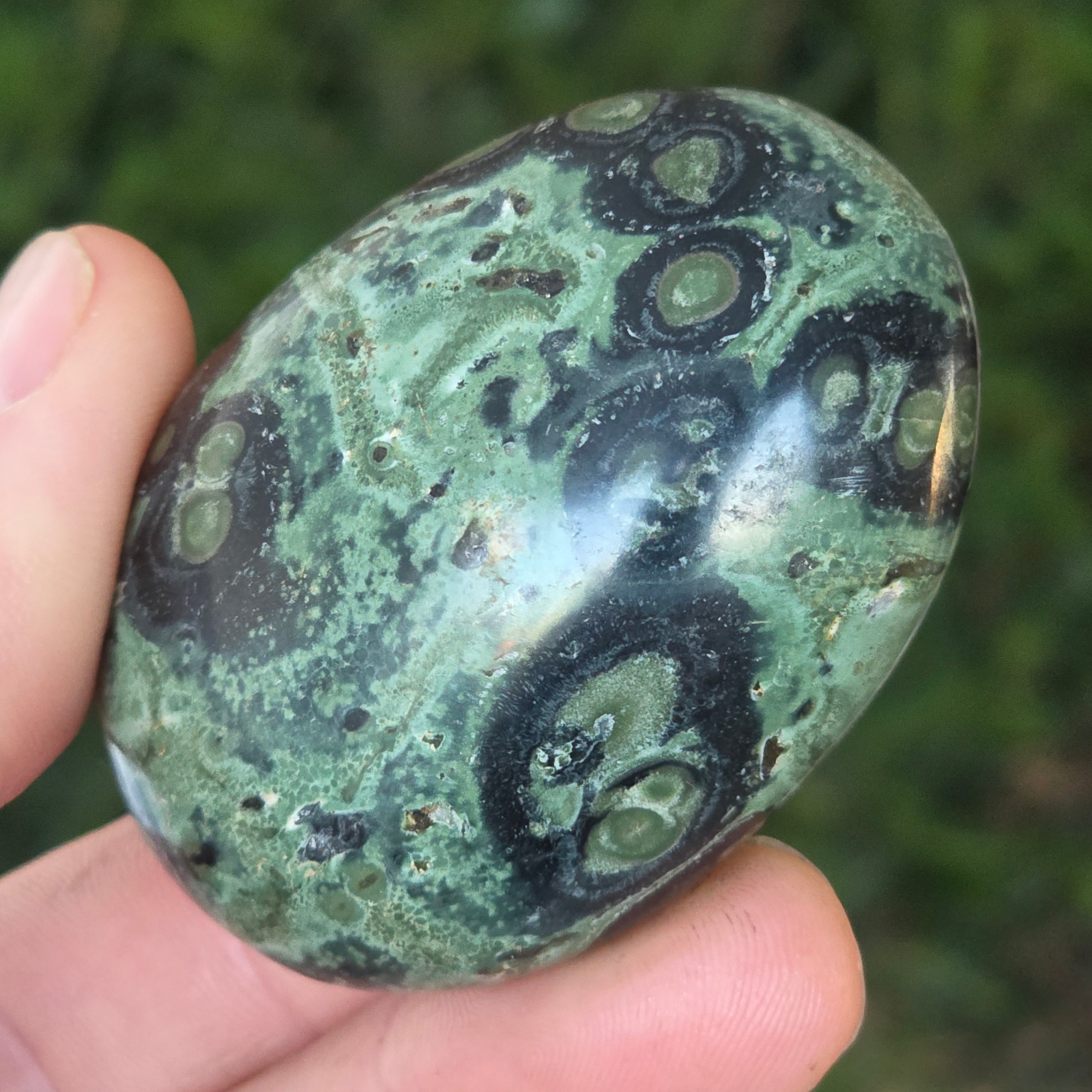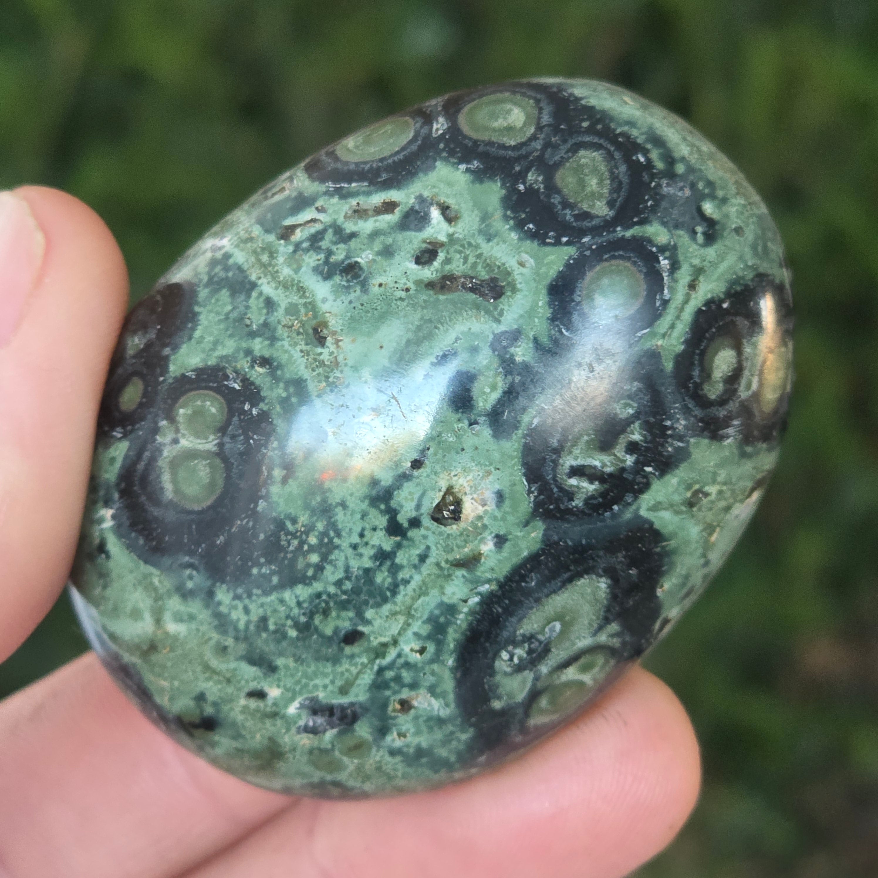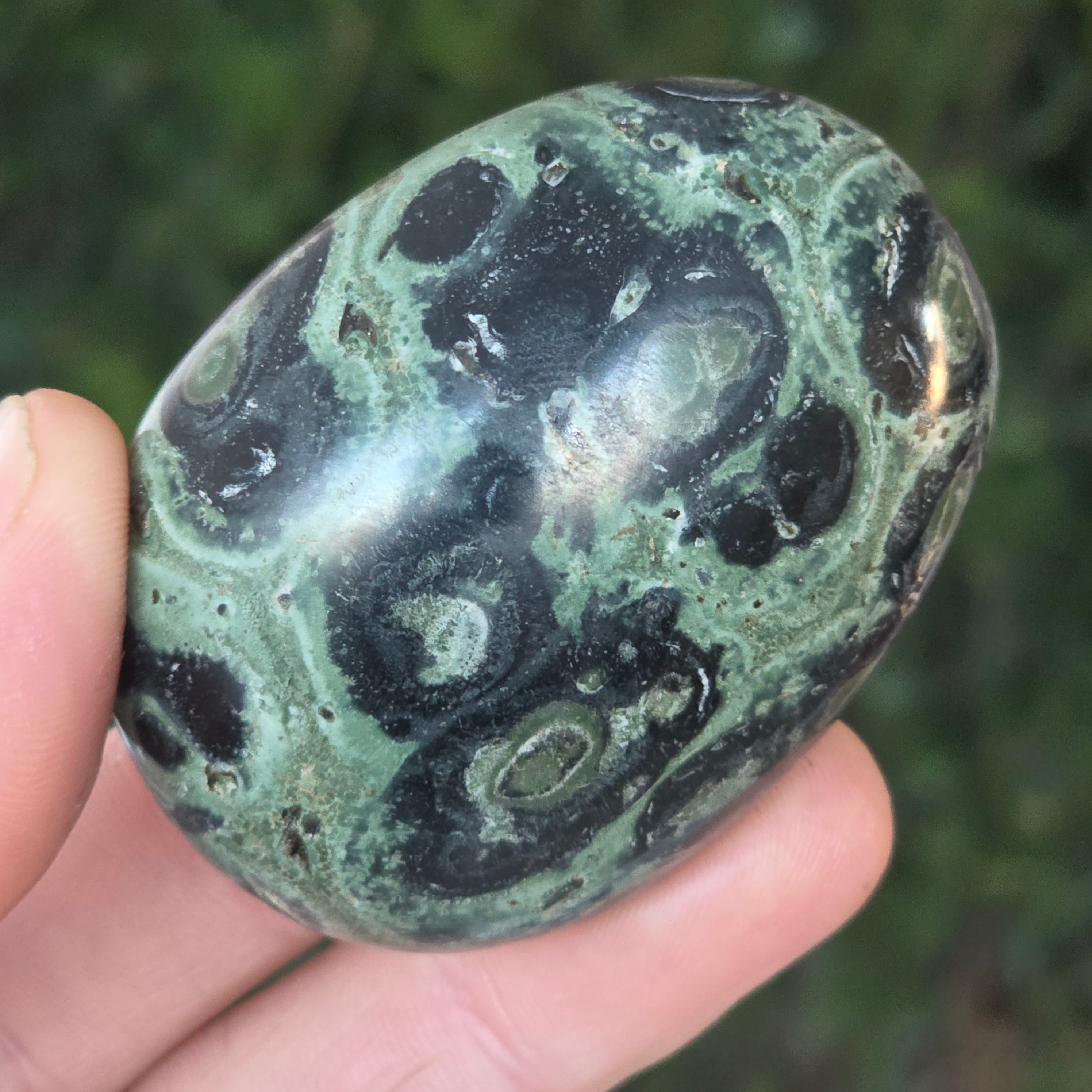 Kambaba Jaspis, auch bekannt als Jaspis Kambala, ist eine Jaspissorte vulkanischen Ursprungs. Es besteht aus einer Kombination aus grünen und schwarzen Kristallen, die ein schönes und unverwechselbares Muster erzeugen. Er ist nach der Kambaba-Region auf Madagaskar benannt, wo er häufig vorkommt.